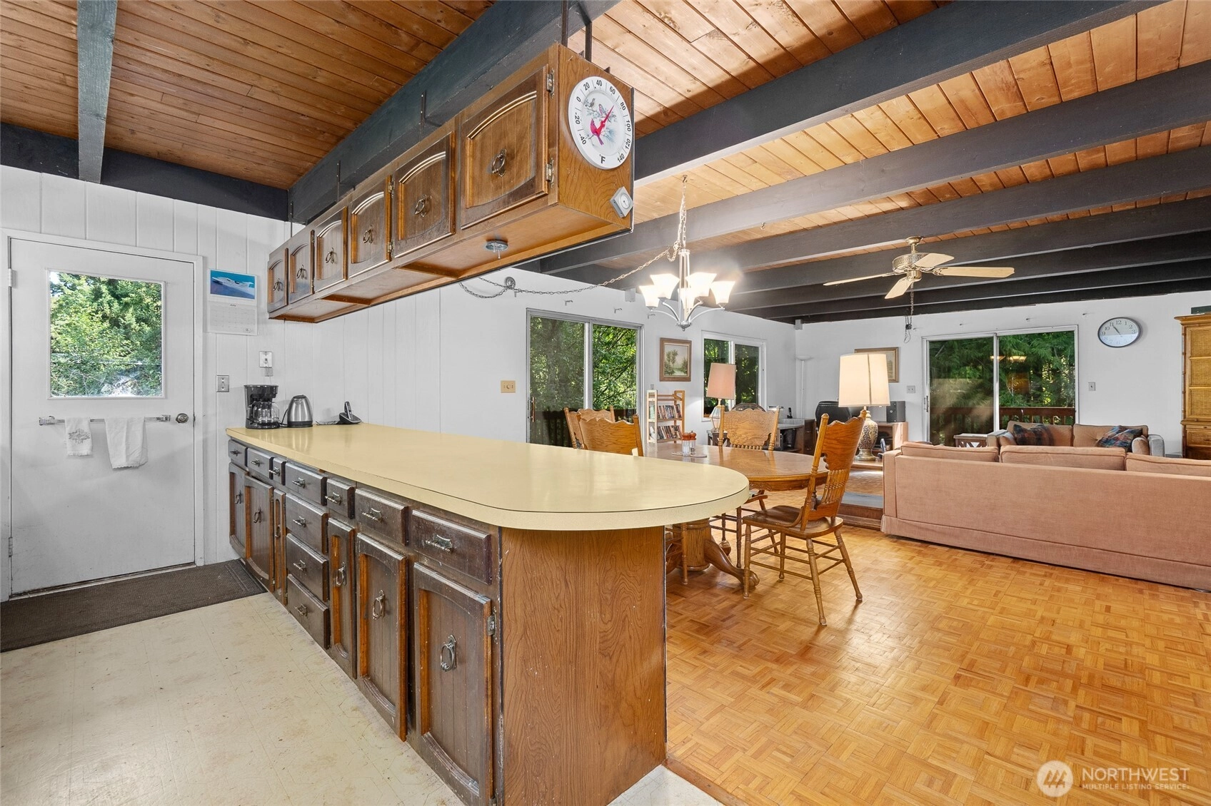 Escape to your own slice of PNW heaven with this peaceful Deschutes River cabin! This 2 bed, 2 bath home sits on a full acre with a brand-new deck where you can fish right into the river. Inside, the open kitchen flows into a stunning living room with planked ceilings, exposed beams, and a cozy wood-burning fireplace—full of rustic charm. The home features a newer roof and is wired for a generator, with a new unit in the well house. A 704 sqft attached garage/shop adds space for hobbies, gear, or storage. Riverfront living doesn’t get better!