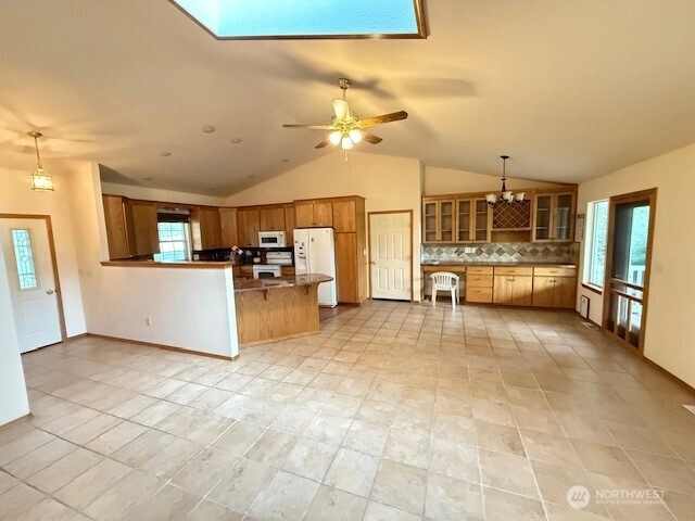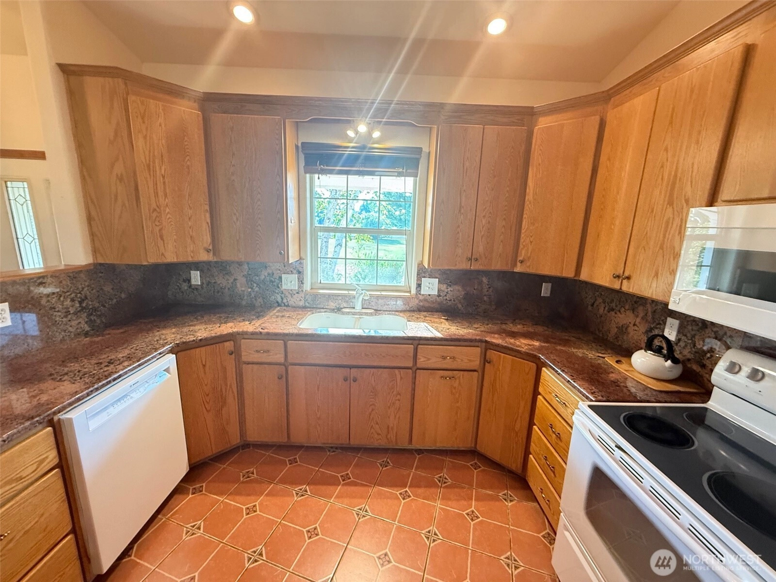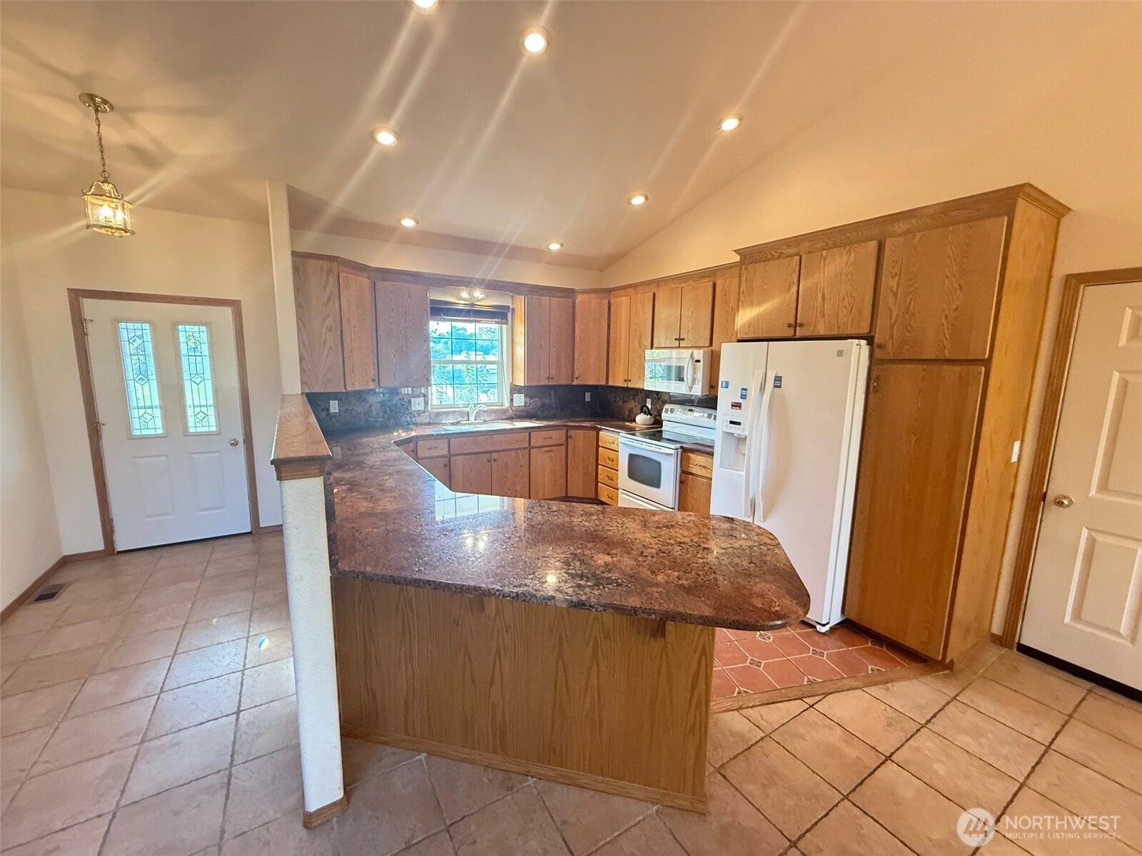 PRICE REDUCED! METICULOUS THROUGHOUT describes this 3 bedroom, 2 full bath Home on 1 acre in Primrose Estates near Omak. Quality construction - Living room w/vaulted ceilings & skylight, dining room with unique copper-topped desk/buffet, kitchen with granite counters & all appliances. Tiled entry, laminate & tile flooring throughout. Primary bed/bath suite with soaking tub, double sinks, separate shower, huge walk-in closet. Covered composite back deck, vinyl-fenced yard front & back, sprinkler system, OID irrigation. Attached 2-car garage PLUS workshop/storage building, insulated with power. Park-like landscaping, paved circular drive. $419,000 H-3709/MLS2428349