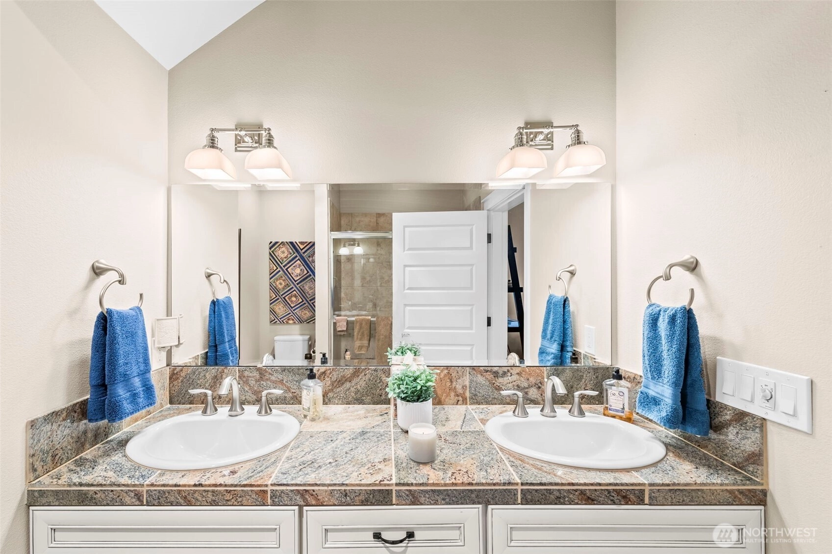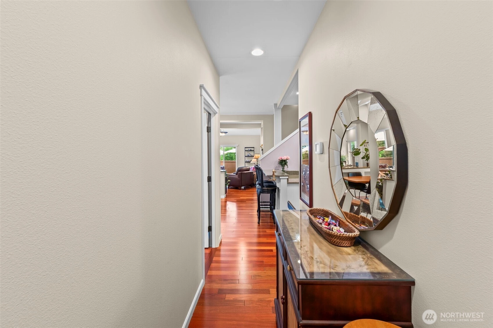 This 5-bedroom, 2.75-bath townhome offers an ideal layout for multigenerational living! 1st floor boasts an open concept design, Primary BR with en suite, Brazilian cherry hardwoods throughout, modern kitchen w/ granite counters, stainless steel appliances, two additional BRs, and a gas fireplace. Upstairs, a 2nd primary suite creates a private retreat, complemented by a 5th BR configured as a theatre room; California closets in all bedrooms. Step outside to a peaceful, low-maintenance backyard designed for relaxation. HOA covers exterior maintenance—including roof, siding, paint, and front landscaping. There's more time to enjoy your home and the convenience of Tumwater & Olympia amenities, schools, shopping, and quick freeway access.