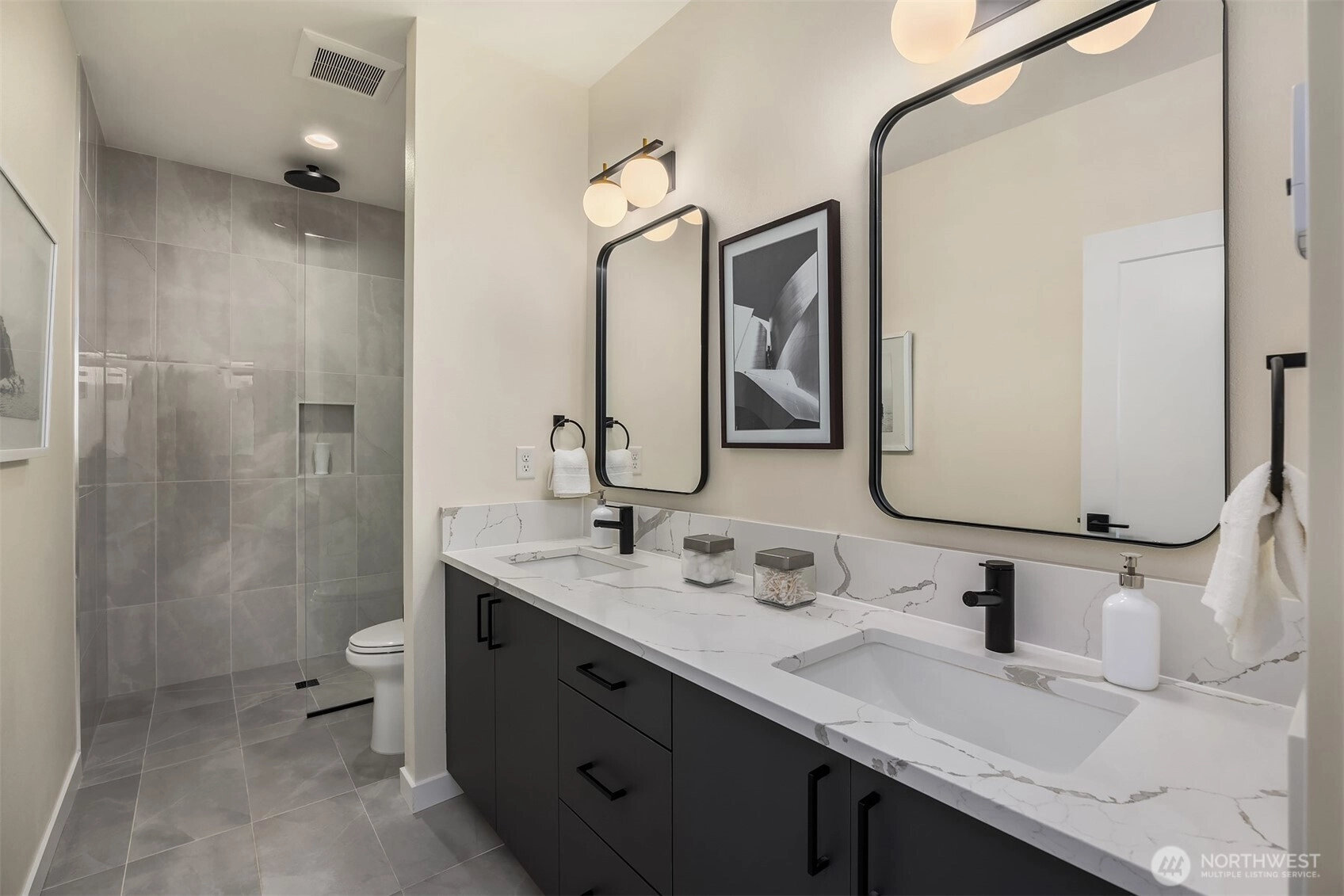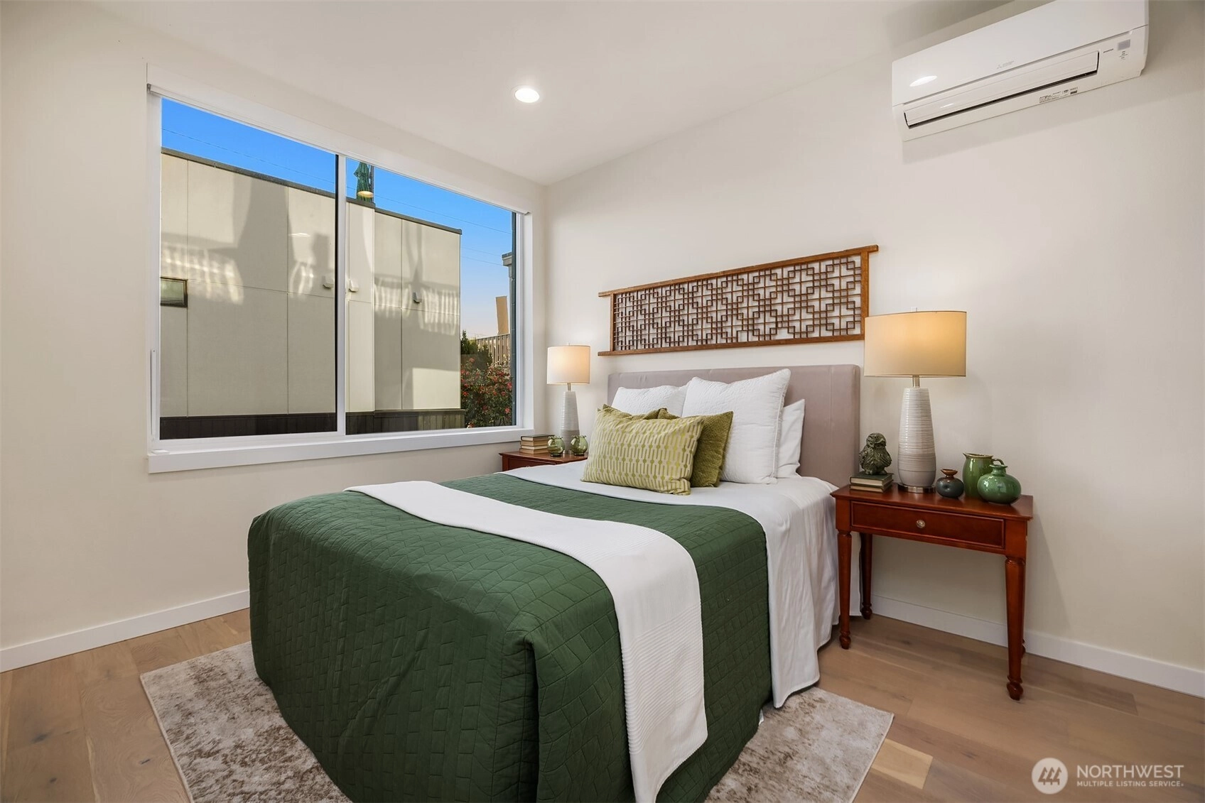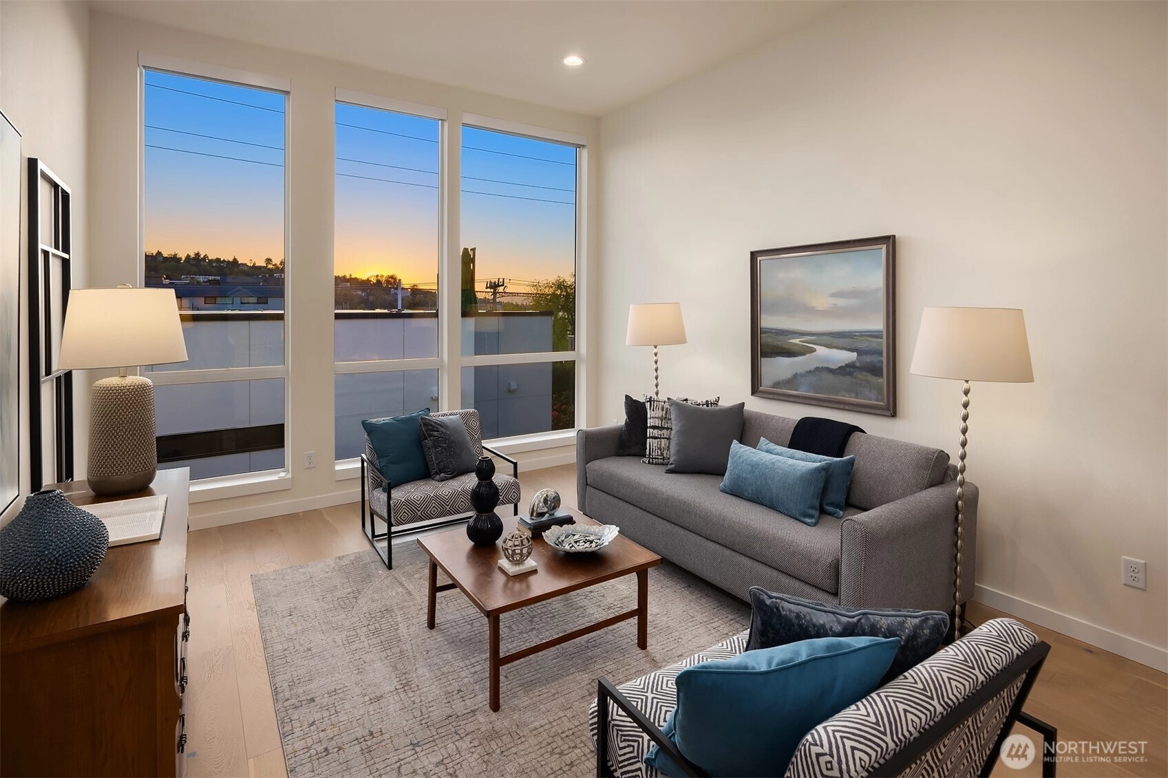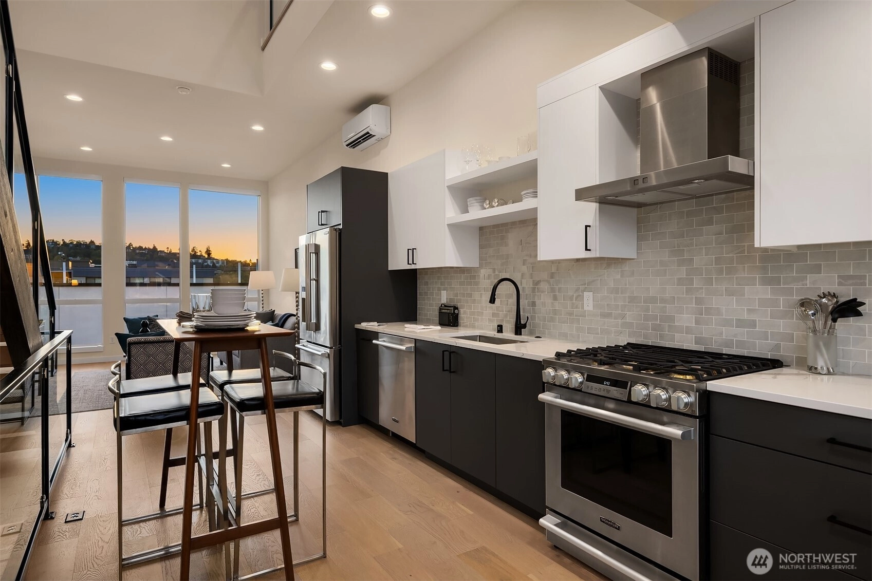Modern Eastlake home just steps from Lake Union-- hop off your kayak and be home in seconds! Airy, light-filled home features striking design details including a floating staircase, glass railings, and double-height lofted ceilings. Enter into your lower level with two bedrooms, a full bathroom, and patio space. The second floor is your private retreat—complete with a spacious primary suite, ample closet space, laundry, and a spa-like bathroom. One deeded parking spot. On the top floor, you'll find an open-concept living space perfect for entertaining, with gas cooking, expansive windows framing views of Lake Union, and seamless flow to your rooftop deck. From Gas Works, Lake Union, to the city skyline, —the lifestyle is pure Seattle!