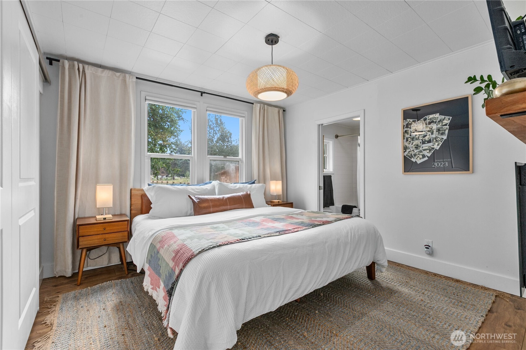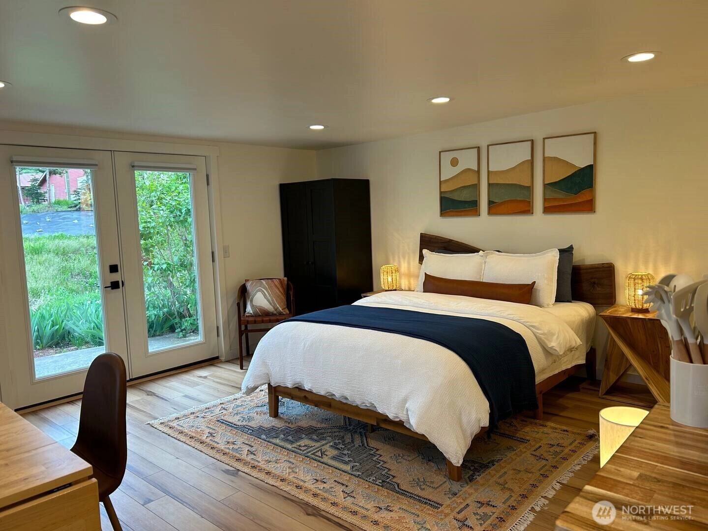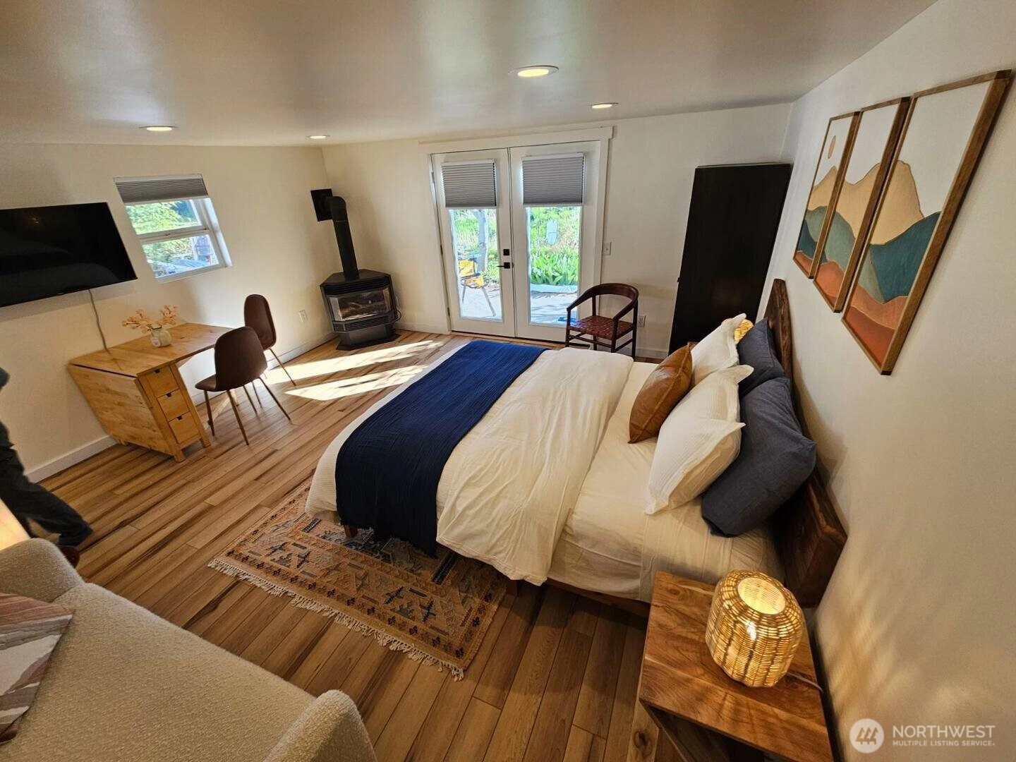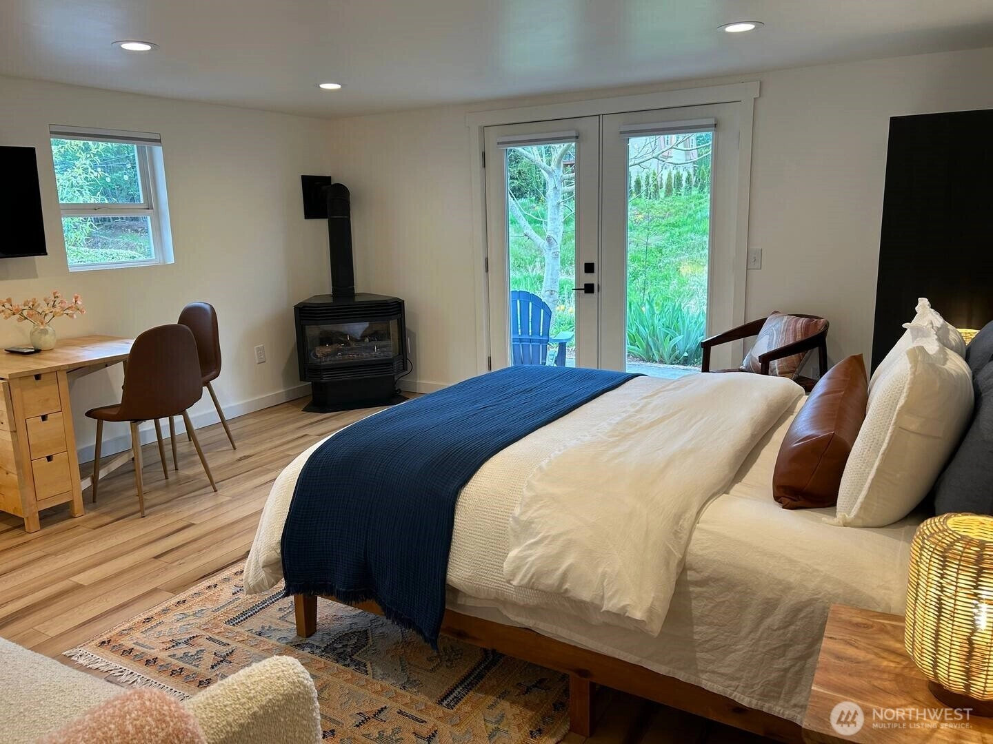 This beautifully updated home blends historic charm with modern comfort & thoughtful upgrades throughout. Tall ceilings & large windows fill the open living/dining area with light, while a custom electric fireplace, wainscoting & built-ins add character. The primary bedroom with ensuite, updated second bedroom, and bright kitchen capture sweeping countryside views. With proven rental income, the remodeled ADU has a kitchenette, 3/4 bath, and propane fireplace. On 2+ flat acres w/covered porch, patio, mature landscaping, fenced pet areas, goat barn, 3-car garage/shop w/150 sf office & EV charging, plus newer septic, heat pump & water heater, this property is one of a kind!