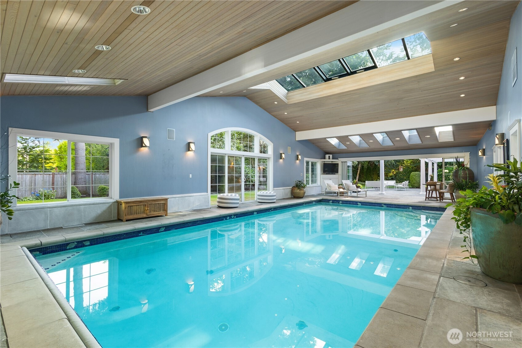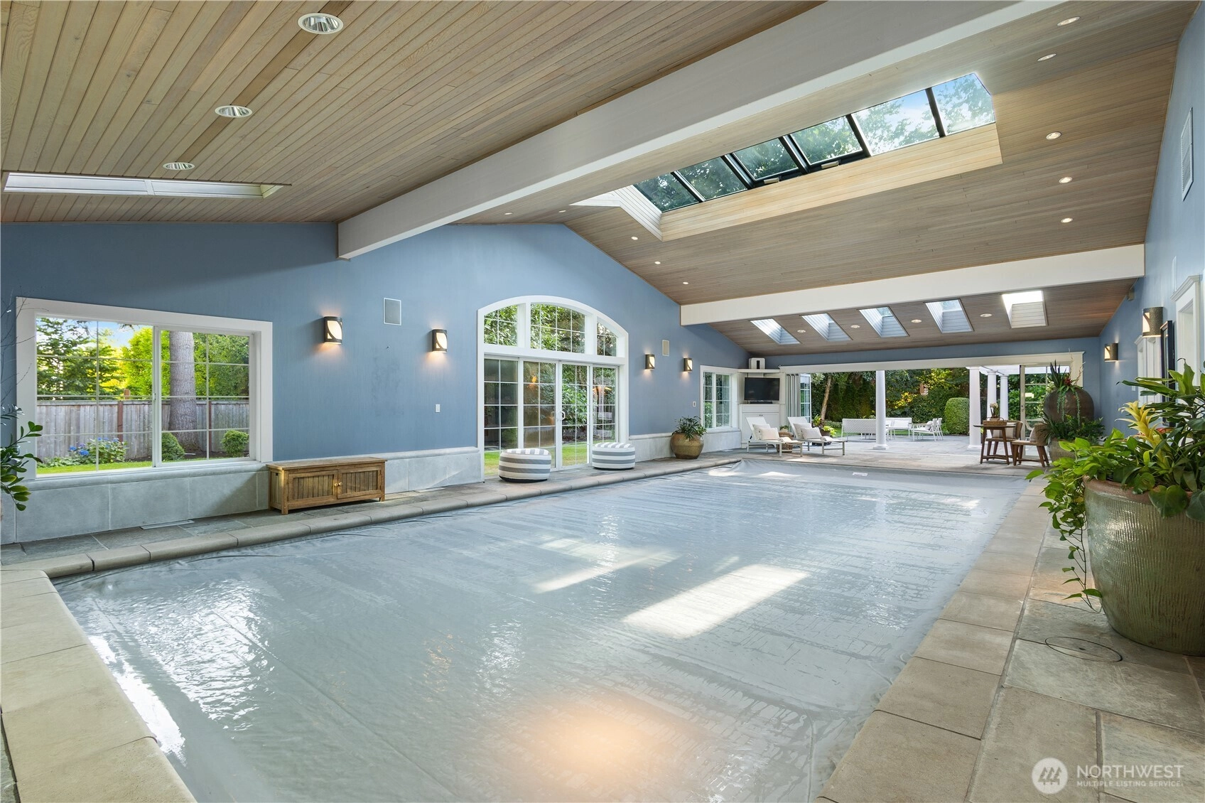 Bath Off Primary Built-In Vacuum Double Pane/Storm Window Dining Room Fireplace French Doors High Tech Cabling Indoor Pool Jetted Tub Security System Skylight(s) Solarium/Atrium Walk-In Closet(s) Walk-In Pantry Wet Bar Wine/Beverage Refrigerator Wired for Generator