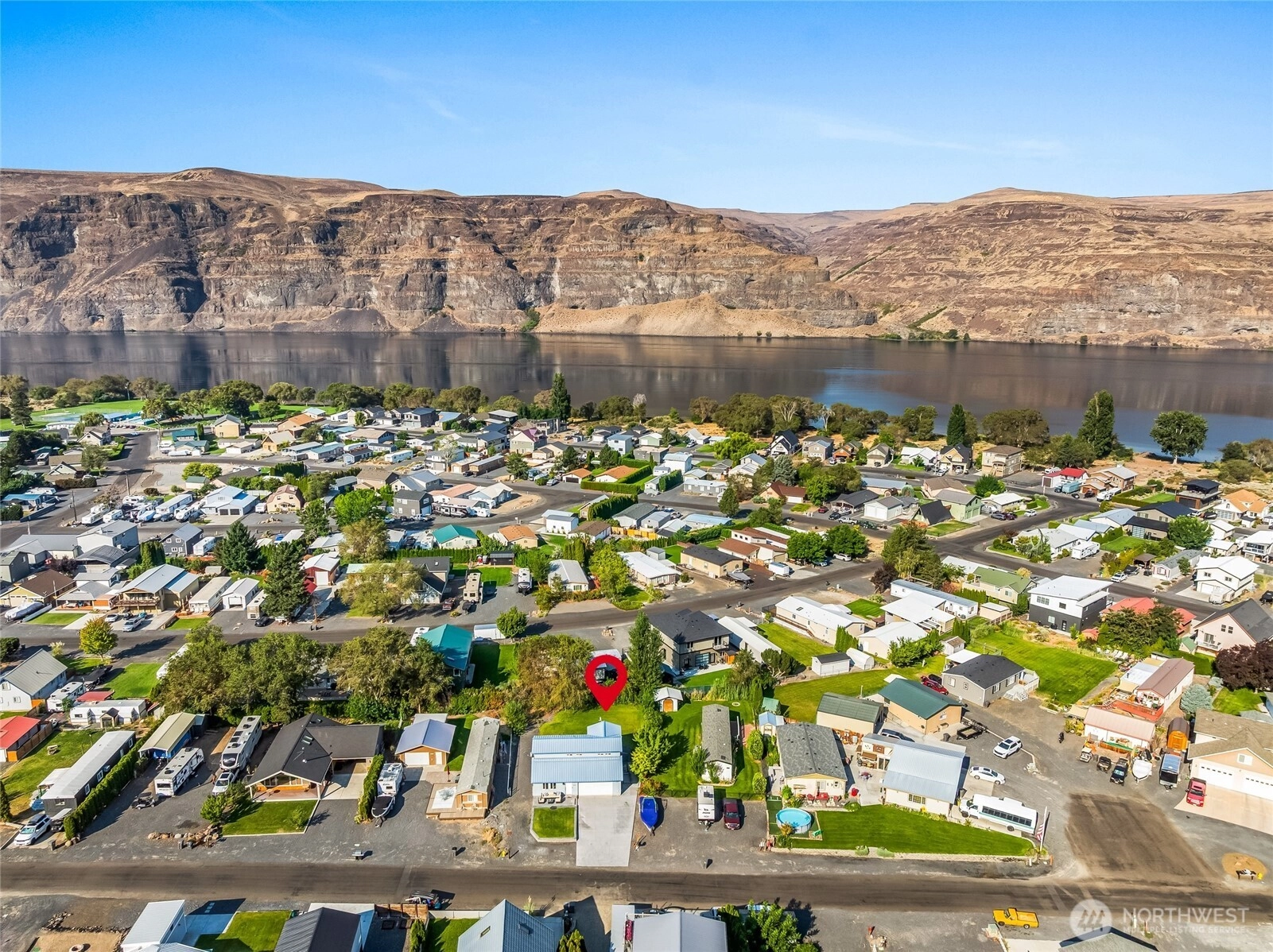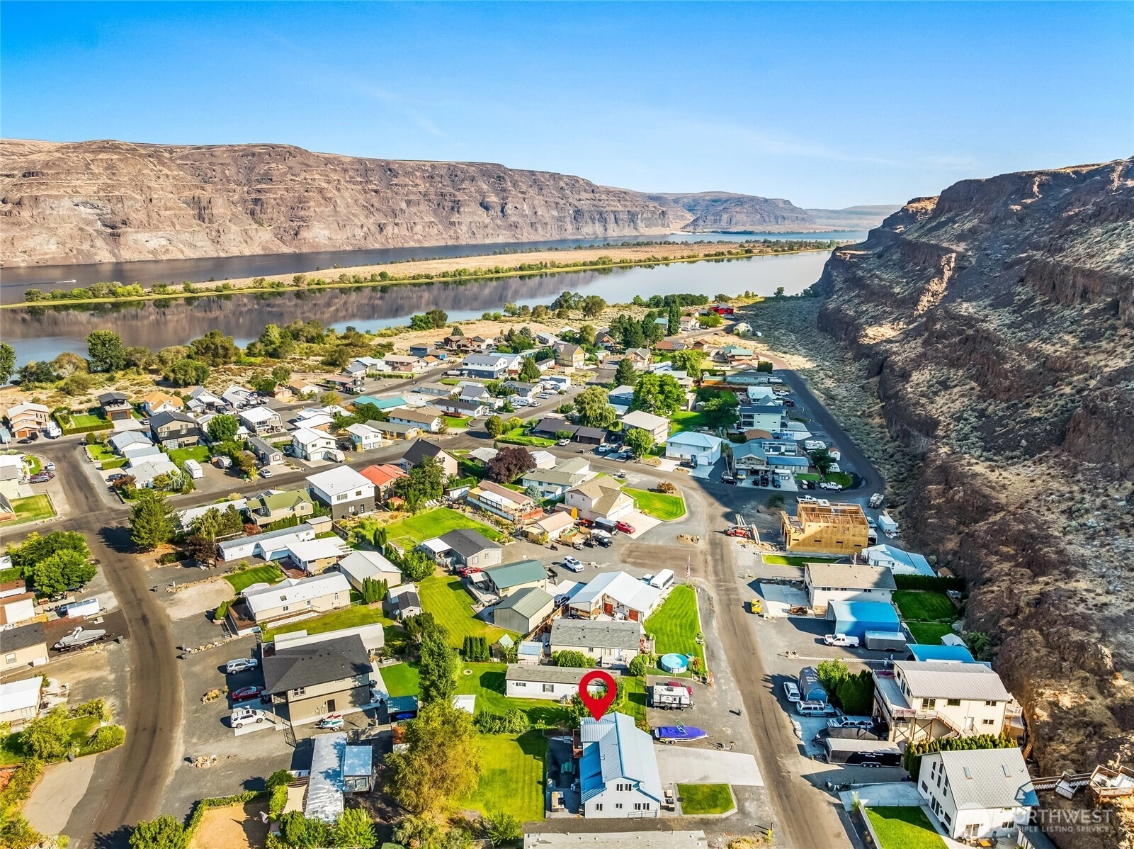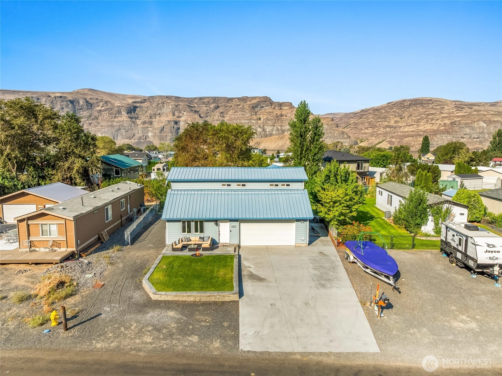 Sunland Estates stick-built home fully furnished and Airbnb-ready! This 2-bedroom, 2-bath retreat offers a bright living room, open kitchen & dining area w/ eating bar. Upstairs features two spacious bedrooms and full bath, w/ potential to add a third for more guests or rental income. Main floor laundry doubles as a bath with shower. Enjoy outdoor living with two patios—one with a built-in firepit—and a fenced backyard ready to personalize. Plenty of room for RVs, boats, and guests, plus a 28x21 oversized garage for storage & toys. Relax with sweeping Basalt Mountain views, just minutes to the community pool, park, store, boat launch & Riverside restaurant. Perfect for a vacation getaway/investment in our vibrant Columbia River community!