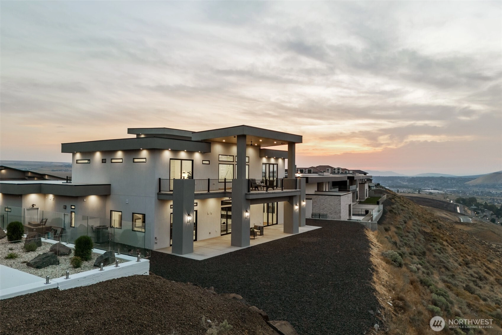 CUSTOM LUXURY New Construction home in Southcliffe community offers 4,046 sqft of refined living space on .54 acres with breathtaking views of the Tri-Cities and Columbia River. This residence features 4 bedrooms and 5.5 baths, highlighted by a soaring 30-foot ceiling in the great room and polished porcelain tile floors throughout. The chef’s kitchen is appointed with custom cabinetry, and ceiling-height tile backsplash. Pre-wired smart home features, surround sound, Wi-Fi switches, electric blinds, exterior surveillance, and an option for an in-law suite The home is also designed with a dedicated pool bathroom and comes with renderings and quotes for a future pool, making it ready for the next owner to complete their outdoor oasis.