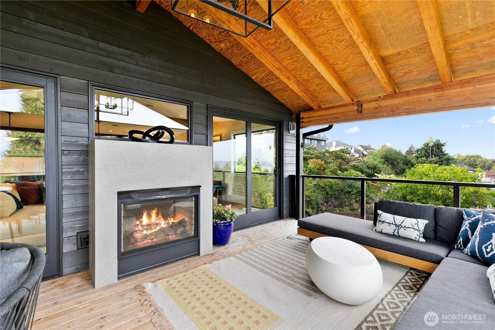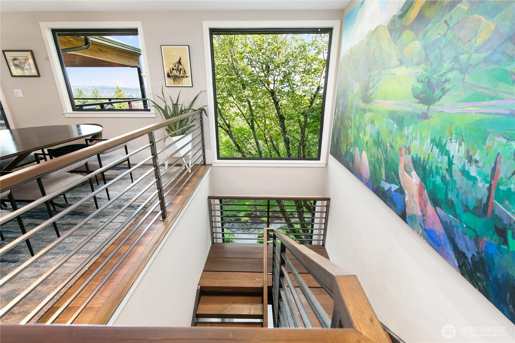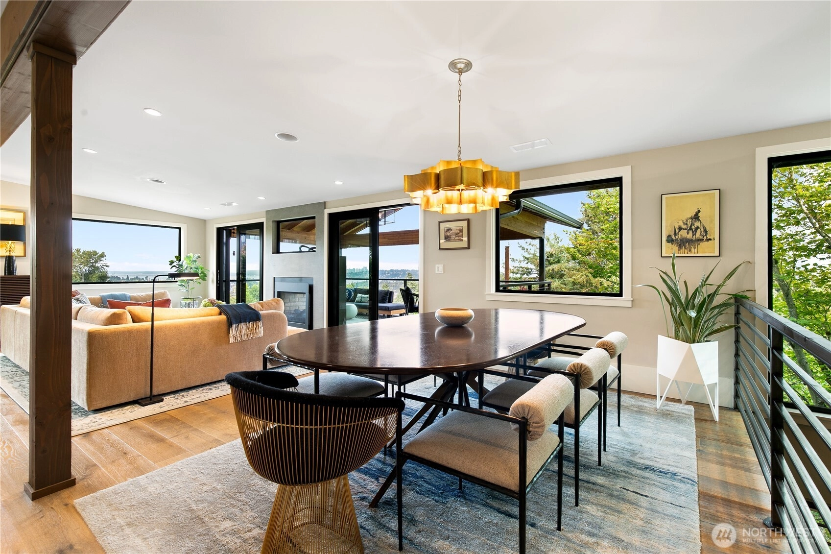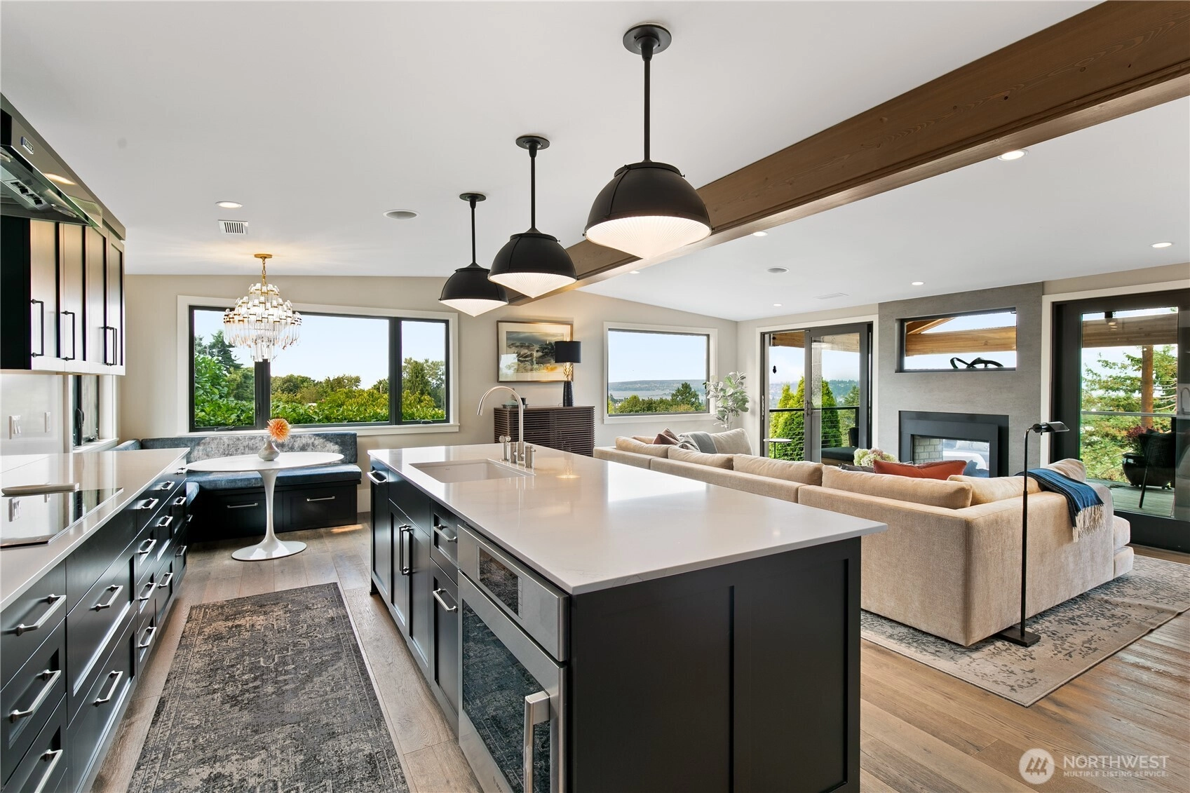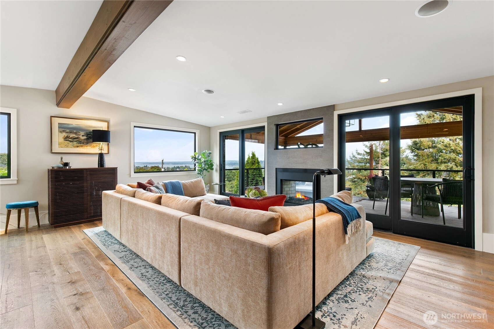 An architectural showpiece w/breathtaking Lake WA, Bellevue & Cascade views, this home was reimagined from the studs up in 2020. Light-filled interiors feature an open layout, oak floors, floating steel staircase, bespoke finishes, & high-end appliances (Sub-Zero, Wolf, Viking, Bosch). The primary suite offers a spa-inspired 5-pc ba & California closet. Enjoy effortless indoor-outdoor living w/5 steel-framed decks—4 covered—plus a private hottub. The fully fenced double lot boasts lush landscaping, raised garden beds & a greenhouse. Add’l highlights include a heated storage/flex rm, gym/studio, 2-car garage & generous off-street parking at the end of a quiet dead-end street—just 15 min to dwntn Seattle & close to light rail, parks & dining.