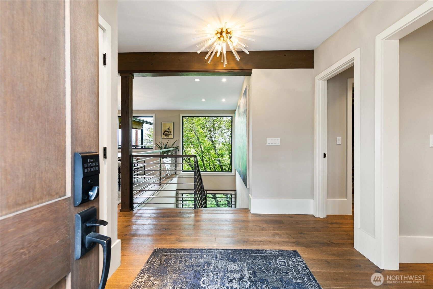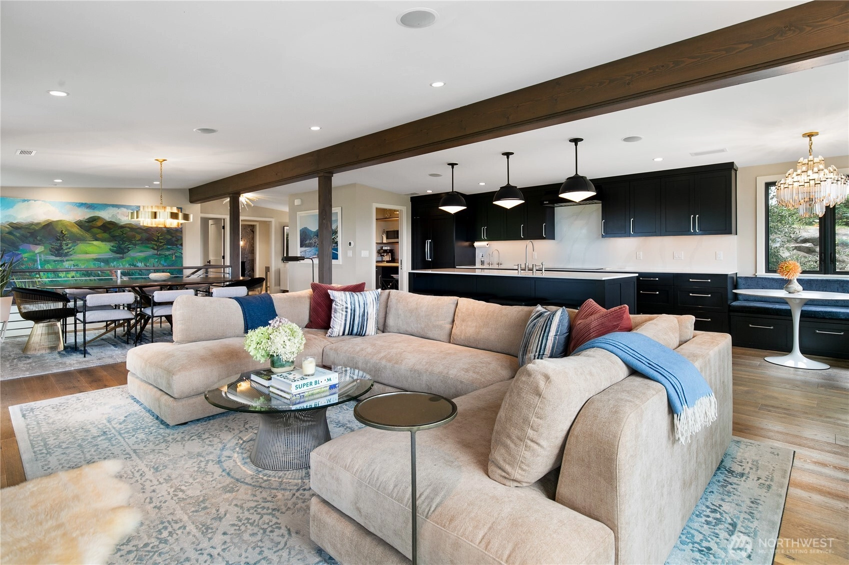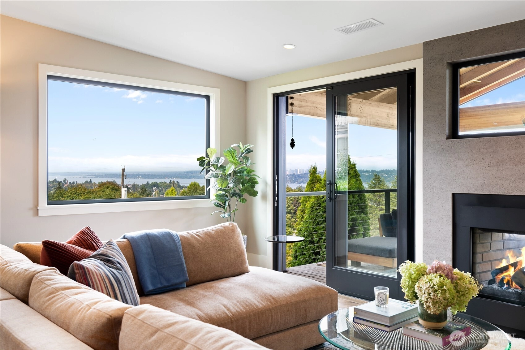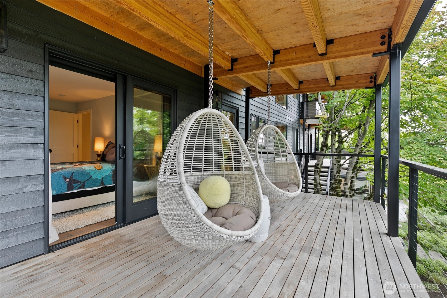 An architectural showpiece w/breathtaking Lake WA, Bellevue & Cascade views, this home was reimagined from the studs up in 2020. Light-filled interiors feature an open layout, oak floors, floating steel staircase, bespoke finishes, & high-end appliances (Sub-Zero, Wolf, Viking, Bosch). The primary suite offers a spa-inspired 5-pc ba & California closet. Enjoy effortless indoor-outdoor living w/5 steel-framed decks—4 covered—plus a private hottub. The fully fenced double lot boasts lush landscaping, raised garden beds & a greenhouse. Add’l highlights include a heated storage/flex rm, gym/studio, 2-car garage & generous off-street parking at the end of a quiet dead-end street—just 15 min to dwntn Seattle & close to light rail, parks & dining.
