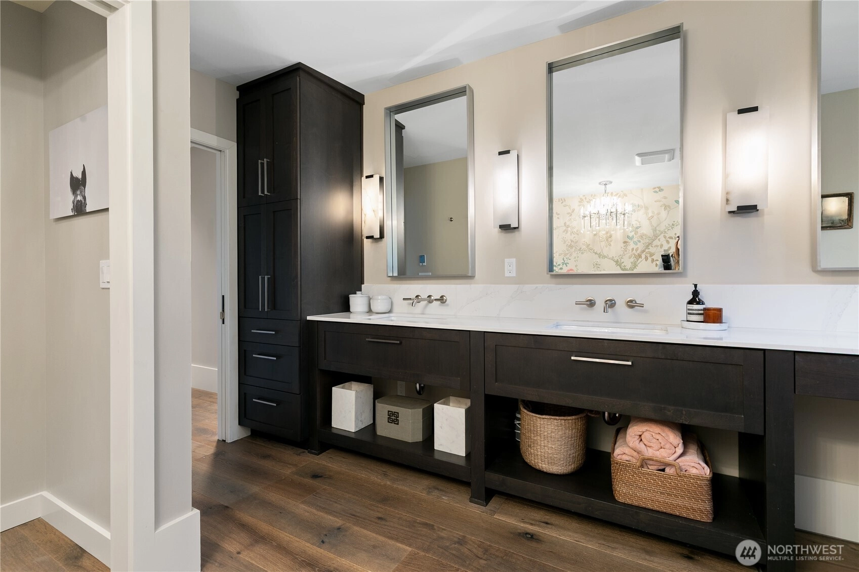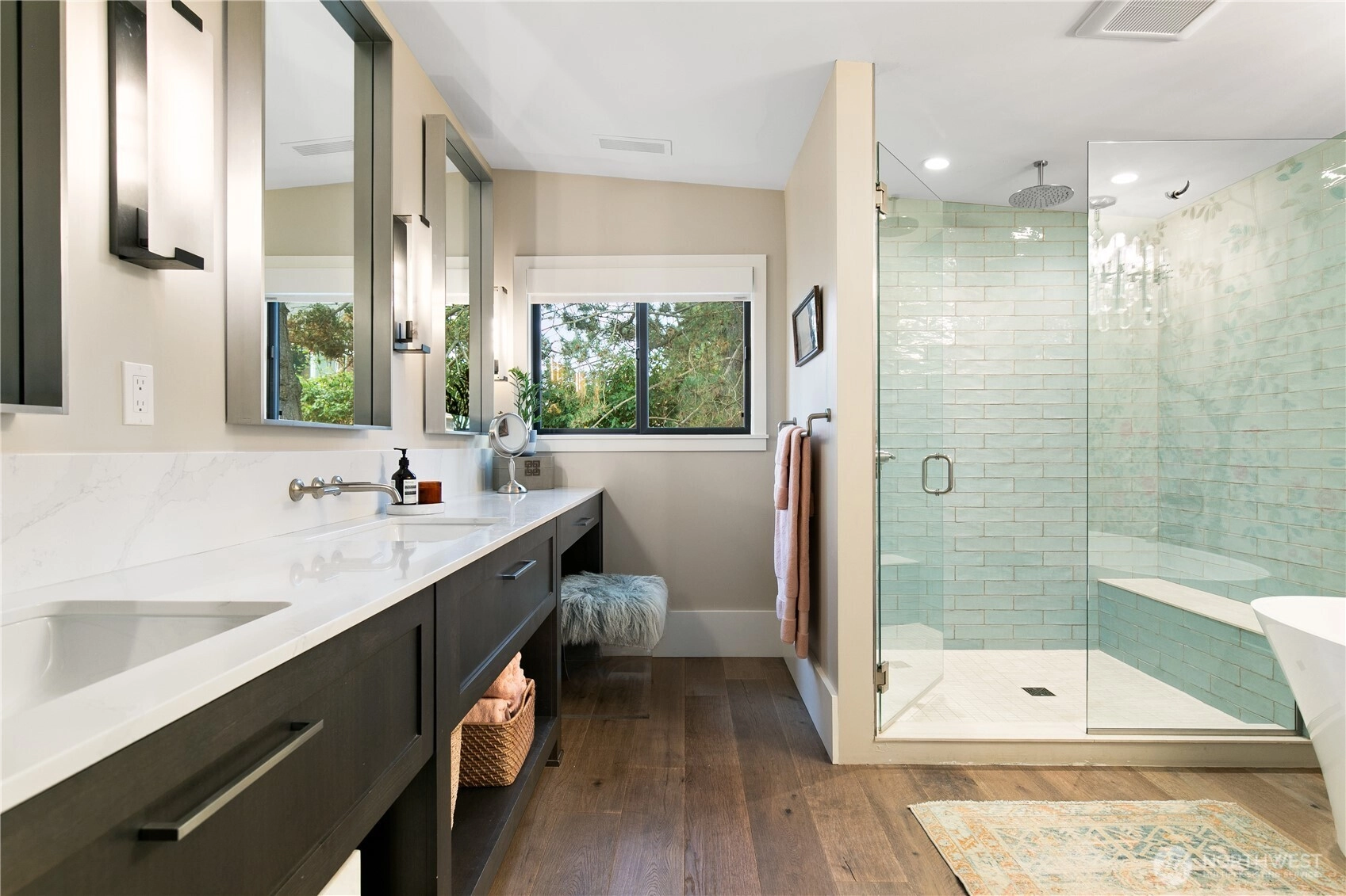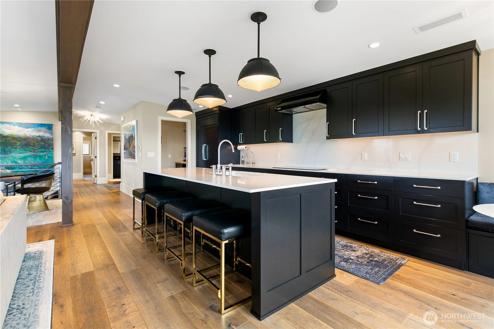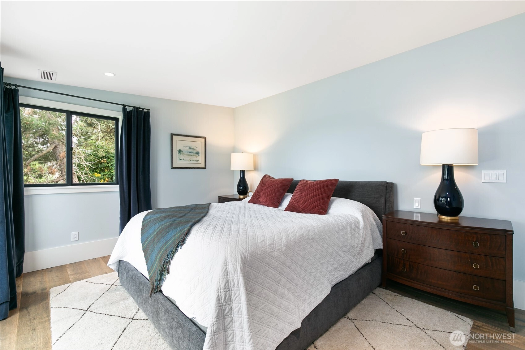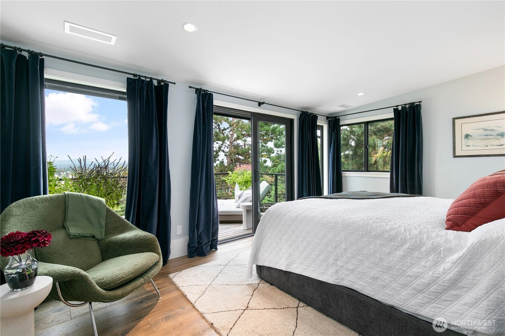 An architectural showpiece w/breathtaking Lake WA, Bellevue & Cascade views, this home was reimagined from the studs up in 2020. Light-filled interiors feature an open layout, oak floors, floating steel staircase, bespoke finishes, & high-end appliances (Sub-Zero, Wolf, Viking, Bosch). The primary suite offers a spa-inspired 5-pc ba & California closet. Enjoy effortless indoor-outdoor living w/5 steel-framed decks—4 covered—plus a private hottub. The fully fenced double lot boasts lush landscaping, raised garden beds & a greenhouse. Add’l highlights include a heated storage/flex rm, gym/studio, 2-car garage & generous off-street parking at the end of a quiet dead-end street—just 15 min to dwntn Seattle & close to light rail, parks & dining.