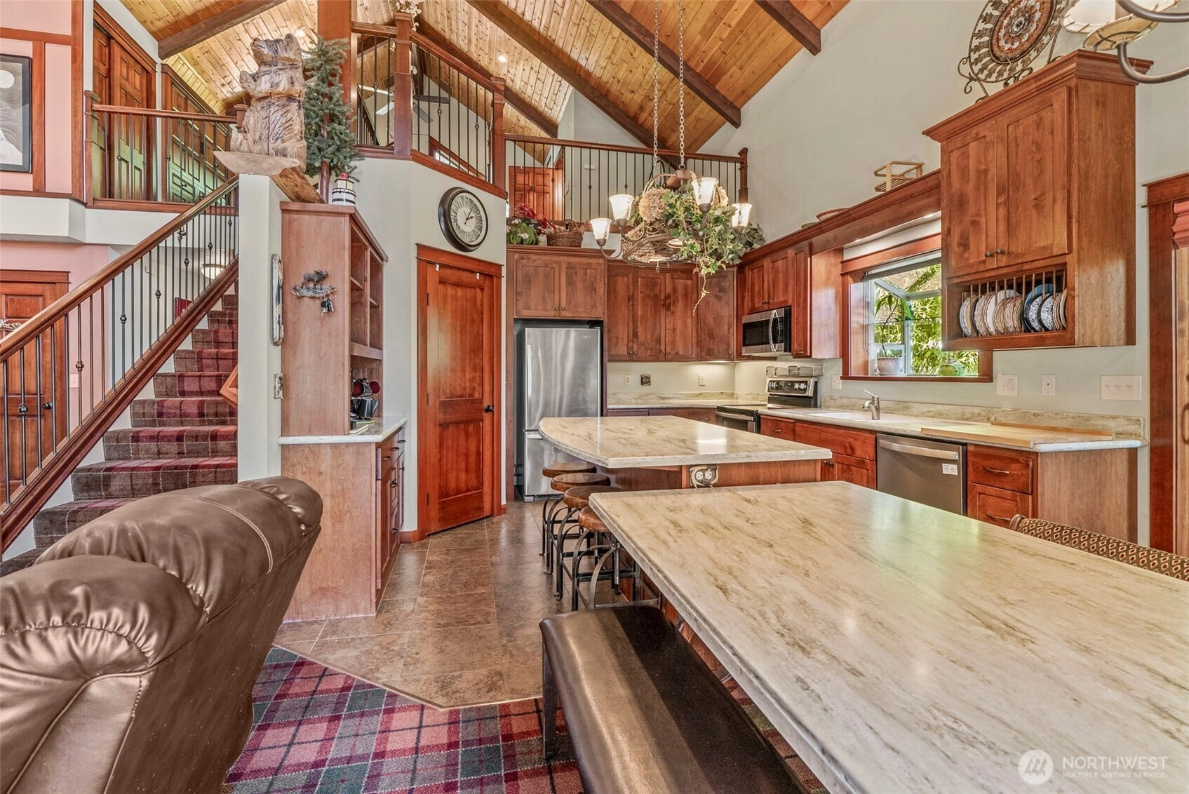 Welcome to your personal slice of paradise! This 2-bed, 2.5-bath gem in the coveted W Cape Horn neighborhood blends style, comfort, and nature in all the right ways. Enjoy stunning river views from the loft, main floor, deck, or patio! The lush yard features fruit trees, a koi pond, and space to roam. Need flexibility? The lower level is a fully independent living space—perfect for guests, rental income, or extended living. Bonus perks include a roomy loft, root cellar, 2-car garage with a workshop, and tranquil vibes throughout. Come fall in love with this one-of-a-kind retreat!