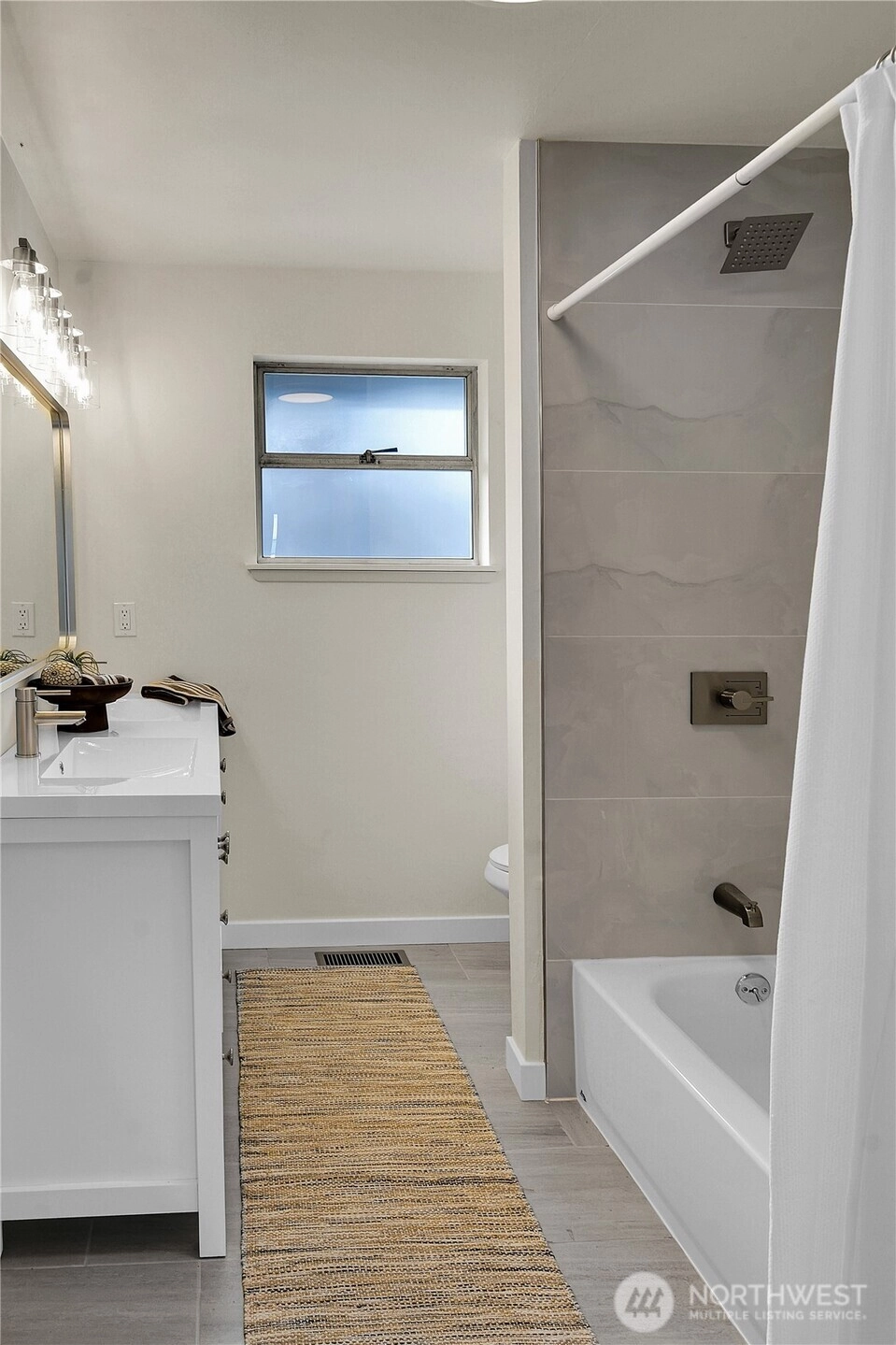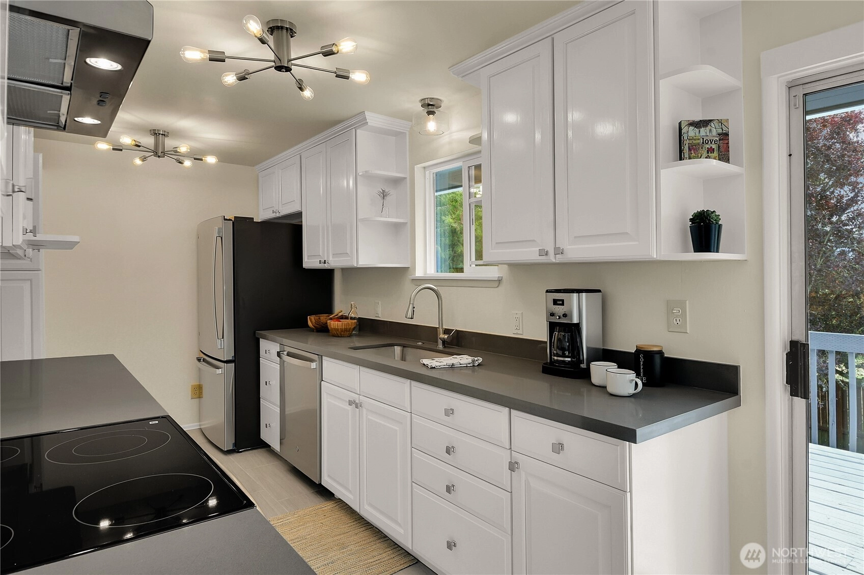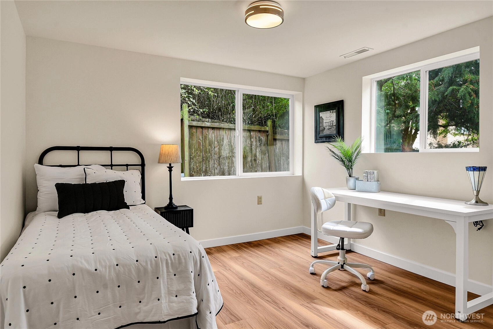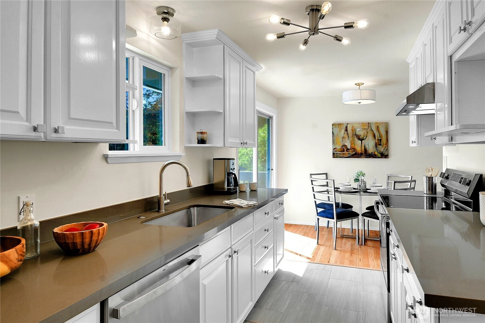 Nestled in SeaTac’s coveted Valley View area on a quiet dead end street, this beautiful home has just been totally updated with fresh finishes throughout! New roof and gutters, new exterior & interior paint, two gorgeous new bathrooms with custom tile. Updated kitchen with brand new appliances, quartz counters, & tile floor. Original hardwoods refinished. Three bedrooms & full bath with dual sinks on main floor. Two large bedrooms, 3/4 bath, plus a spacious bonus room with wood burning fireplace downstairs. The laundry/utility room is big and bright, plenty of room for customization. Built in storage? 2nd kitchen? Separate entrance offers flexibility. Large attached deck & a big sunny backyard. Huge detached 2 car garage with shop space.