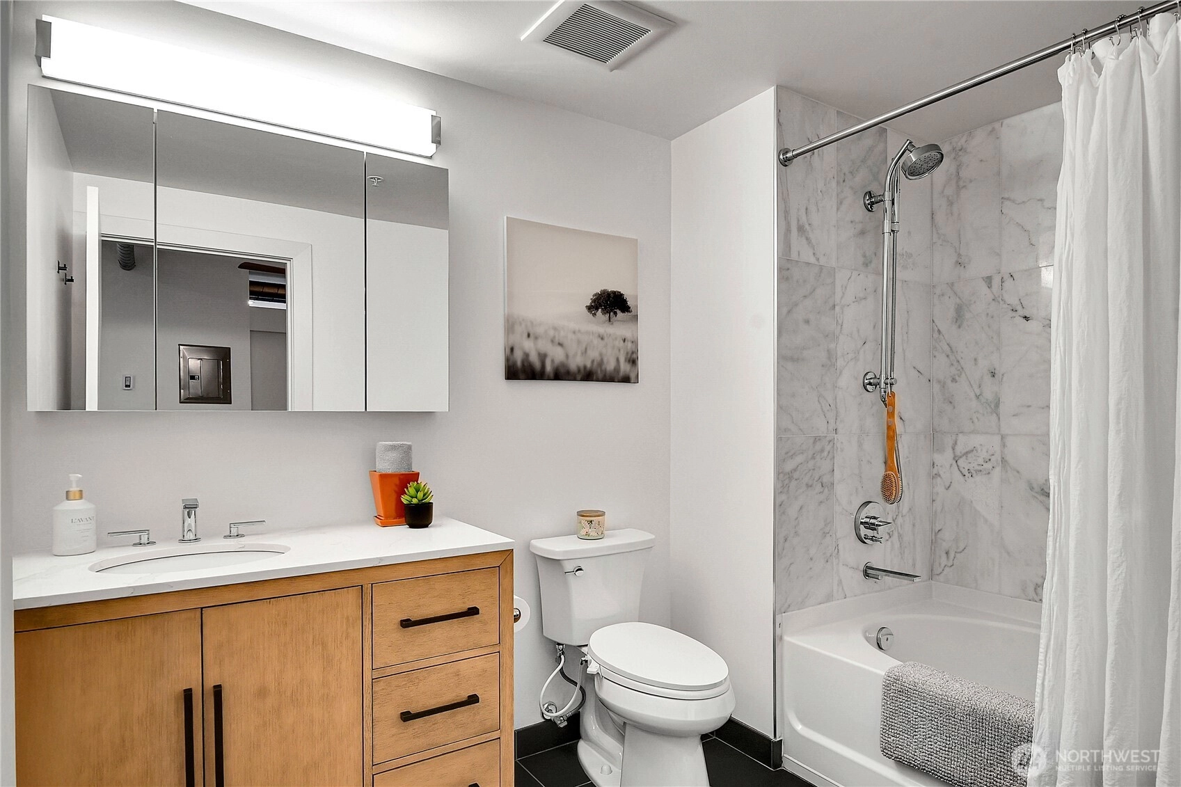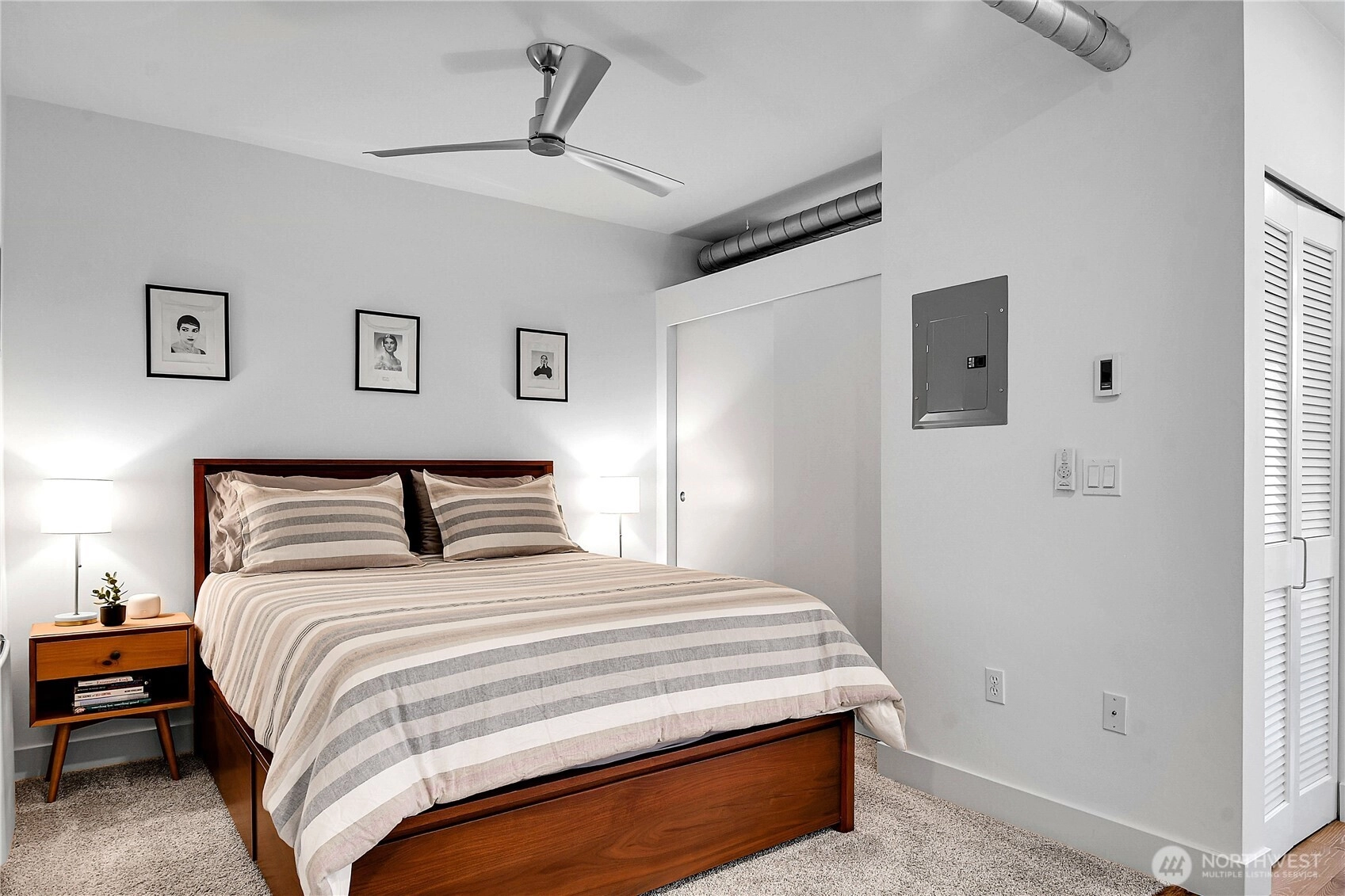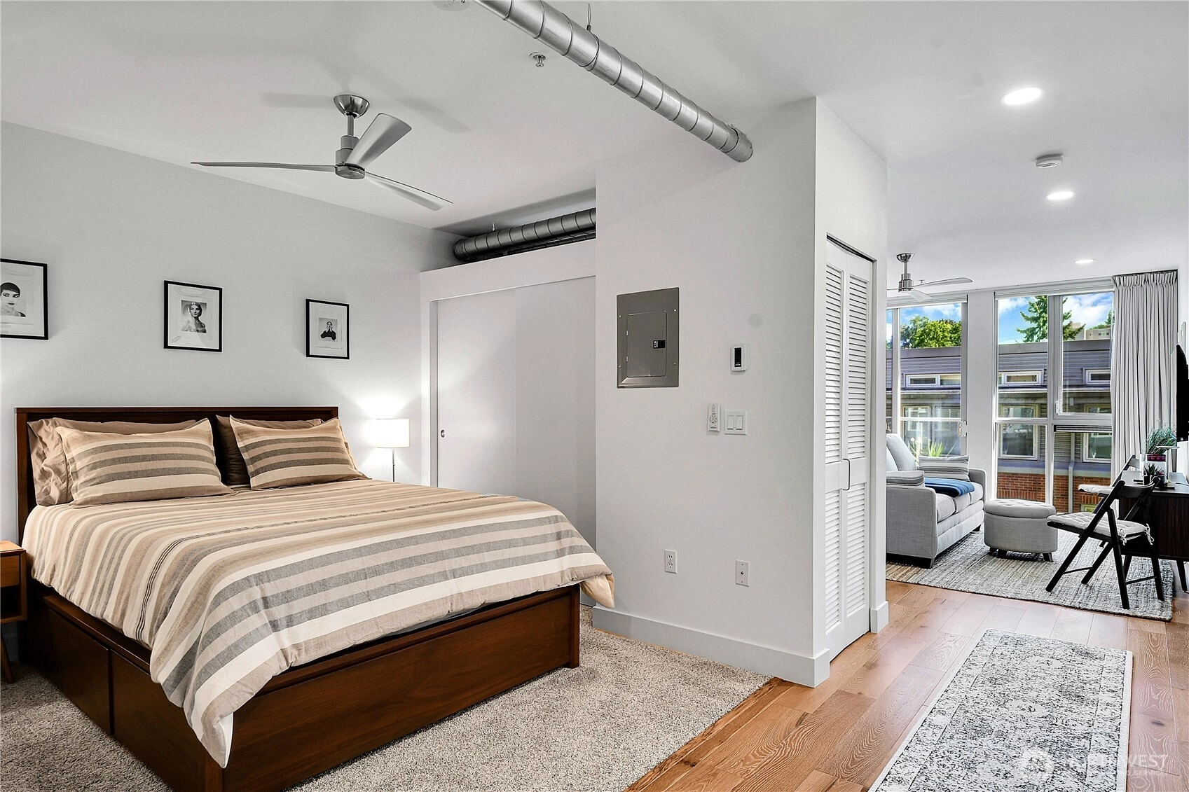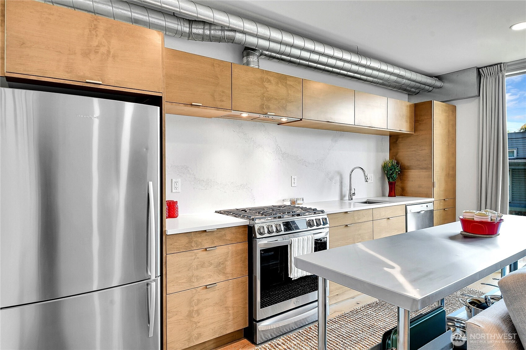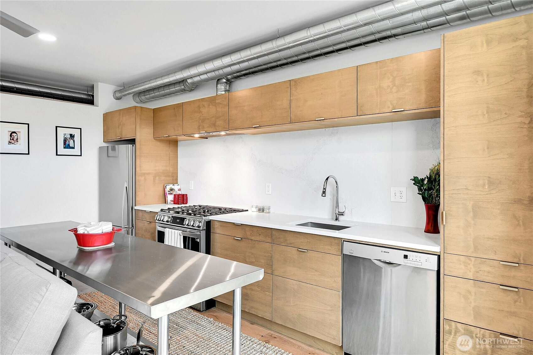 Sought after BRIX building in the heart of Capitol Hill! Light filled home with an east facing wall of windows and serene views of a lush courtyard. Highly upgraded including a gorgeous full bath, custom zoned recessed lighting and ceiling fans, gleaming wide plank oak hardwood floors, custom alder soft close cabinets & honed slab counter tops with marble quartz back splash. New gas oven range, dishwasher, washer/dryer, quiet convection heat, Hunter Douglas remote binds. Relax or entertain on rooftop deck w/views, gardens and barbeques. Leave the car in your secure garage, you are only steps away from shopping, cafes and fine dining, Light Rail, Volunteer Park. Pet friendly! Worry free living with Onsite building manager and a well run HOA