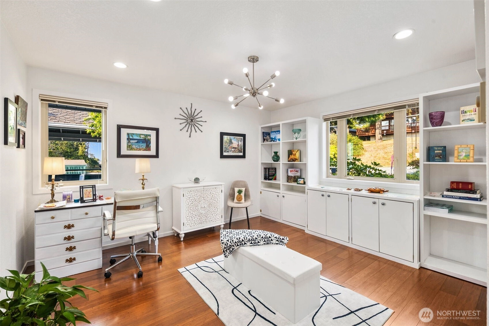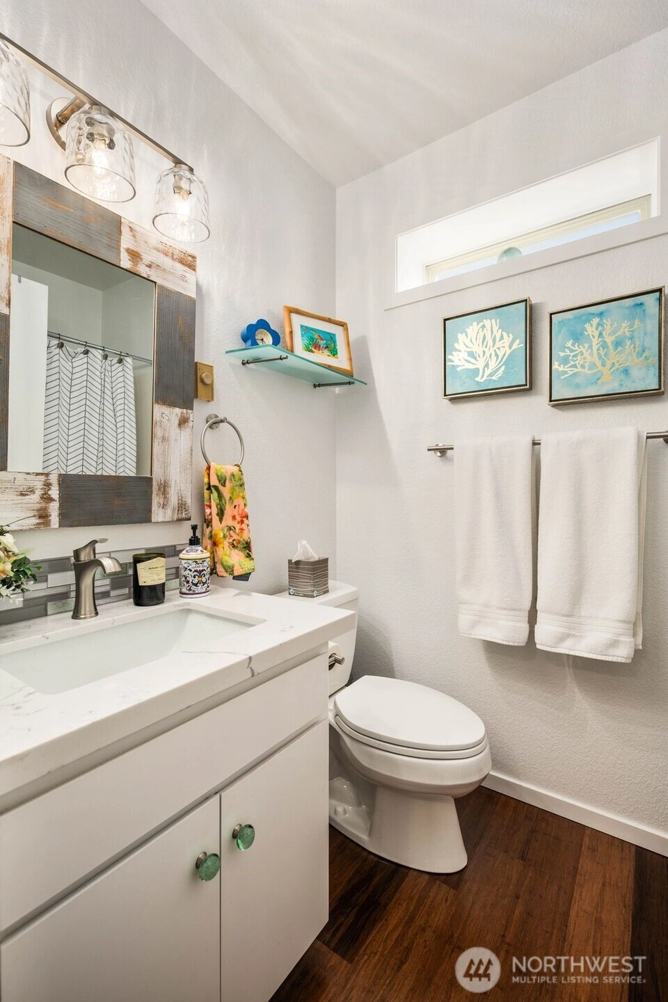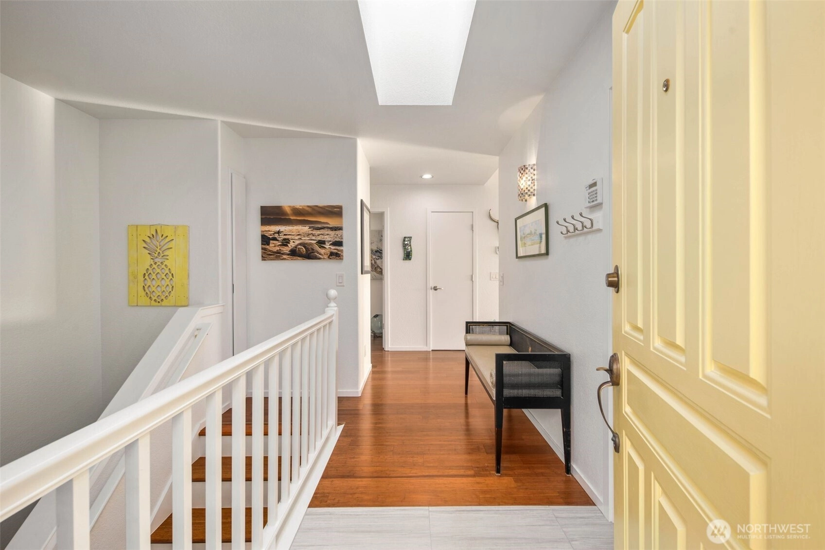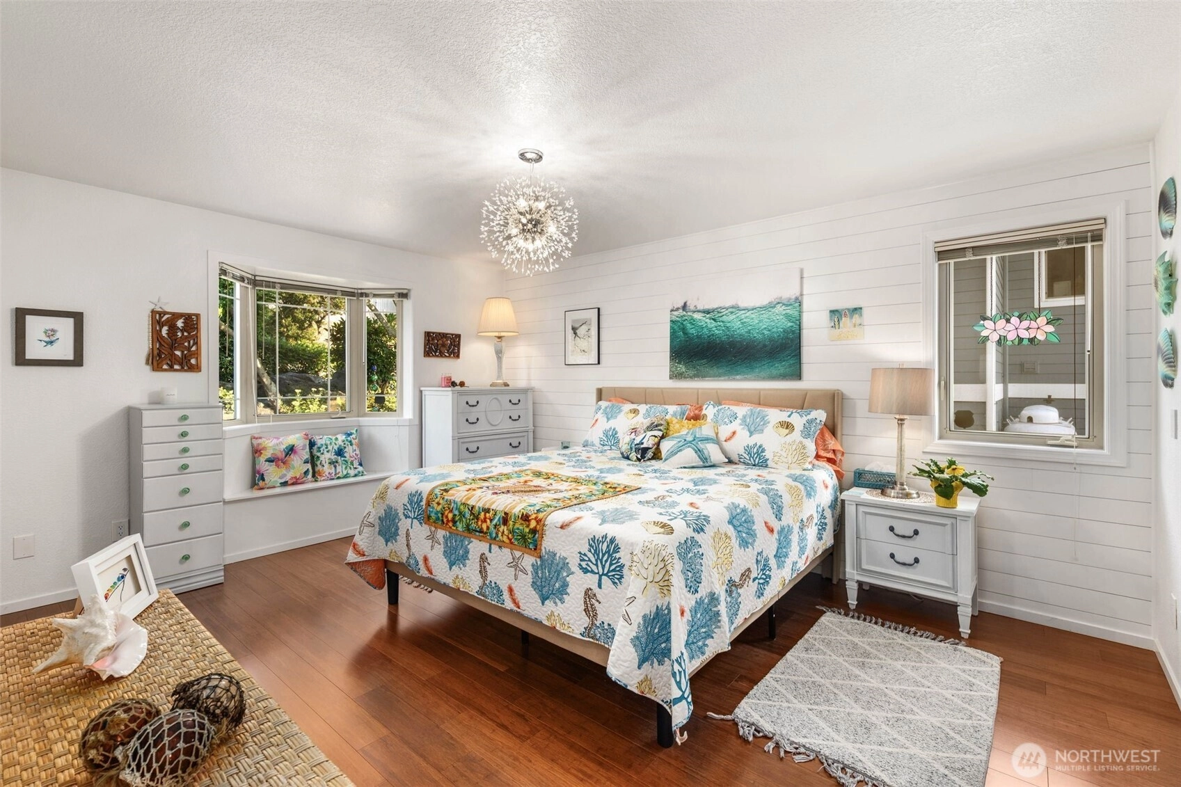 Experience island paradise with the perfect view, neighborhood, and house! This updated 2-bed, 3-bath home features bright open-concept living, vaulted ceilings, new bamboo floors, and a wraparound deck with stunning Sound and territorial views. The chef’s kitchen boasts slab granite counters, a breakfast bar, and stainless appliances. Downstairs includes a flex room with a walk-in storage closet and murphy bed, a family room opening to the beautiful backyard and view, and a 2-car garage with epoxy floor. The carport/boat house at the main entry provides level access. There’s also possible RV parking. Enjoy a private neighborhood beach and boat launch. No ferry needed—minutes from I-5!