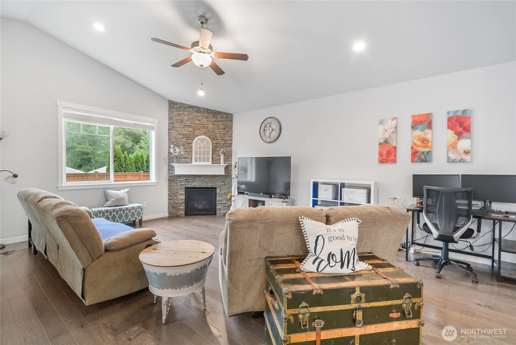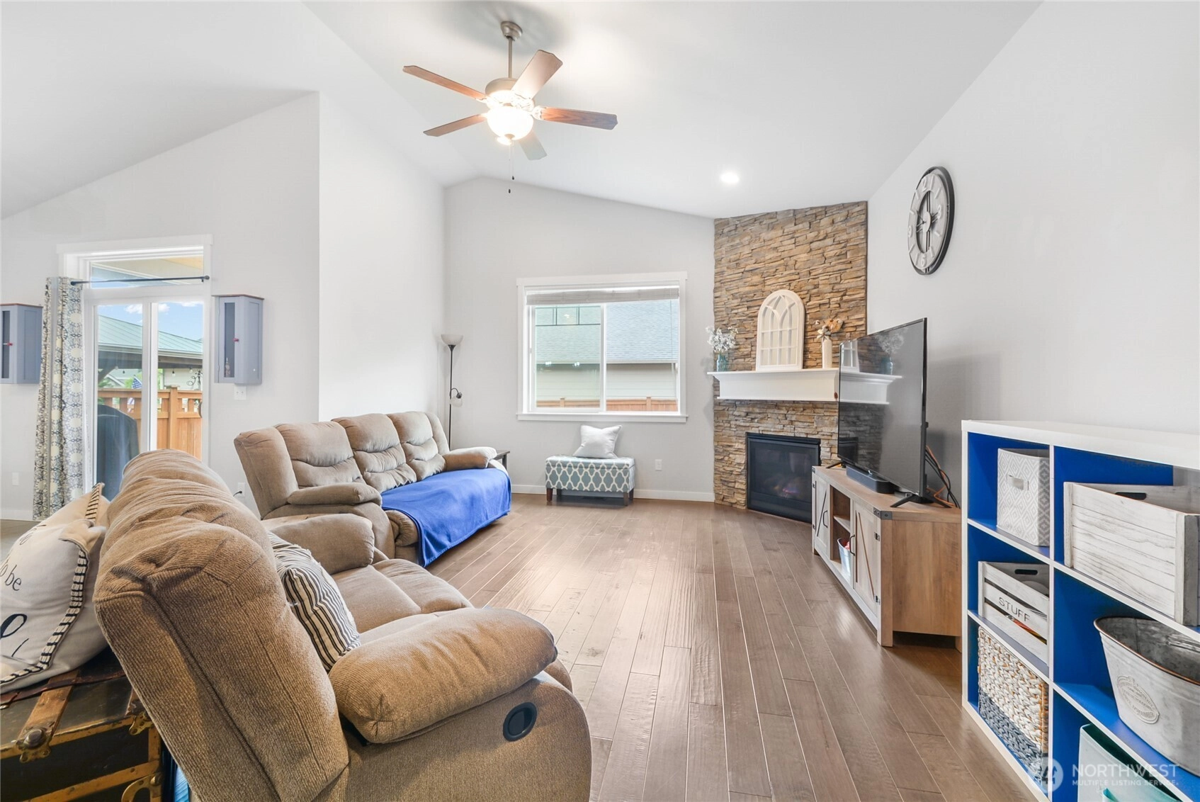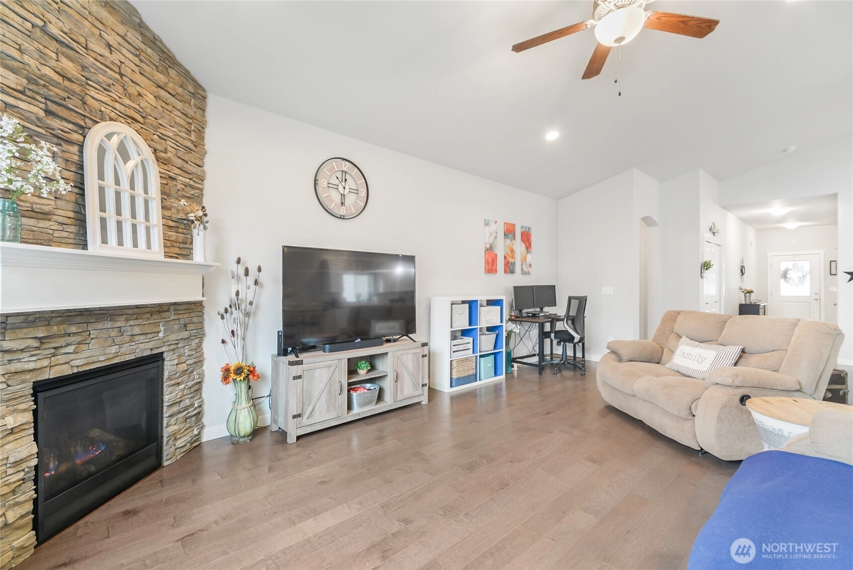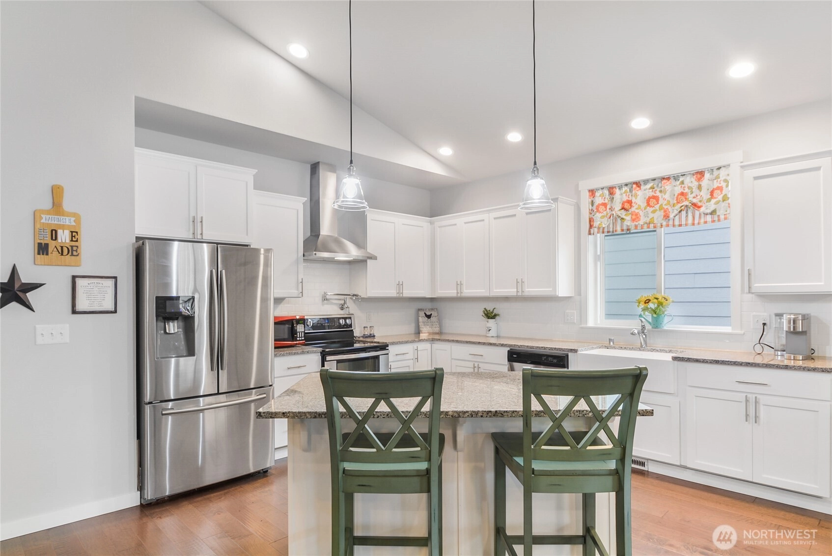 Welcome to Mineral Point! This well-maintained rambler offers an open concept floorplan connecting the kitchen, dining and great room - ideal for everyday living & entertaining. The kitchen boasts granite countertops, a full tile backsplash, double oven with range and pot filler, farmhouse sink and ample storage in the double pantry. Highlights of this home include 9 ft. ceilings, a stone stacked fireplace and engineered hardwood floors. The spacious primary suite features a 5-pc. bath and large walk-in closet. Enjoy the covered back deck and fully fenced back yard. Walking distance to Cedarhome Elementary. Low HOA dues! Just minutes from I-5. Stroll through downtown enjoying the shops, dining and local coffee shop.