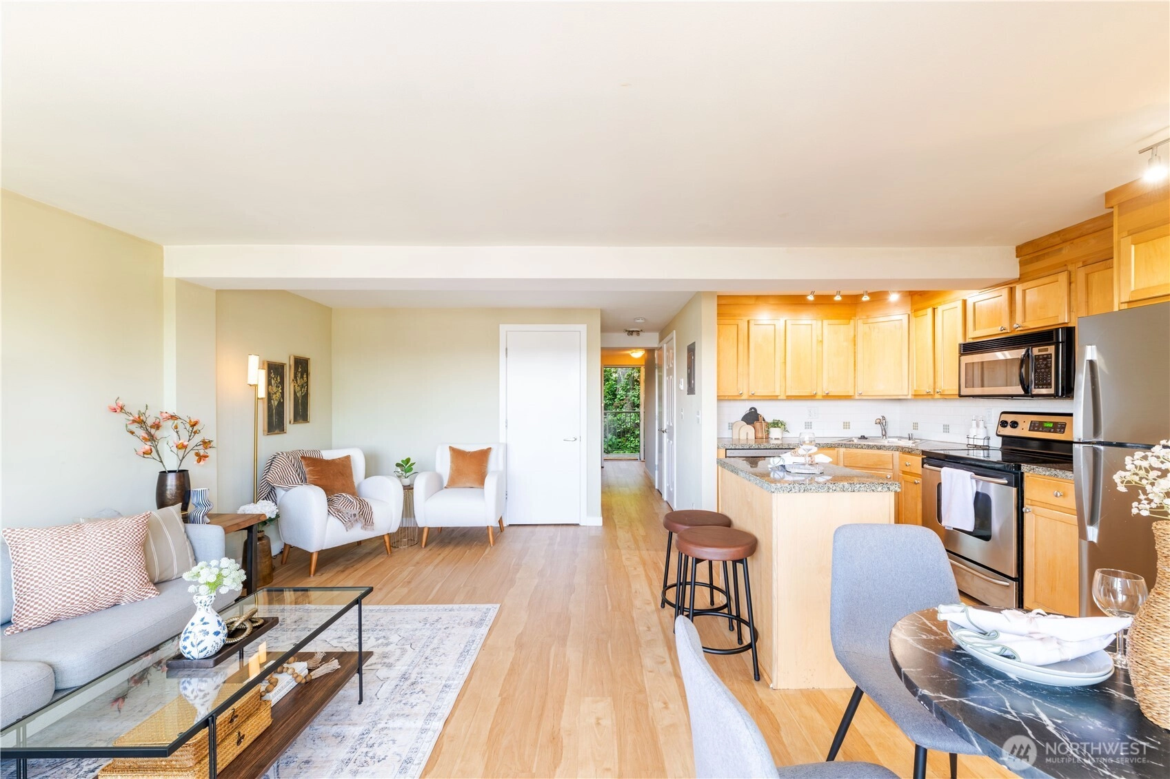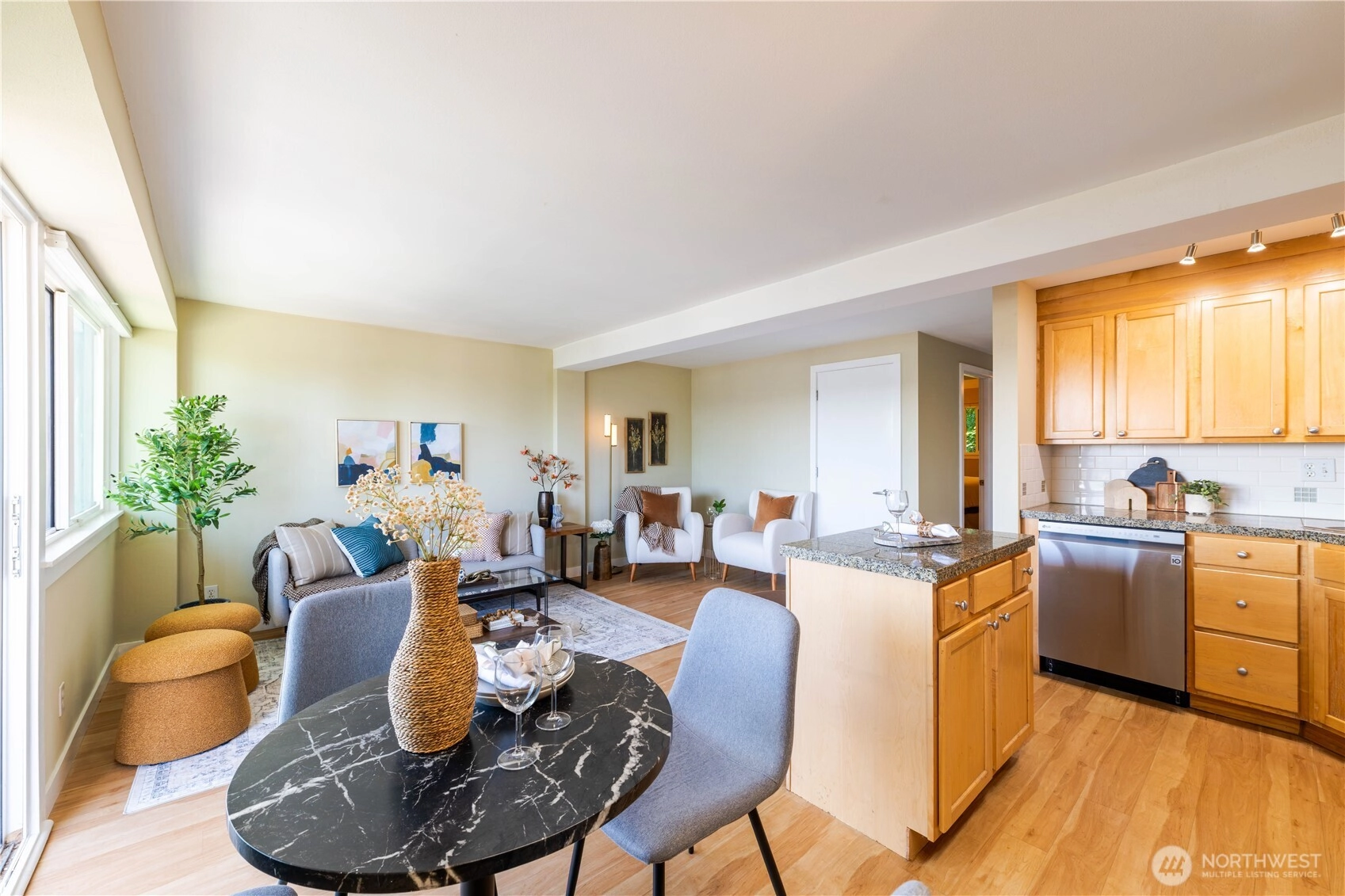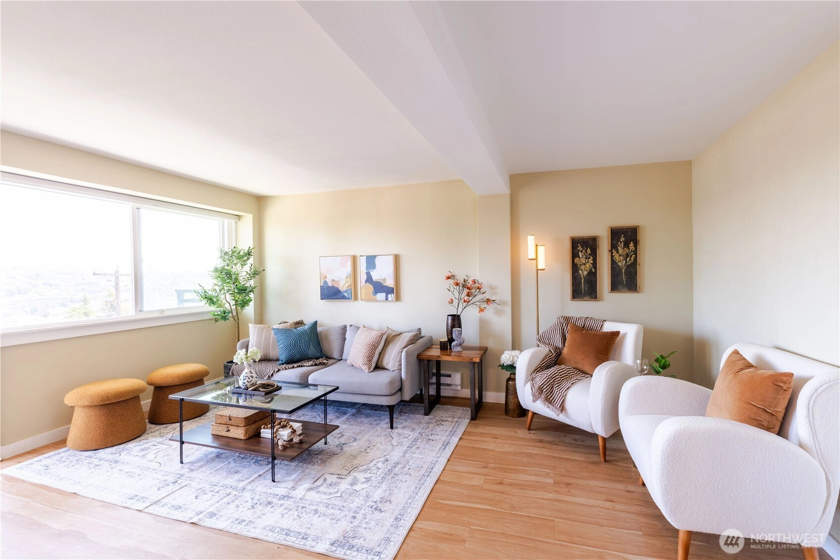 Spectacular views abound in this light filled 2 bedroom, 1 bath Seattle condo! 5th floor of the well-maintained Taylor building, sip your coffee on your deck while you take in the views of Queen Anne, Lake Union, downtown Seattle, and the Cascade Mountain range! This is a really great location, close to many employers, restaurants and night life. Nearby Fremont and Ballard and all kinds of recreation are very near. Go Kayaking on Lake Union, enjoy Queen Anne, and the whole South Lake Union Area. Storage Unit included. Deep parking space in common garage can fit 2 small cars in a row Newer roof and exterior of building. NO RENTAL CAP!