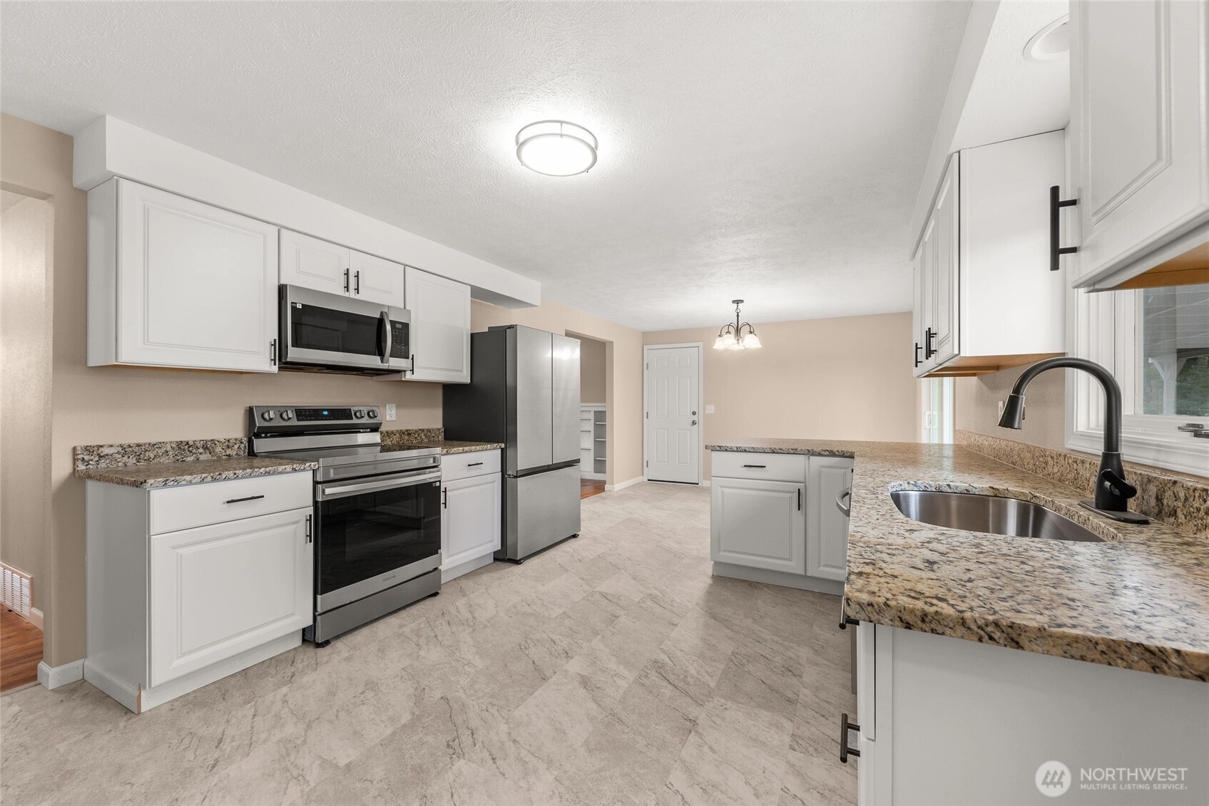 Welcome to this fully renovated rancher in the sought-after Kokomo neighborhood featuring 4+ beds & 3 baths w/an attached 2-car garage on an oversized lot. The main floor boasts a new kitchen w/SS appliances & hard-surface counters, dining, living room w/fireplace, bath & 3 beds including a master suite w/pvt bath. The basement offers a spacious family room w/fireplace, bed w/full bath, ideal as a second master, plus an office w/ample storage. Outside, enjoy your private oasis on the covered back patio, perfect for entertaining. Recent upgrades; new flooring, fresh interior/exterior paint, gutters, light fixtures, HVAC system & new garage door. Conveniently located just steps from University Elem. w/easy access to shopping & dwntwn Spokane.