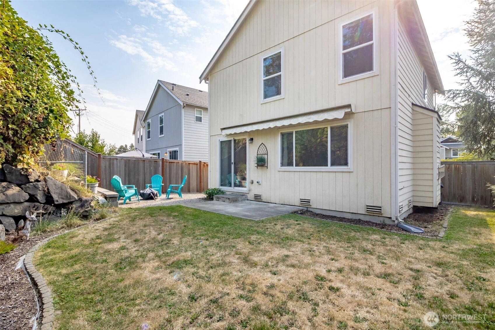 Welcome home to this beautifully maintained 4-bedroom, 2.5-bath home in Fife! Inside you'll enjoy fresh LVP flooring, new carpet, and a cozy gas fireplace. Upstairs features a spacious primary suite with private bath & walk-in closet, additional generously sized bedrooms, and a convenient laundry area. Recent updates include new fence (2021), water heater (2022), plus 50-yr roof & solar panels (2022) that keep electric bills low at just $28–$68/mo! Step outside to your private backyard retreat, complete with a firepit, retractable awning with wind sensor, and natural privacy from the surrounding rock wall and greenery—perfect for relaxing or entertaining year-round. Pre-inspected for your peace of mind, this home is move-in ready!