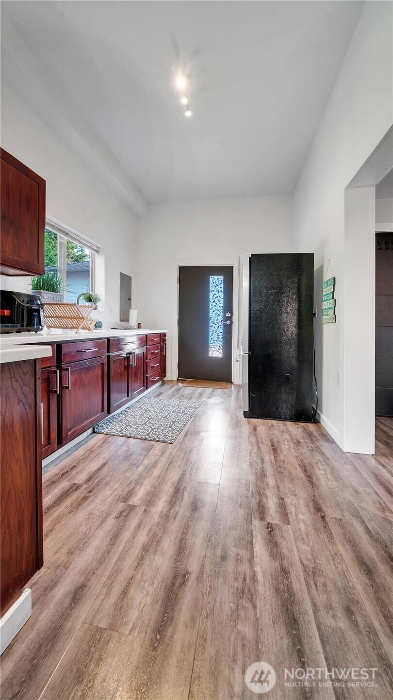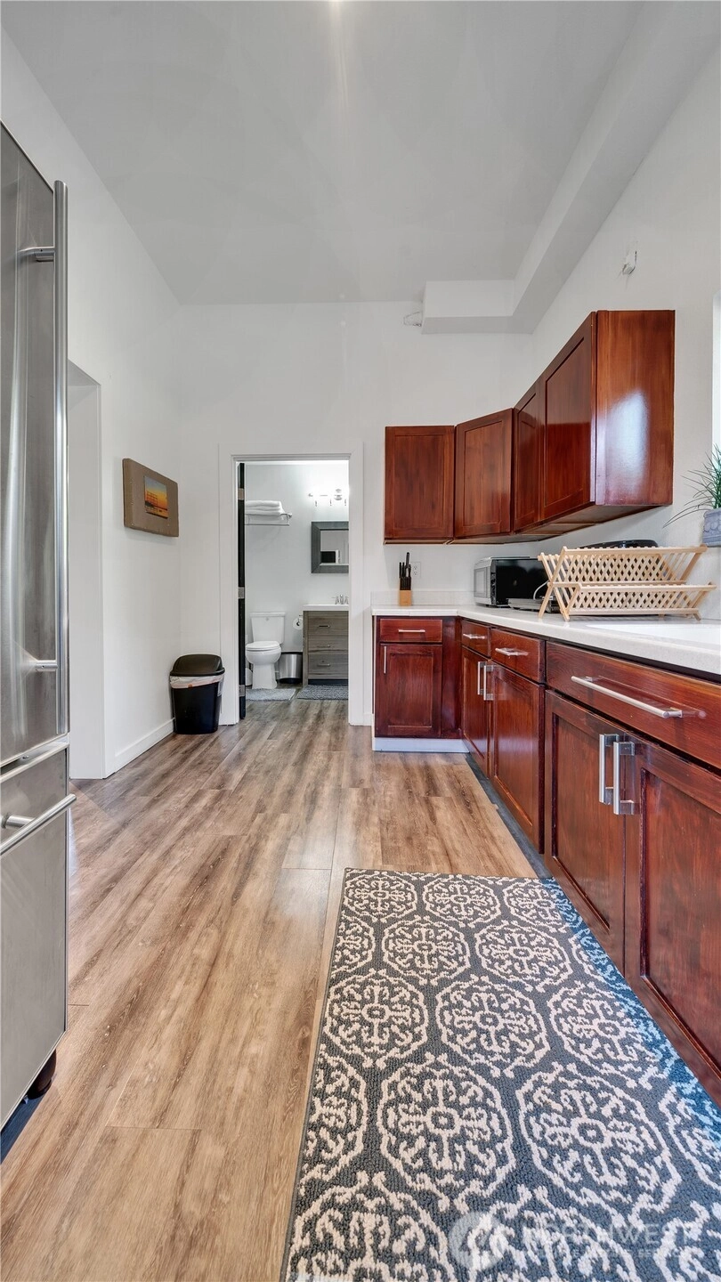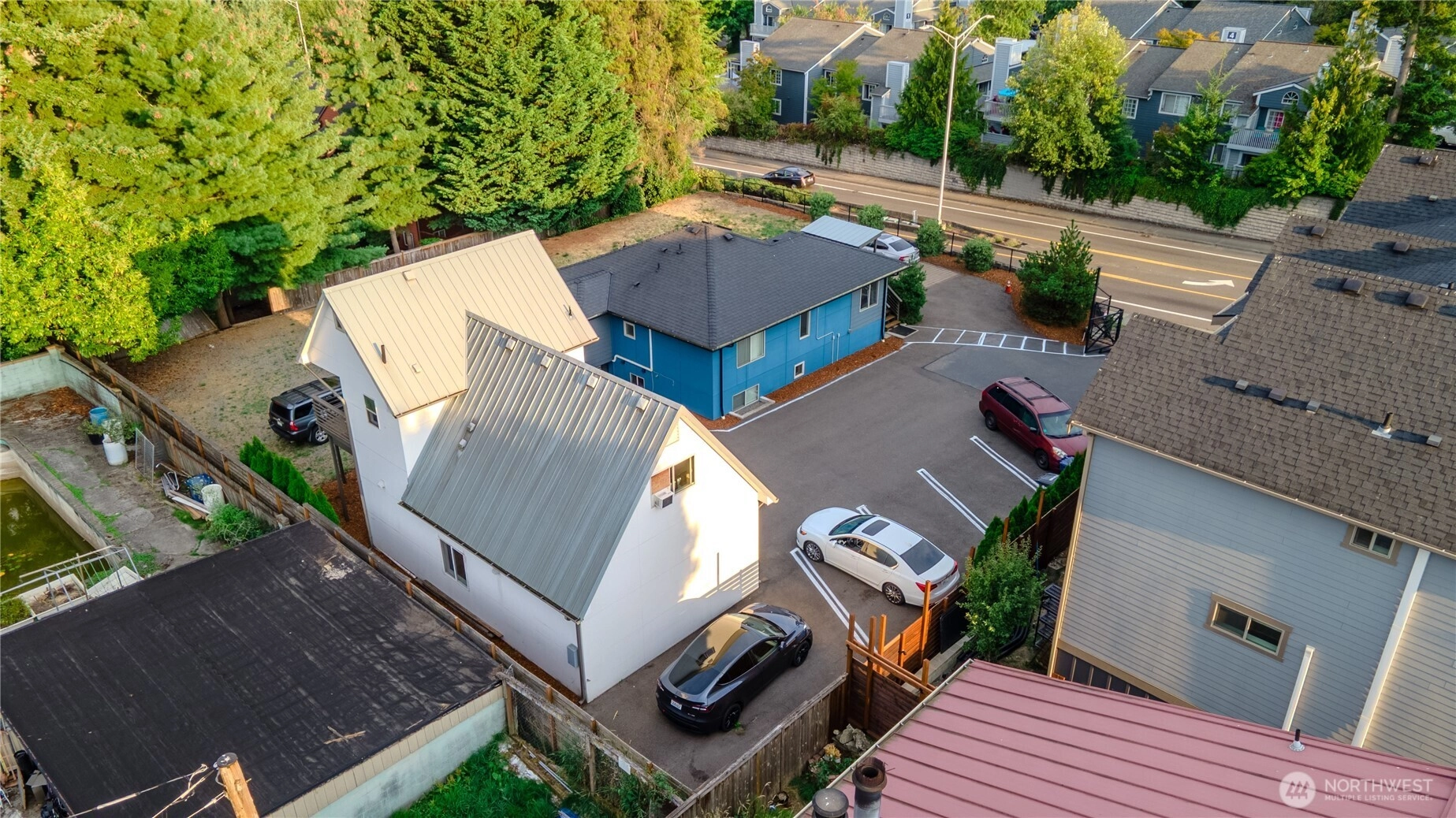 Fully furnished 4-unit compound previously operated as Airbnb. Front house: 3bd/2.5 bath main. DADU: 1bd/1ba over garage + studio/1ba at grade. 3 kitchens; 3 in-unit laundries + housekeeping laundry. Extra-tall garage and lots of on-property parking. HDR zoning with conceptual capacity for 7 townhomes; added upside via HB 1110 (Middle Housing) and the Transit District Overlay (TDO). Operate as STR/MTR/long-term, house-hack, or redevelop. Buyer to verify all information to their satisfaction. This is an incredible investment with so many possibilities from multi-generational living, passive rental income, or future development. Across from the Tukwila Light Rail Station.