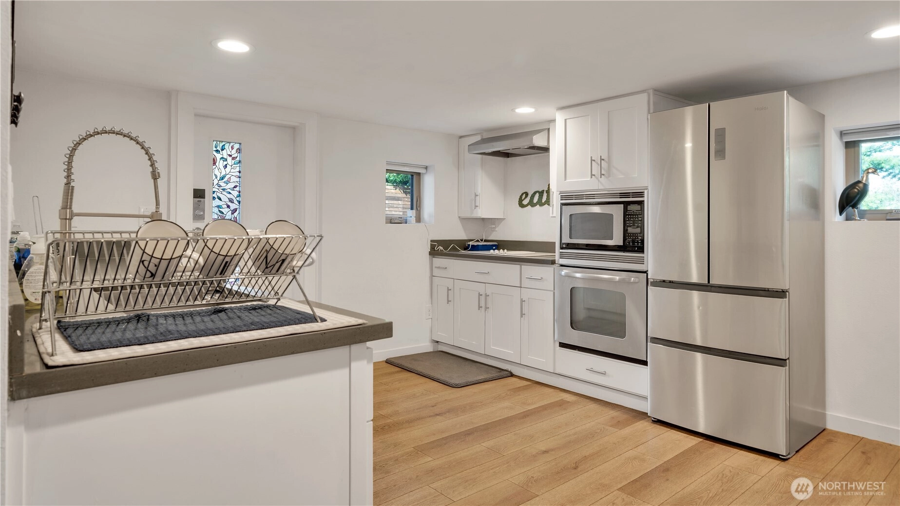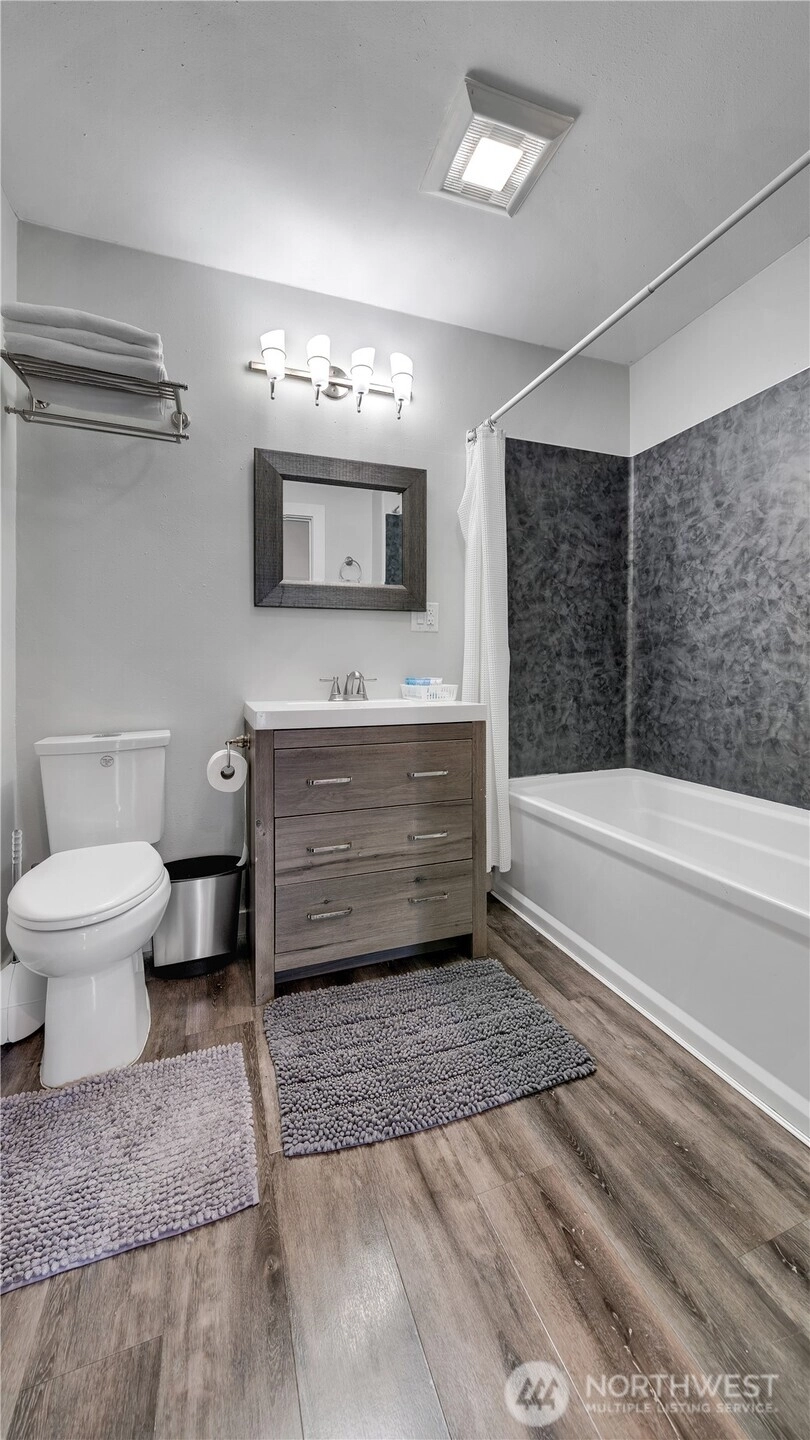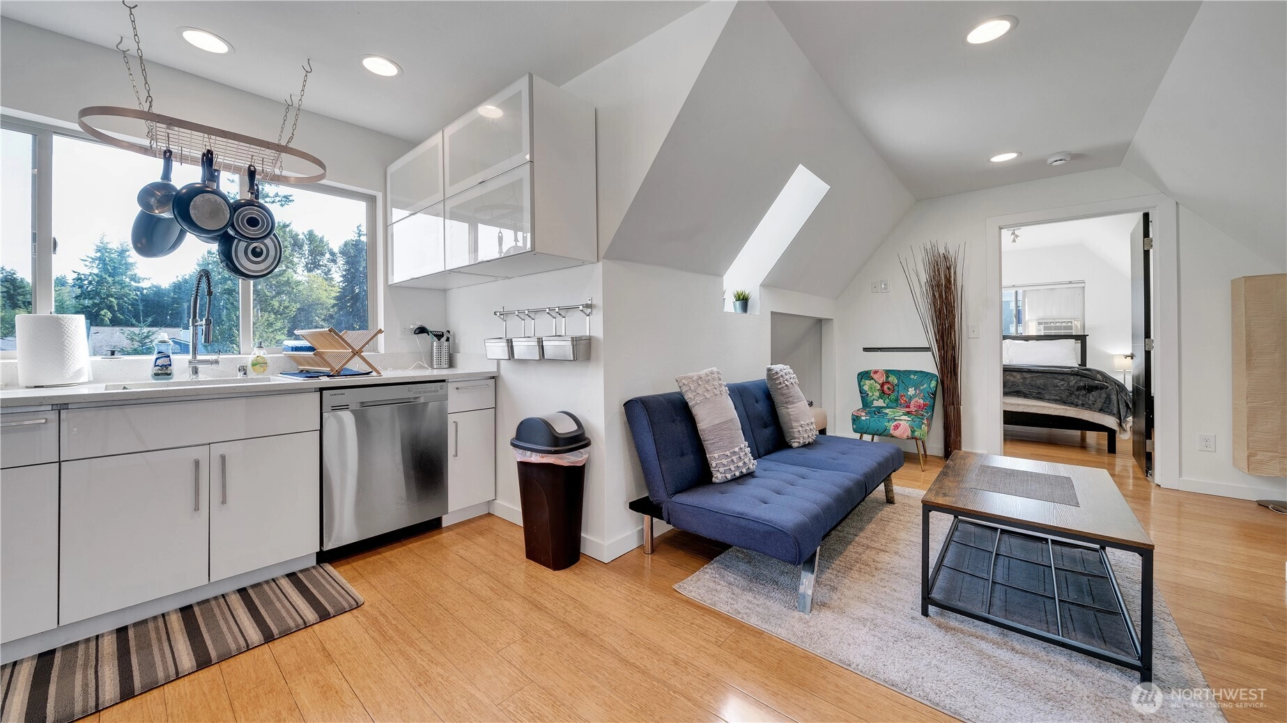 Fully furnished 4-unit compound previously operated as Airbnb. Front house: 3bd/2.5 bath main. DADU: 1bd/1ba over garage + studio/1ba at grade. 3 kitchens; 3 in-unit laundries + housekeeping laundry. Extra-tall garage and lots of on-property parking. HDR zoning with conceptual capacity for 7 townhomes; added upside via HB 1110 (Middle Housing) and the Transit District Overlay (TDO). Operate as STR/MTR/long-term, house-hack, or redevelop. Buyer to verify all information to their satisfaction. This is an incredible investment with so many possibilities from multi-generational living, passive rental income, or future development. Across from the Tukwila Light Rail Station.