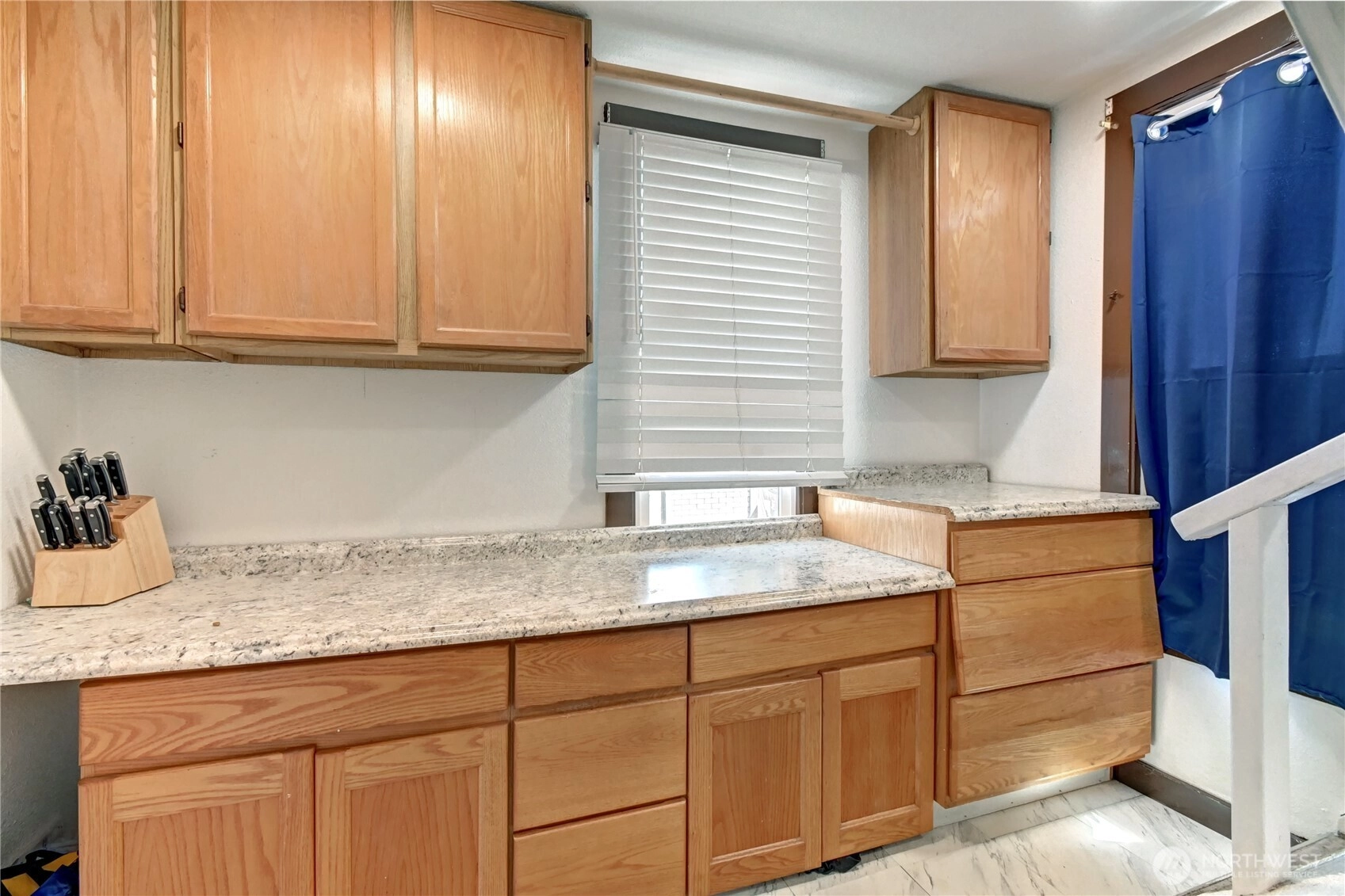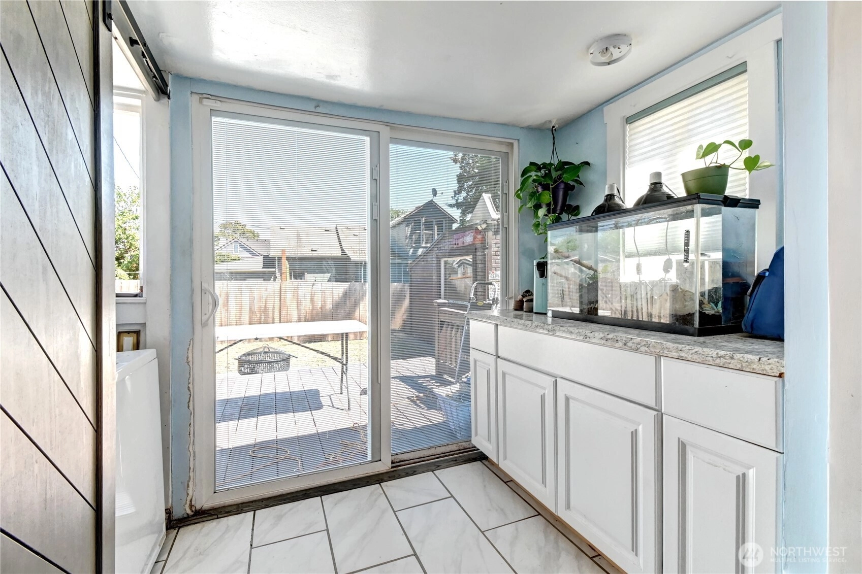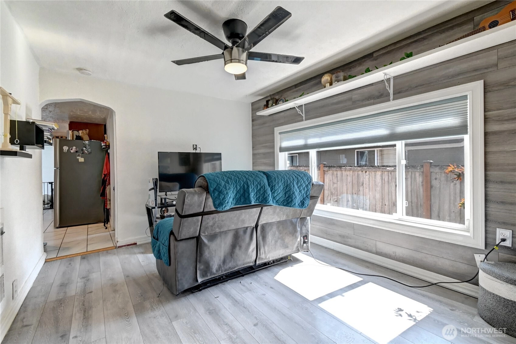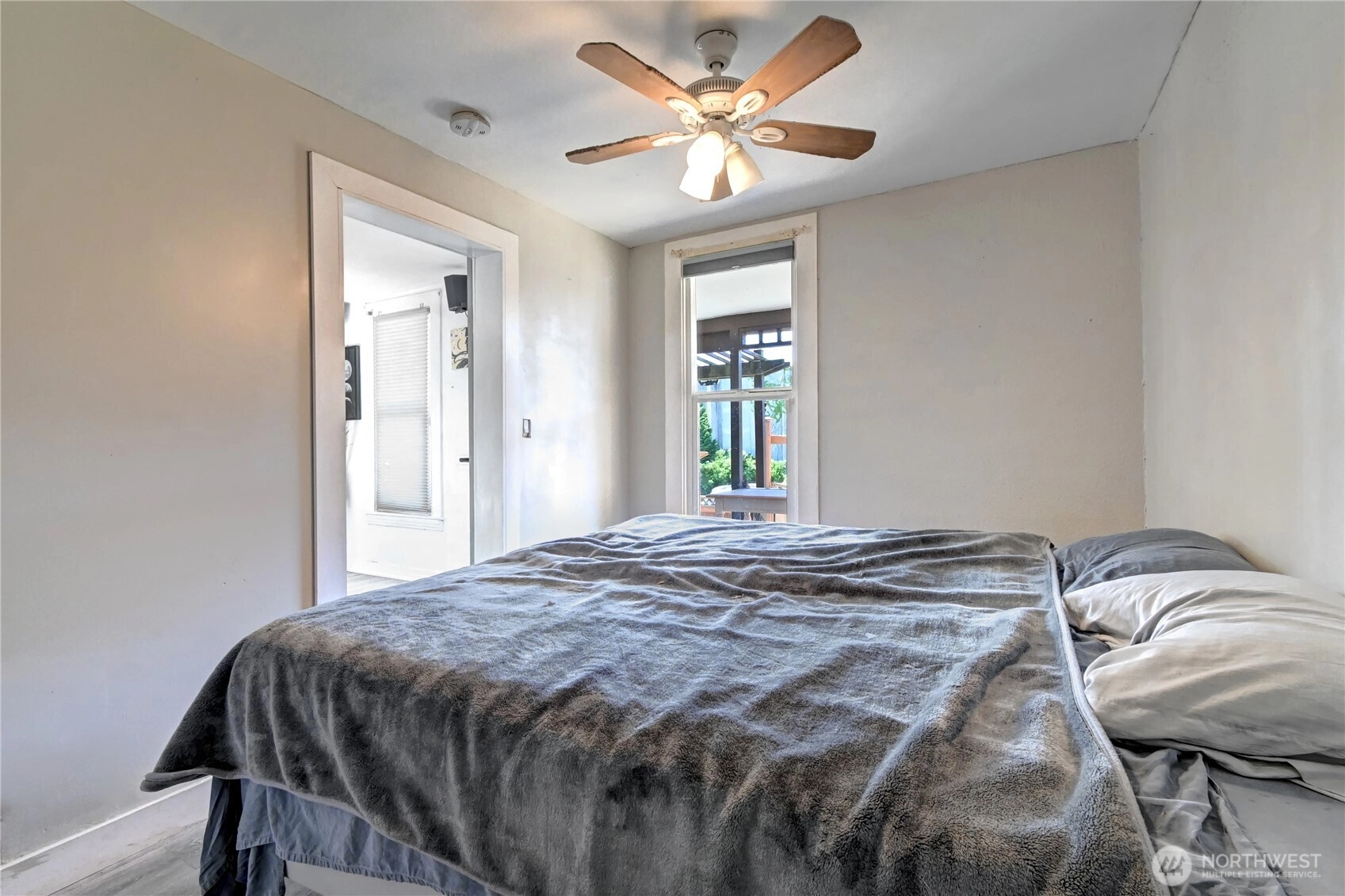NEW PRICE! North Everett two story with 3 bedrooms and 2 baths. Cozy front porch and fully fenced in yard with shed/shop area great for your hobbies. Updated flooring with laminate wood floors, main floor bedroom with stylish barn door, kitchen with eating space, 3/4 bath and laundry room, along with extra storage area by the stairway. Upstairs you will find the primary suite with built-in closet, full bath and 3rd bedroom. Enjoy all that Everett has to offer with the local restaurants, shops, waterfront marina and the Angels of the wind arena.