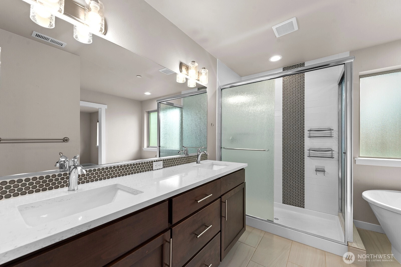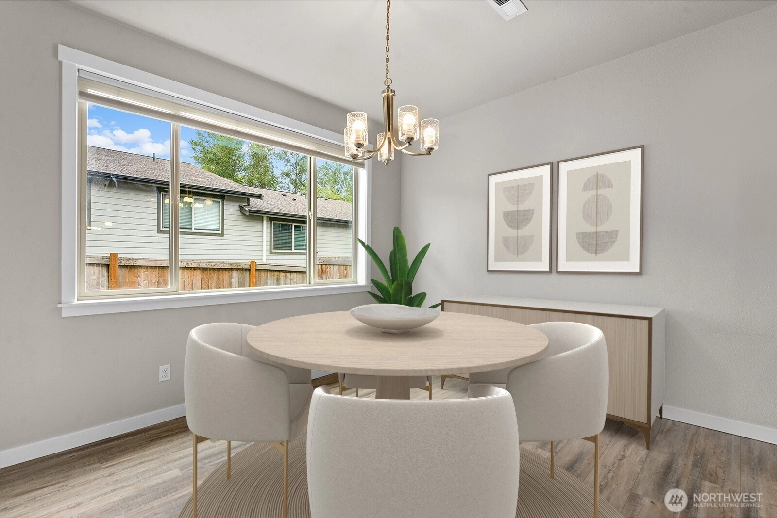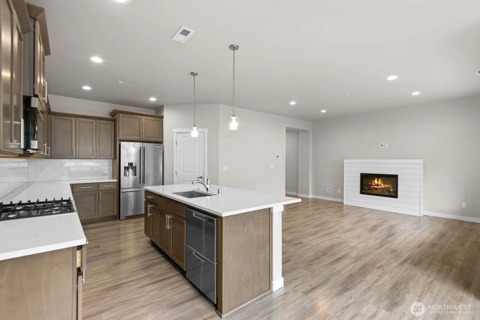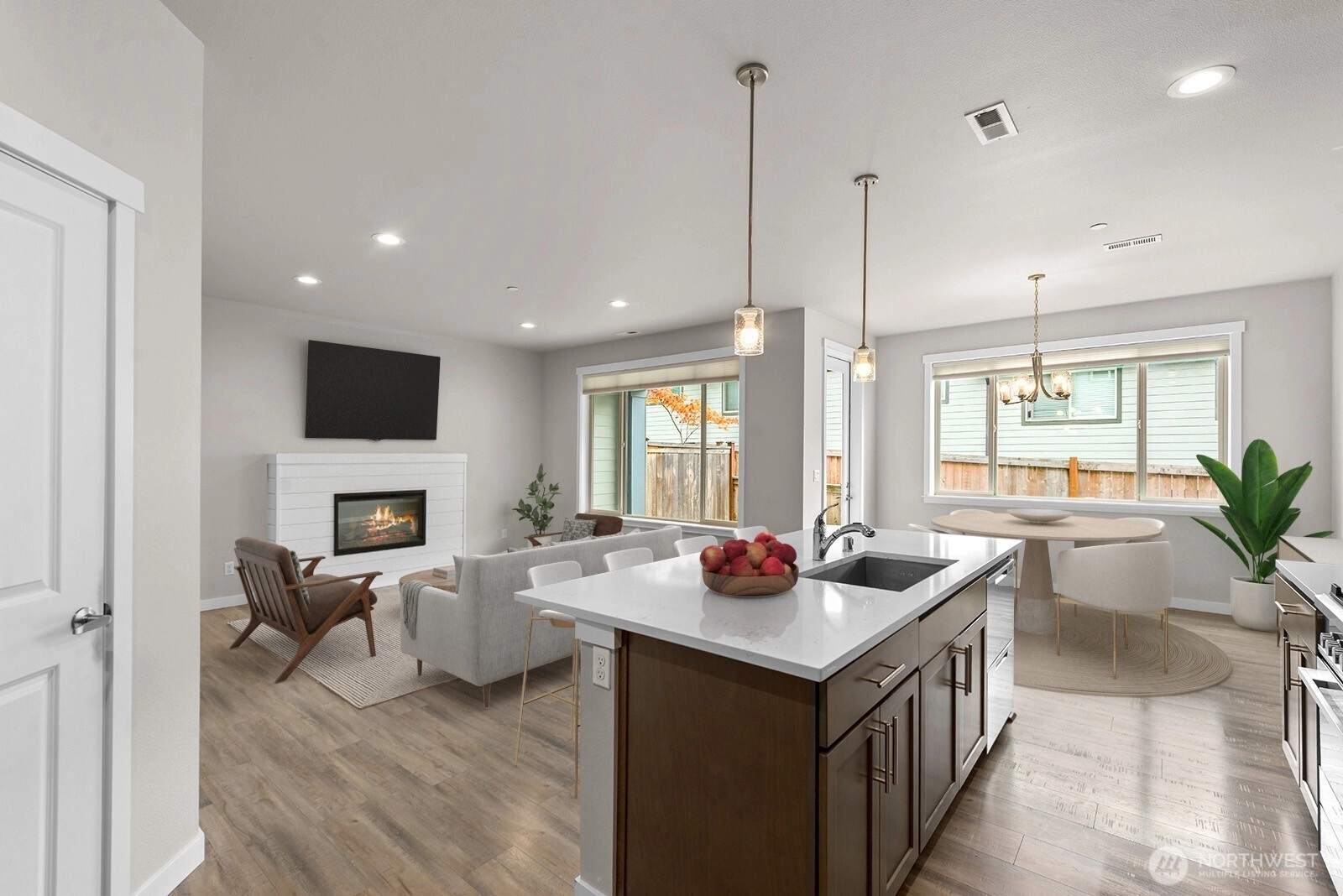 Welcome to The Woodlands at Edgewood! Enjoy a contemporary design, perfect for today's lifestyle. Find an open-concept chef's kitchen featuring a spacious island w/quartz counters, plenty of cabinets for storage + large pantry, & SS appliances including a high-end Fisher & Paykel gas stove. The covered patio & fenced low-maintenance turf yard are a perfect place to enjoy summer. Up, find a flexible space (office, den, playroom?), laundry, & 3 large bedrooms, including a spa-like primary suite with a walk-in closet. 2-car, side-by-side garage. Quality systems including a high-efficiency Trane furnace & tankless water heater highlight the construction quality. Conveniently located near amenities, grocery stores, freeways, & community park.