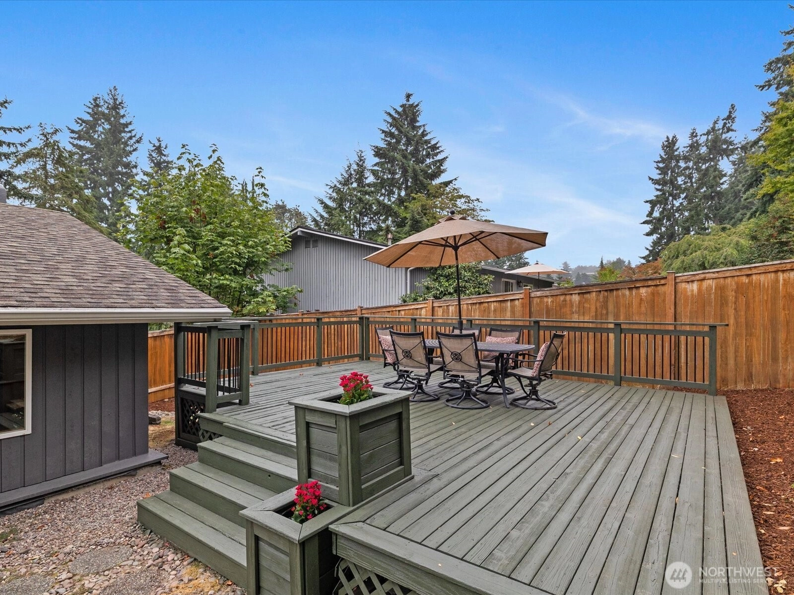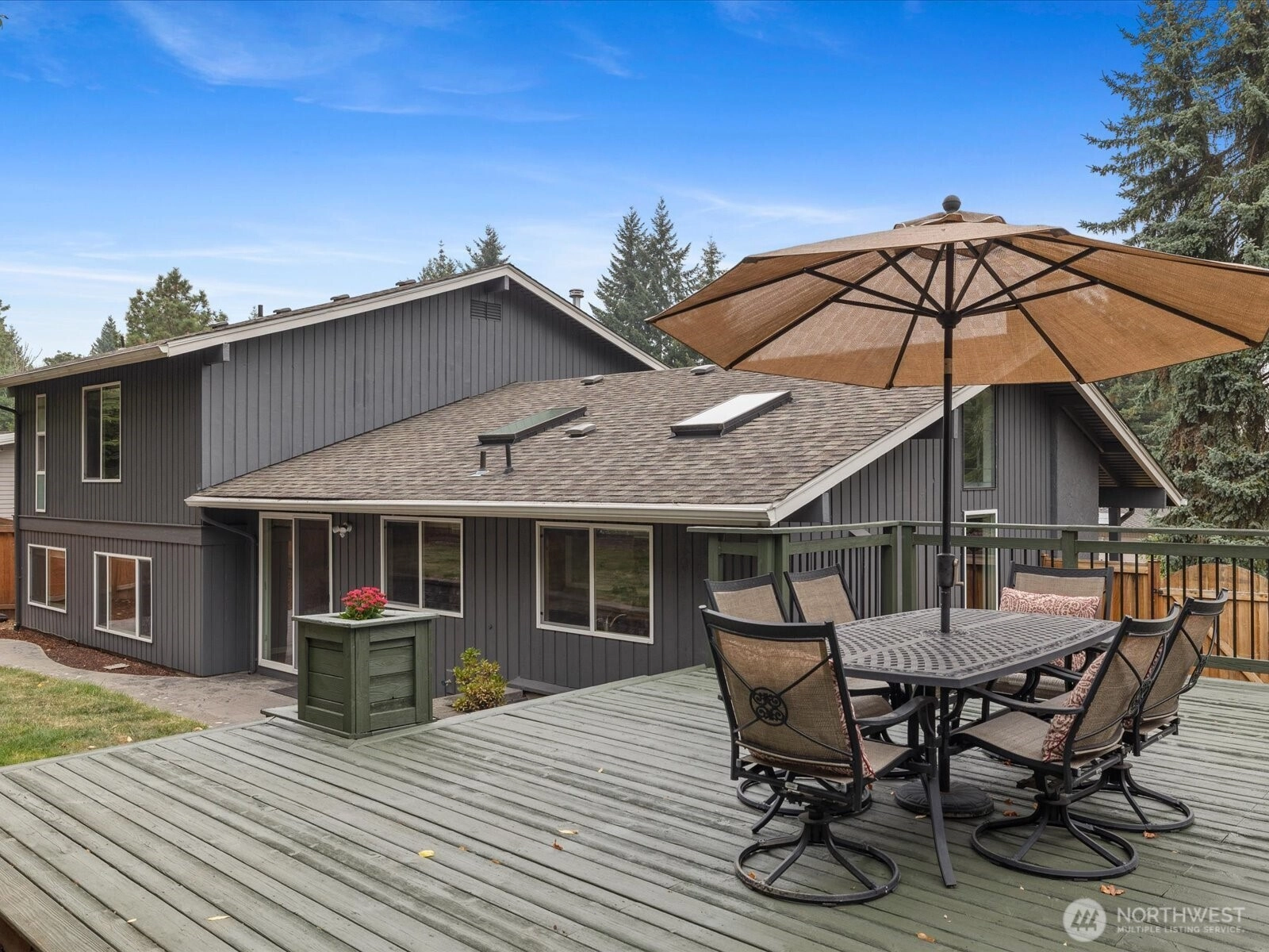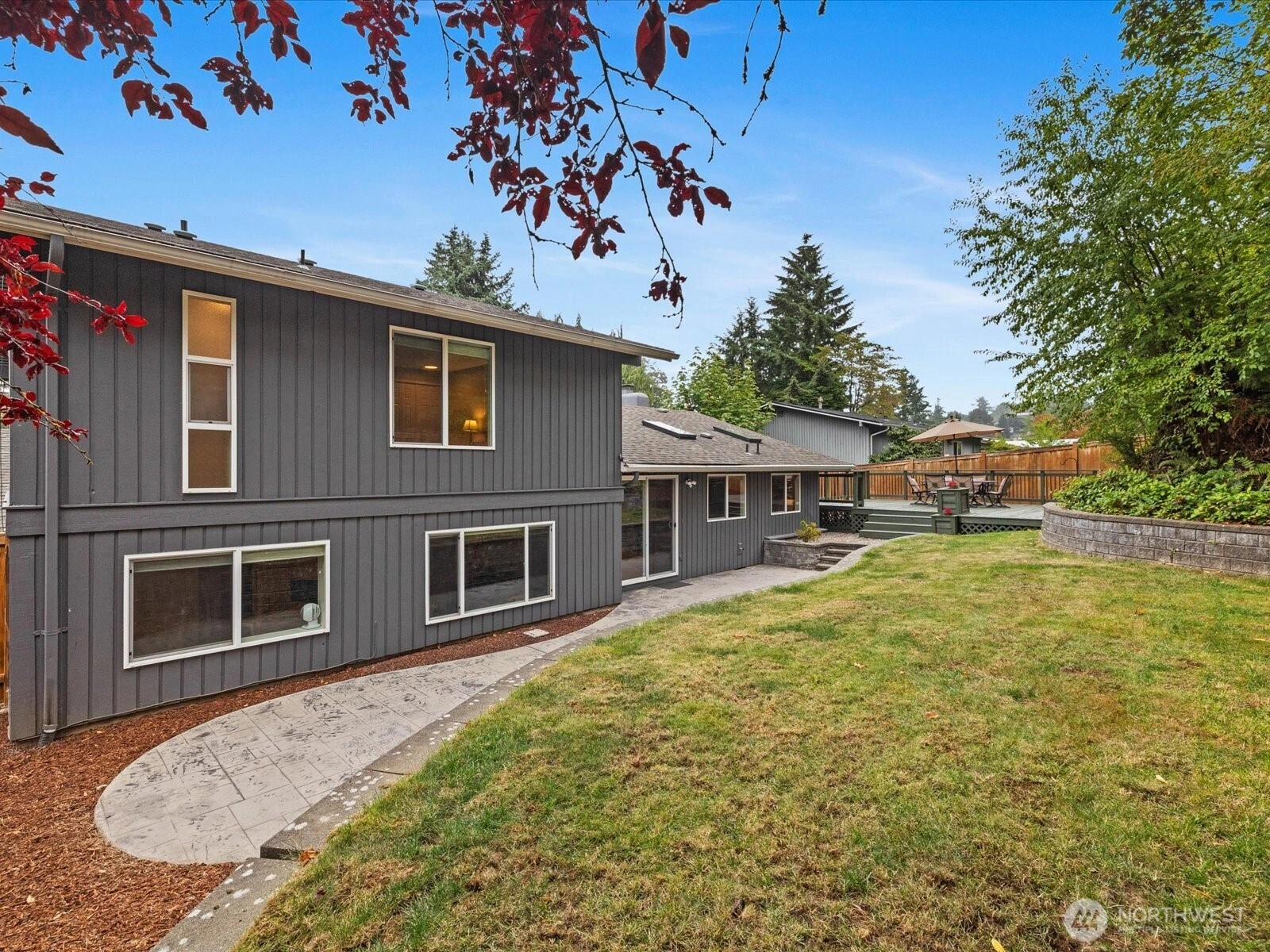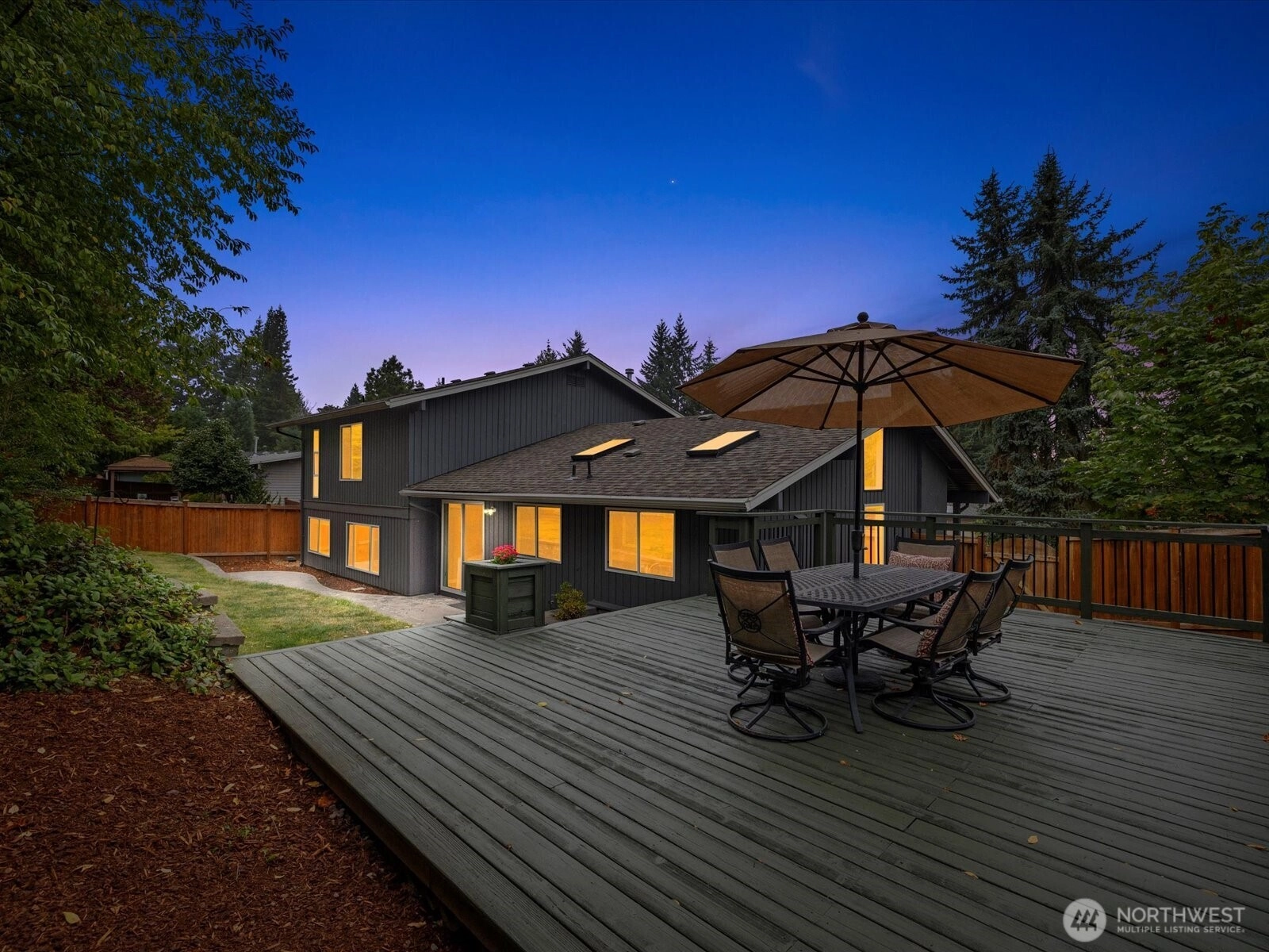 Wonderful Whispering Heights home in the award-winning Bellevue School District, centrally located to the I-90/405 freeways makes this an ideal location. Remodeled tri-level home is graced with hardwood floors, skylights & vaulted ceilings. Open floor plan includes inviting living room with extra-large windows to showcase the natural light. Gourmet kitchen offers granite counters, stainless appliances, & expansive center island. Three bedrooms upstairs finds primary w/stunning ensuite bathroom with heated floors, multi head shower & custom closet. Downstairs you'll discover a cozy family room, additional bedroom & 3/4 bath, ideal for guests. Central A/C. Enjoy the serene, private yard with stamped patio & deck perfect for entertaining!