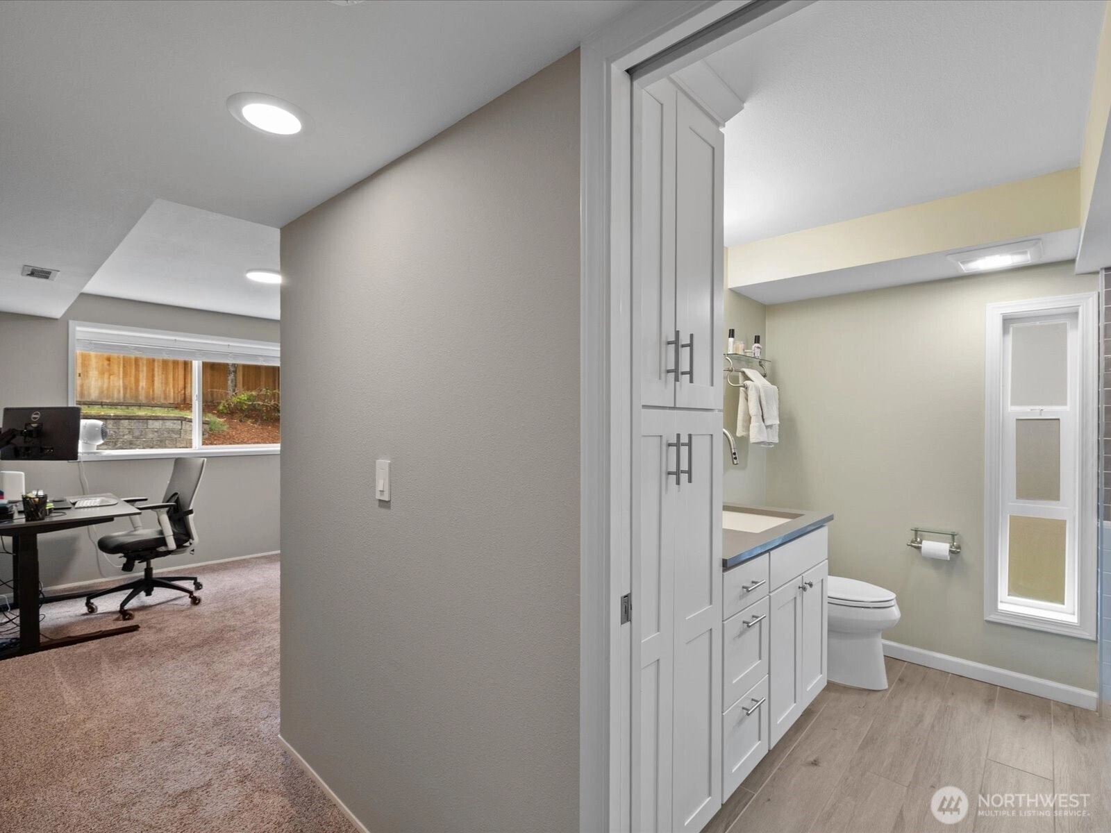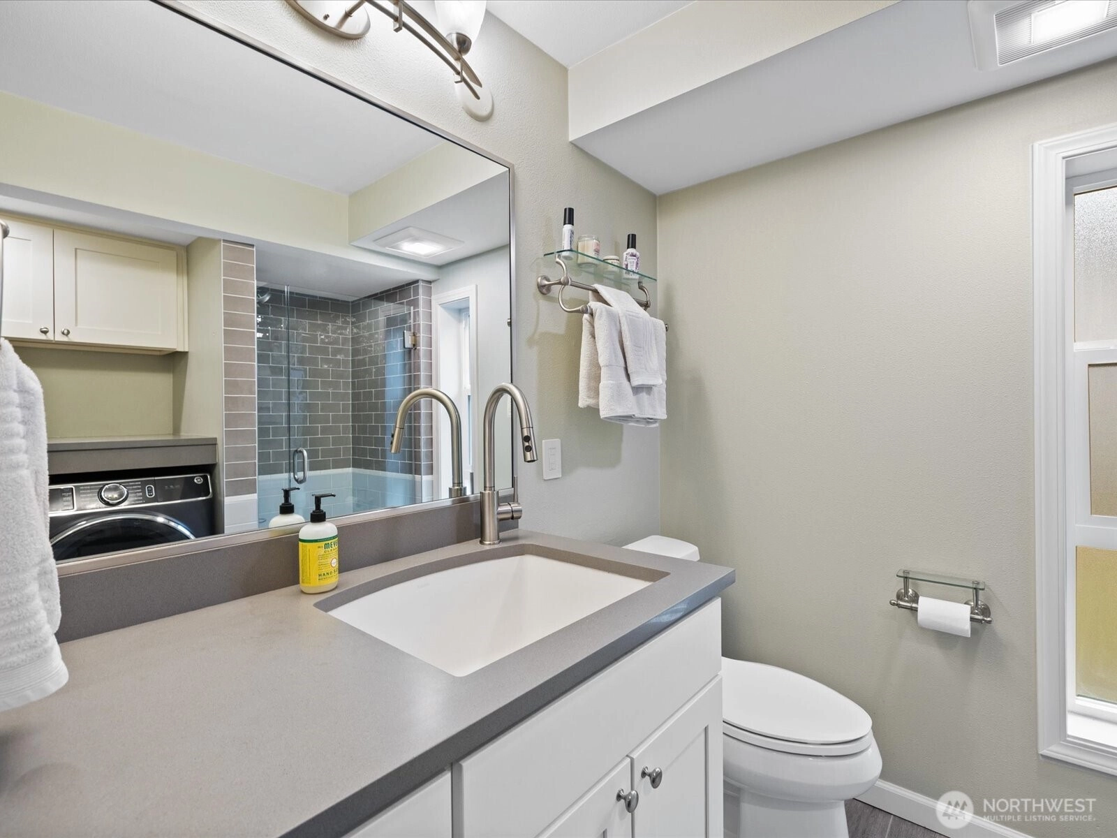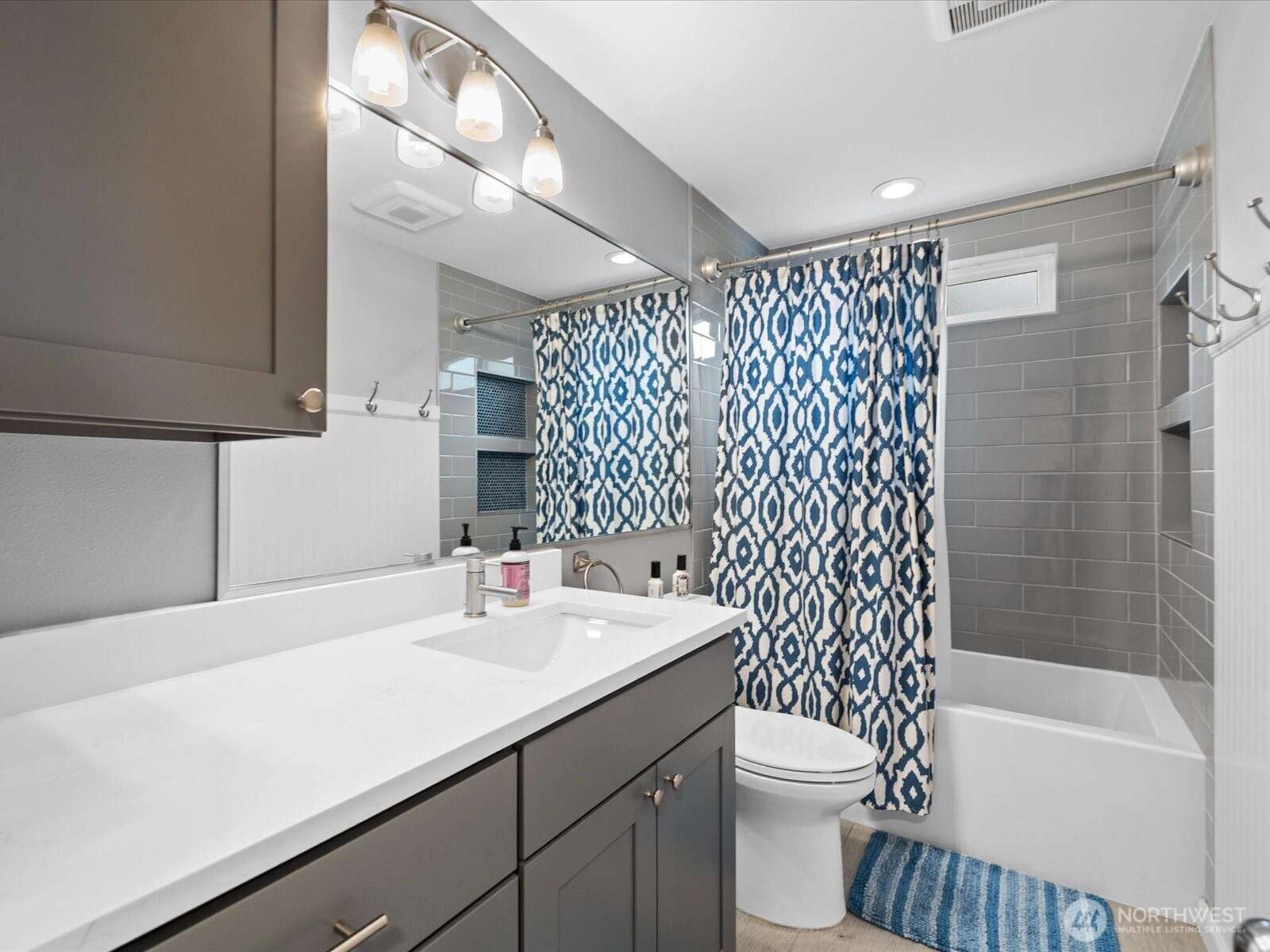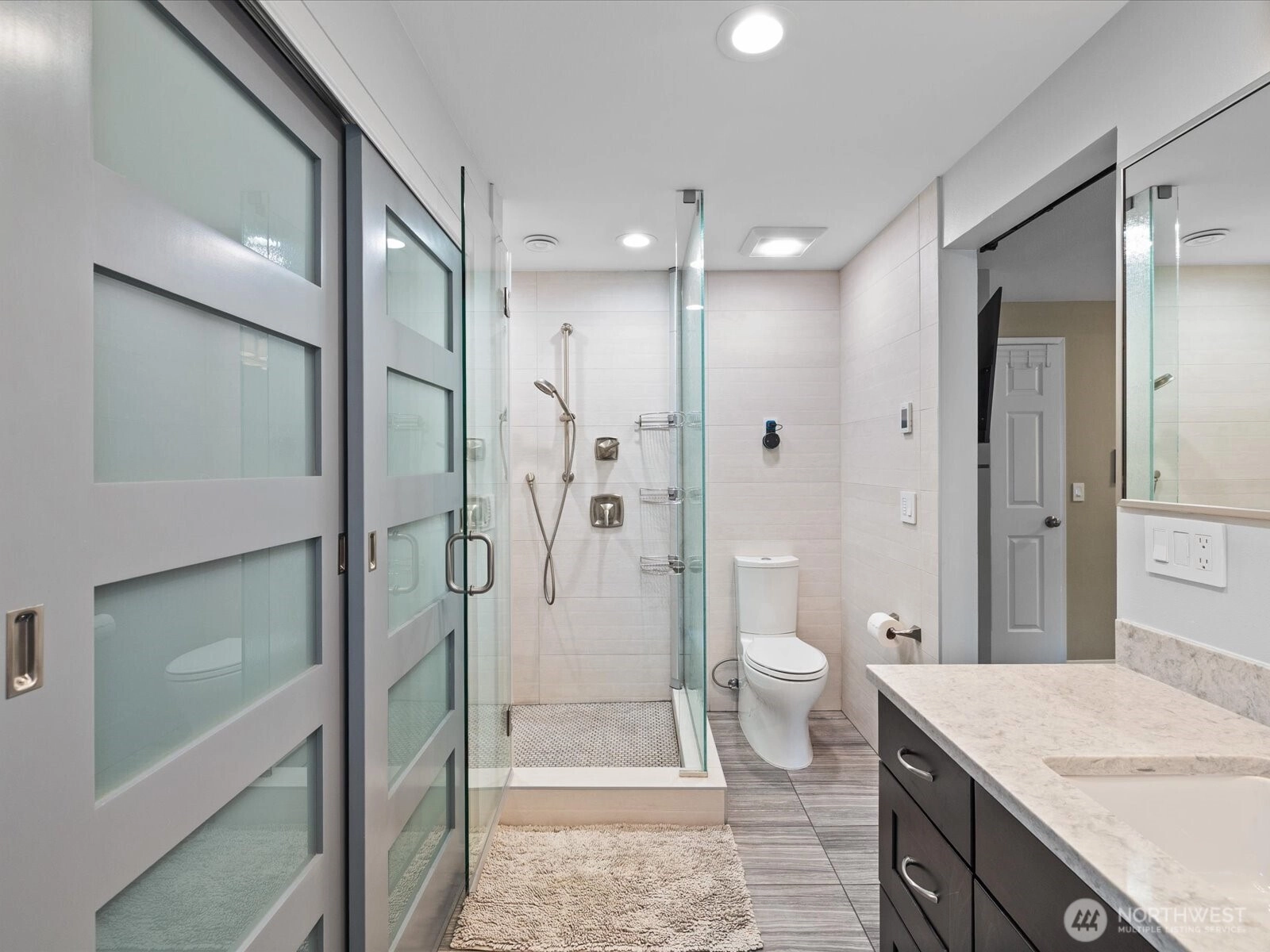 Wonderful Whispering Heights home in the award-winning Bellevue School District, centrally located to the I-90/405 freeways makes this an ideal location. Remodeled tri-level home is graced with hardwood floors, skylights & vaulted ceilings. Open floor plan includes inviting living room with extra-large windows to showcase the natural light. Gourmet kitchen offers granite counters, stainless appliances, & expansive center island. Three bedrooms upstairs finds primary w/stunning ensuite bathroom with heated floors, multi head shower & custom closet. Downstairs you'll discover a cozy family room, additional bedroom & 3/4 bath, ideal for guests. Central A/C. Enjoy the serene, private yard with stamped patio & deck perfect for entertaining!