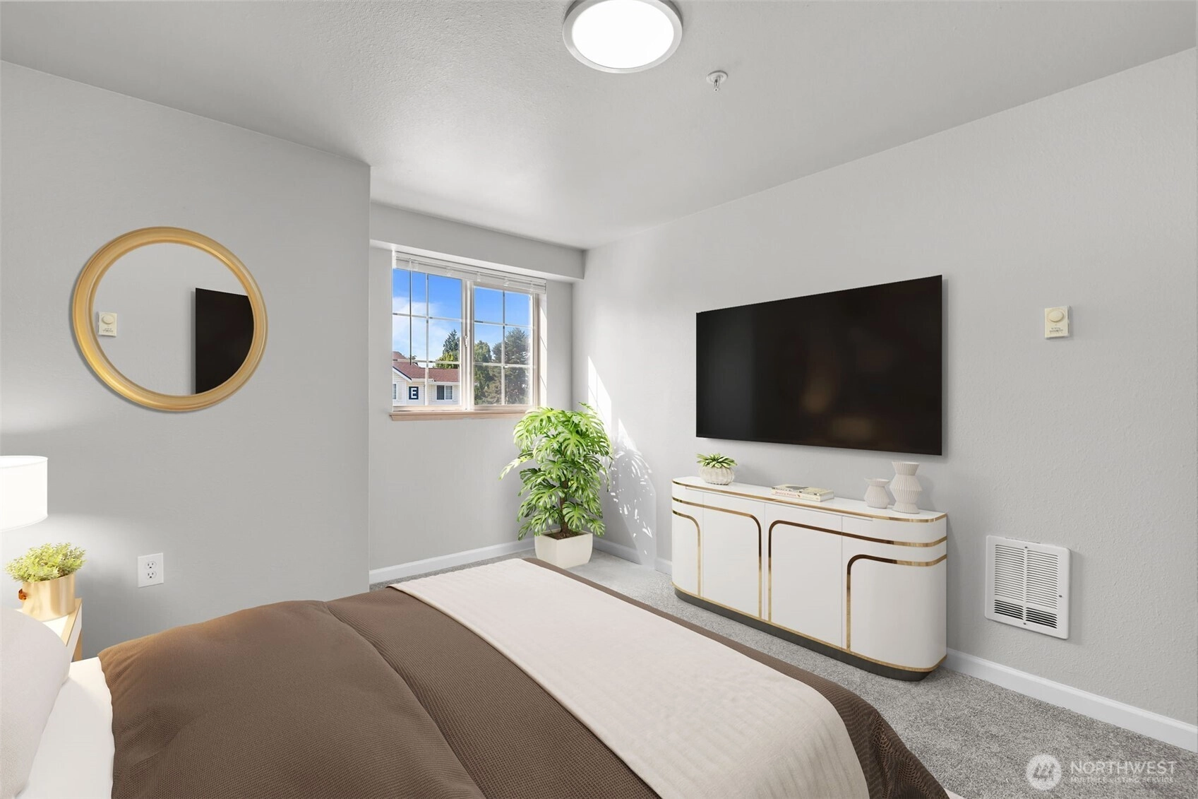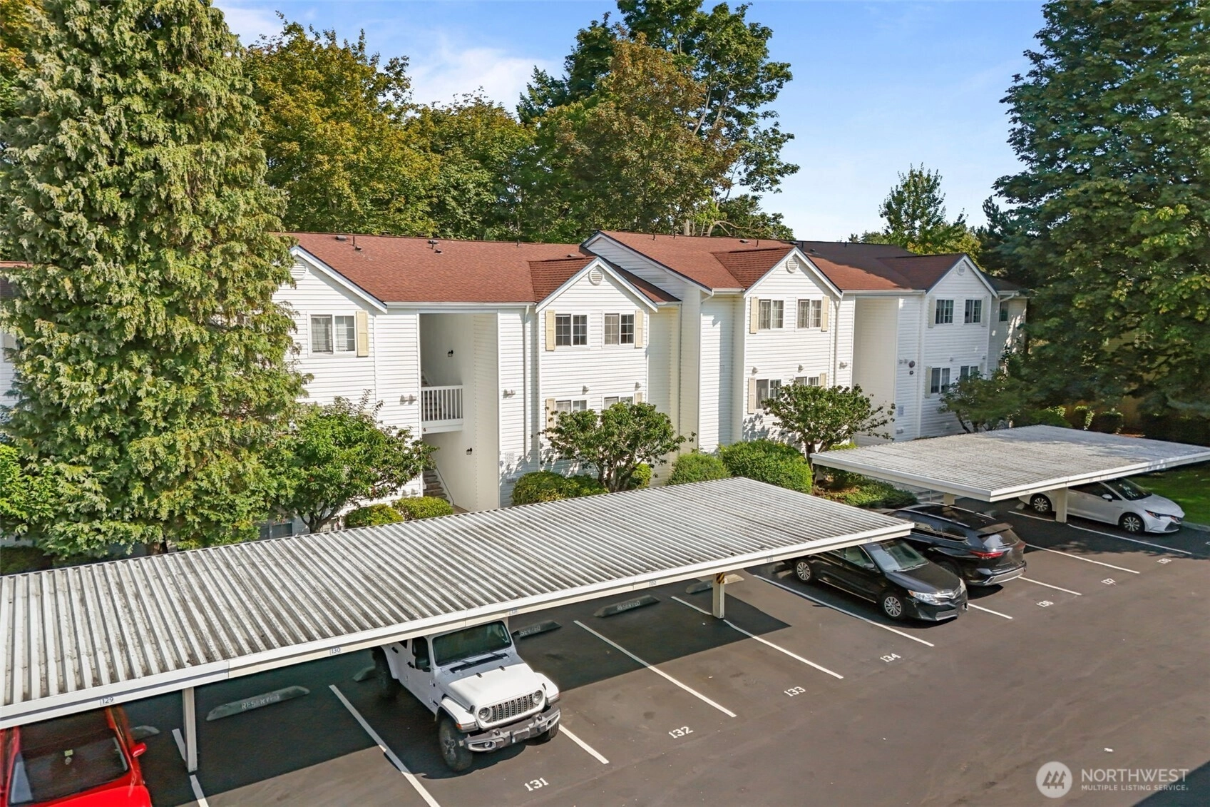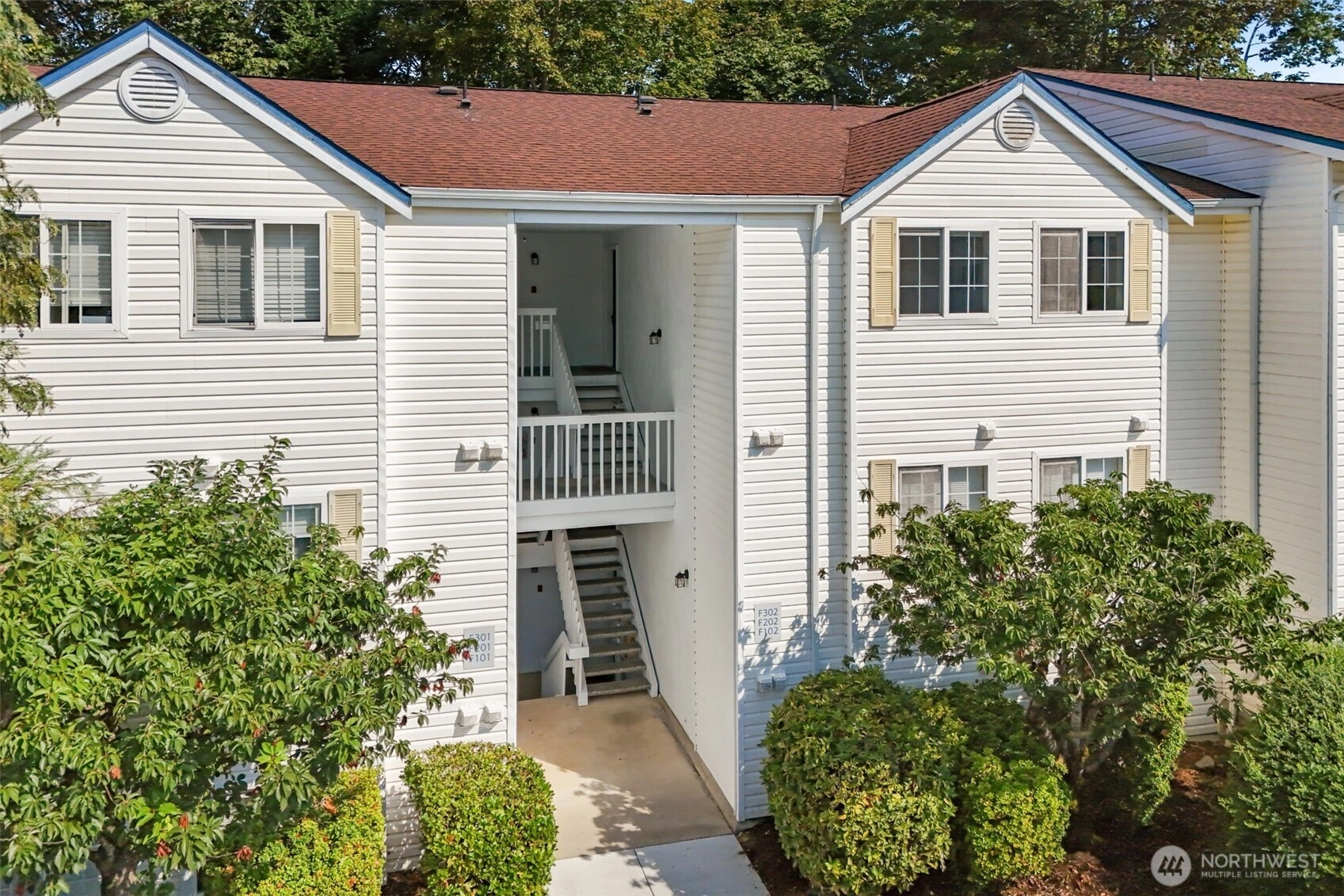 Welcome to this top-floor, end-unit 2 bed/2 bath condo in sought-after Huntington Heights. Freshly painted and filled with natural light, it features a spacious living room with cathedral ceilings, a cozy fireplace, and access to a private covered balcony with extra storage. Virtually staged - the primary bedroom includes a private en-suite, and dedicated covered parking is right out front. Enjoy community amenities like a clubhouse with fitness center, game room, and kitchen. Conveniently located near shops, restaurants, and just 15 minutes from the airport. Roof replaced in 2009, deck in 2014. HOA covers water, sewer, garbage, and cable.