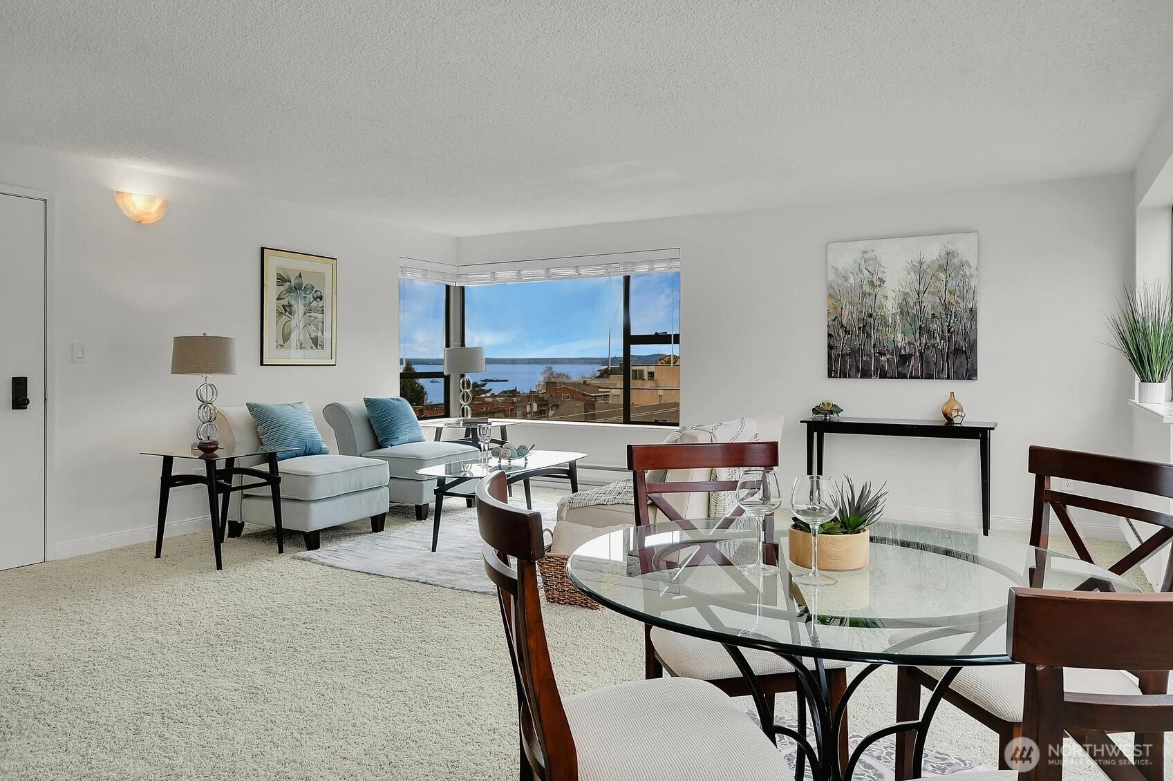 Top floor corner view unit with incredible natural light throughout! Enjoy amazing views of Elliott Bay, Puget Sound & beyond! Great 2 bedroom, 1.75 bath residence features new stainless steel appliances, new sinks/vanities in both bathrooms, tons of storage/closet space & fresh paint throughout! Small, quiet building with a lovely common area yard. Professionally managed! Great HOA! Convenient to transportation, shopping, restaurants! 4 guest parking spaces are available. 1 storage space plus 1 deeded parking space are also included.