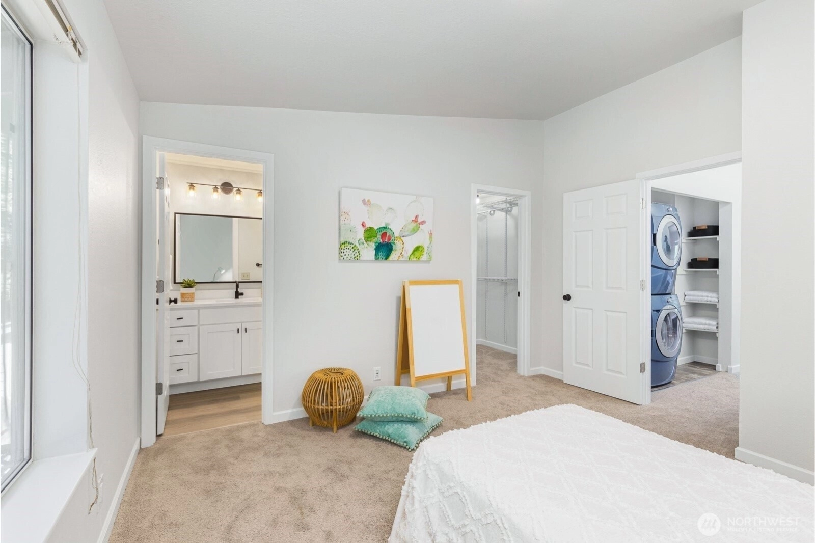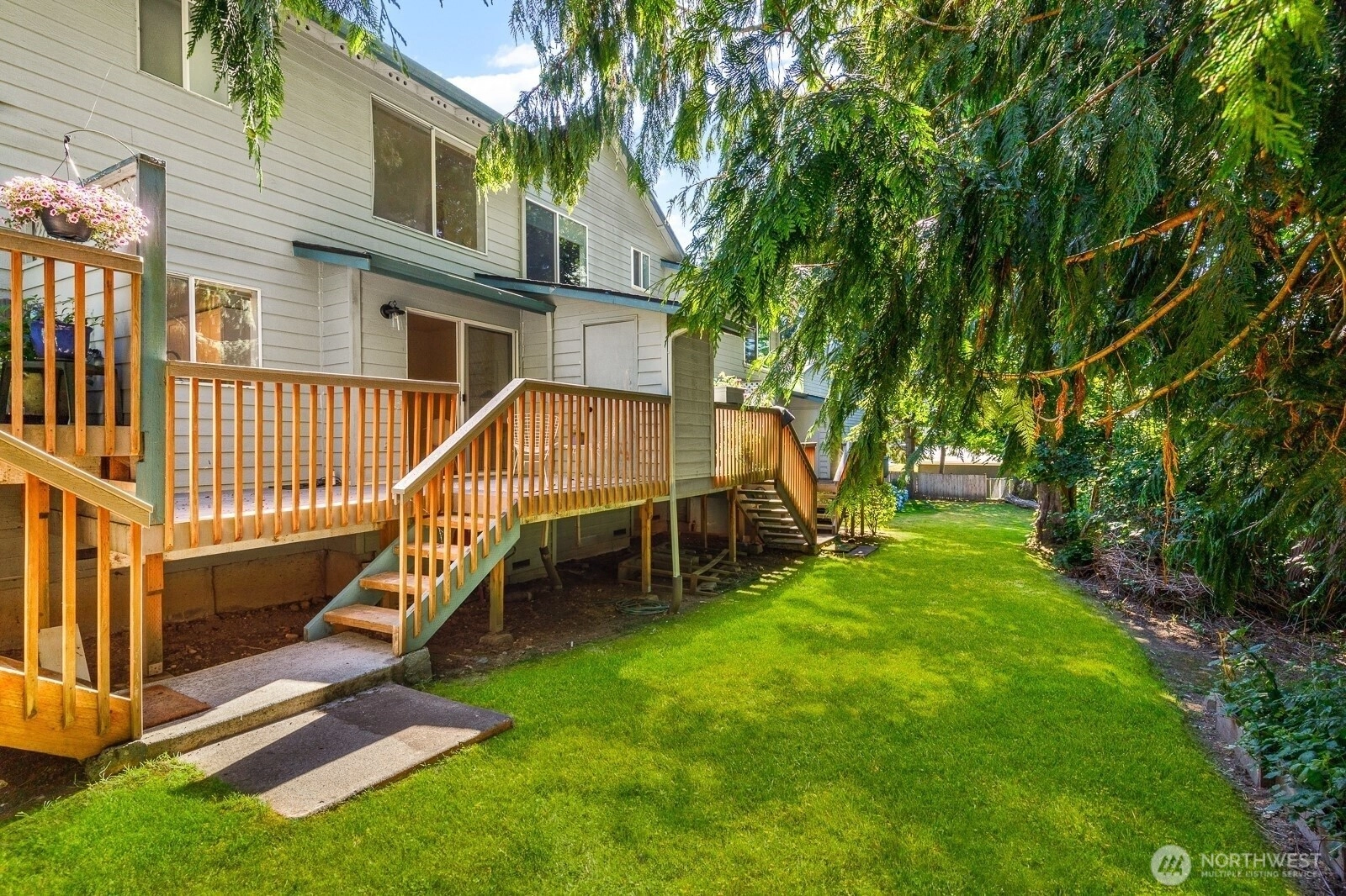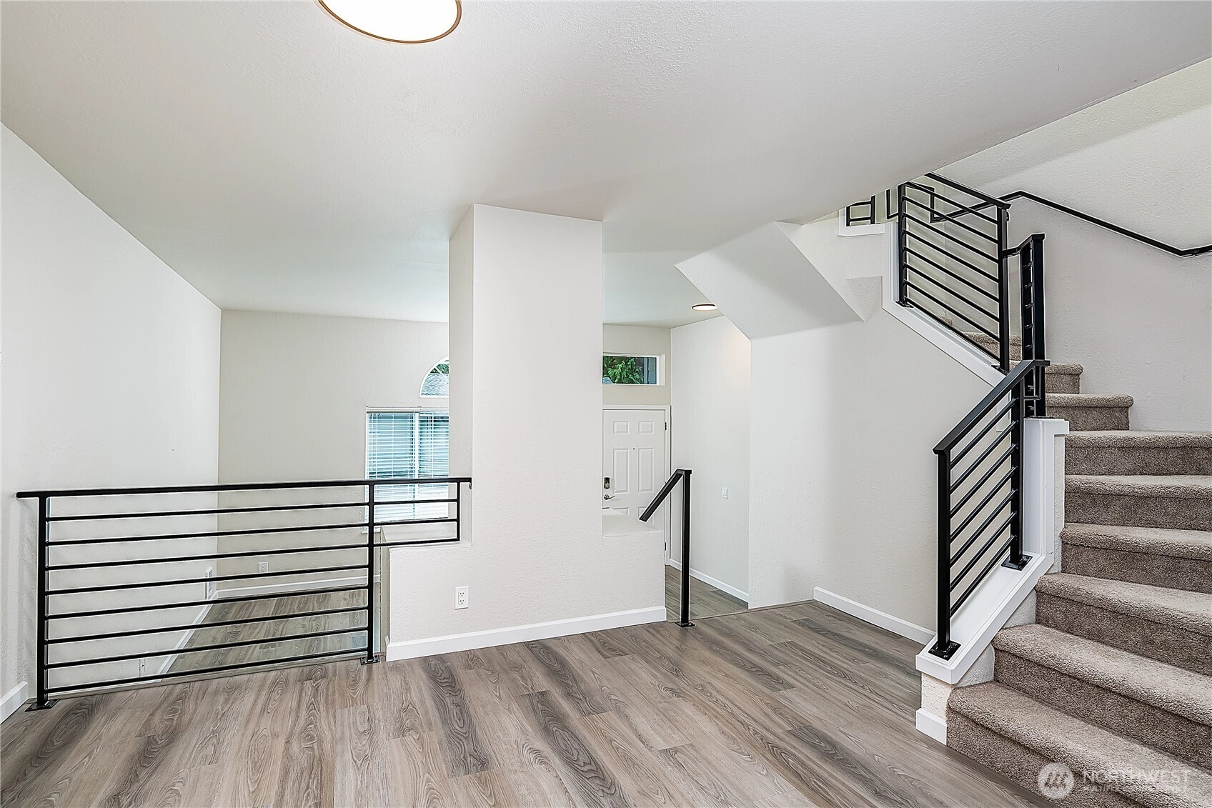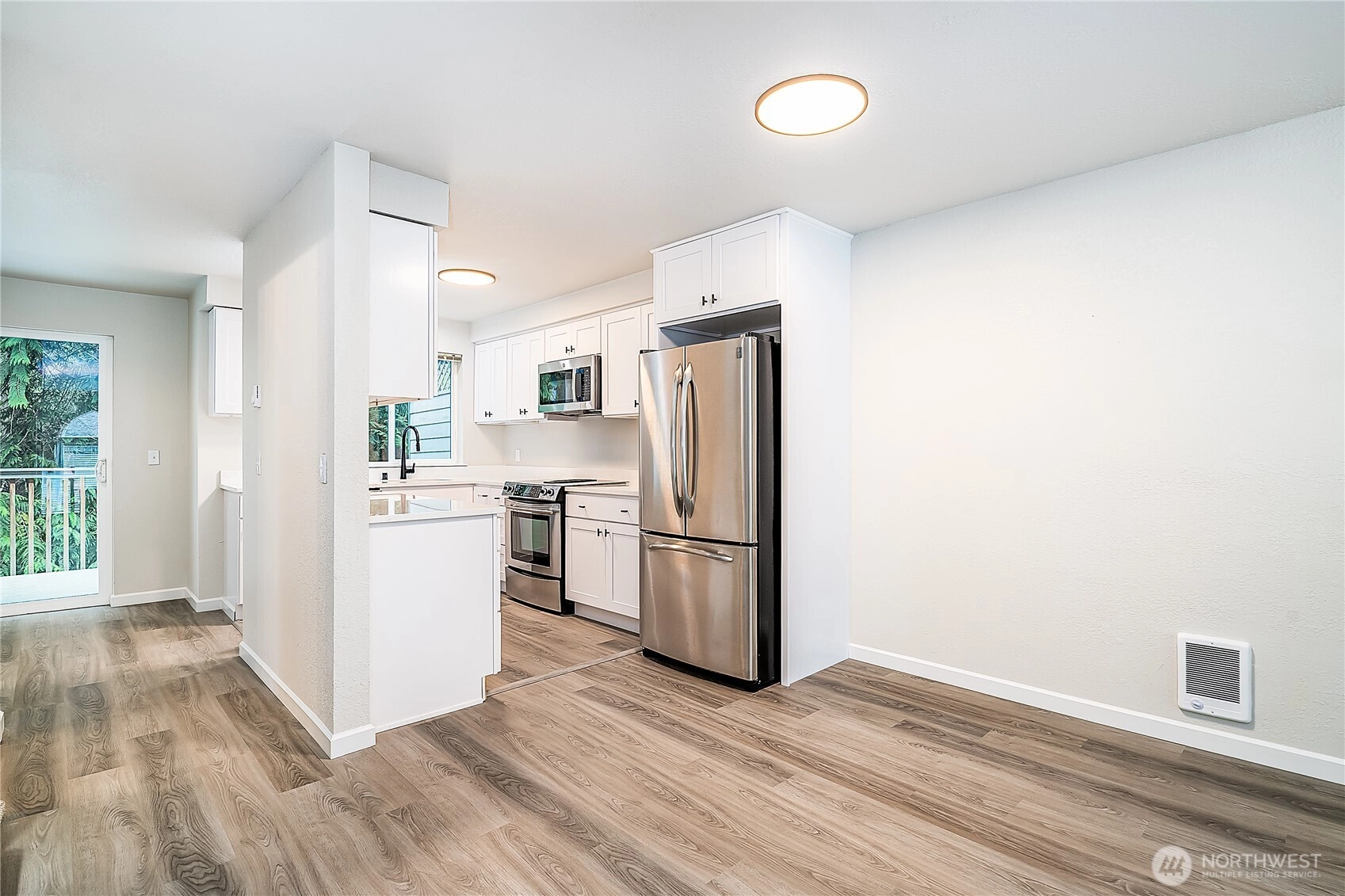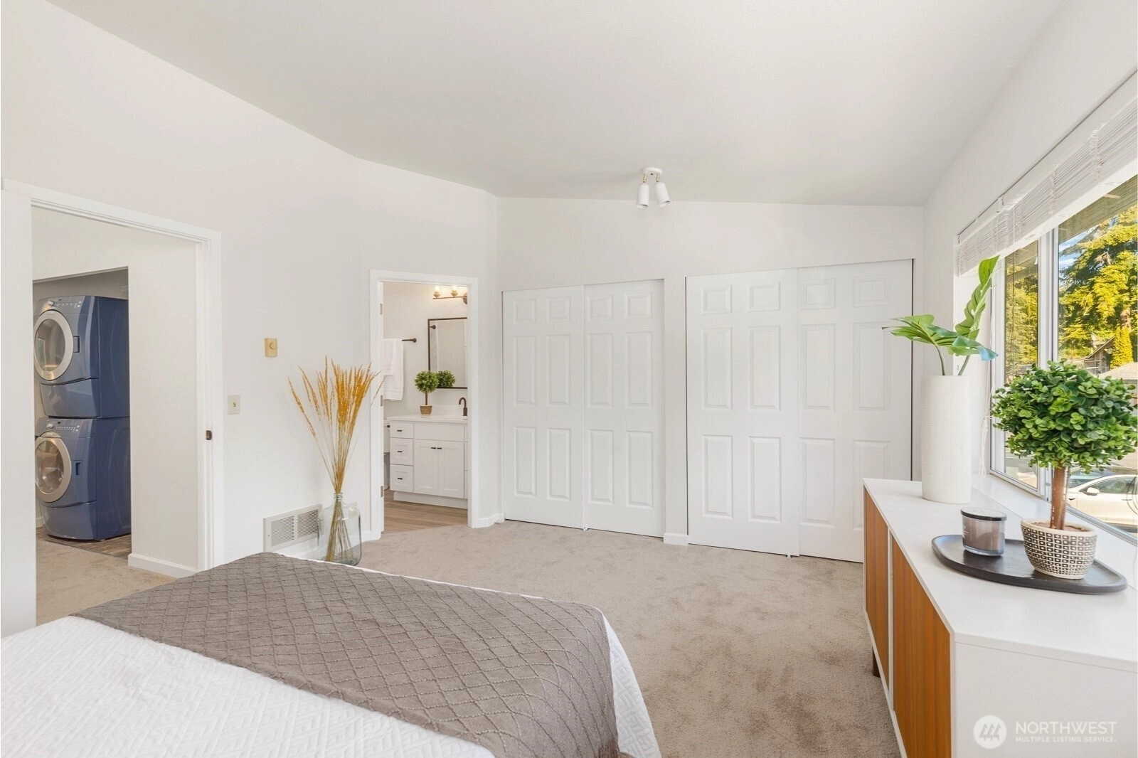 Fully remodeled Mukilteo townhome in a quiet community minutes to beach, trails, coffee and more! Thoughtful updates: matte-black accents, quartz counters, designer lighting, LVP and custom metal railings. Soaring 10-ft entry opens to a bright living room w/ wood-burning fireplace. Dining flows to a dream kitchen with SS appl, statement tile and an office/den alcove plus a 1/2 bath. Upstairs: 2 spacious ensuite bedrooms with generous closets (2.5 baths total). Full-size laundry, newer water heater, detached garage + off-street parking + storage. Private deck backs to a serene greenbelt on a quiet dead-end street. Near Mukilteo Beach, parks, train station, bus lines & fast freeway access. Modern design and everyday ease in a prime location!