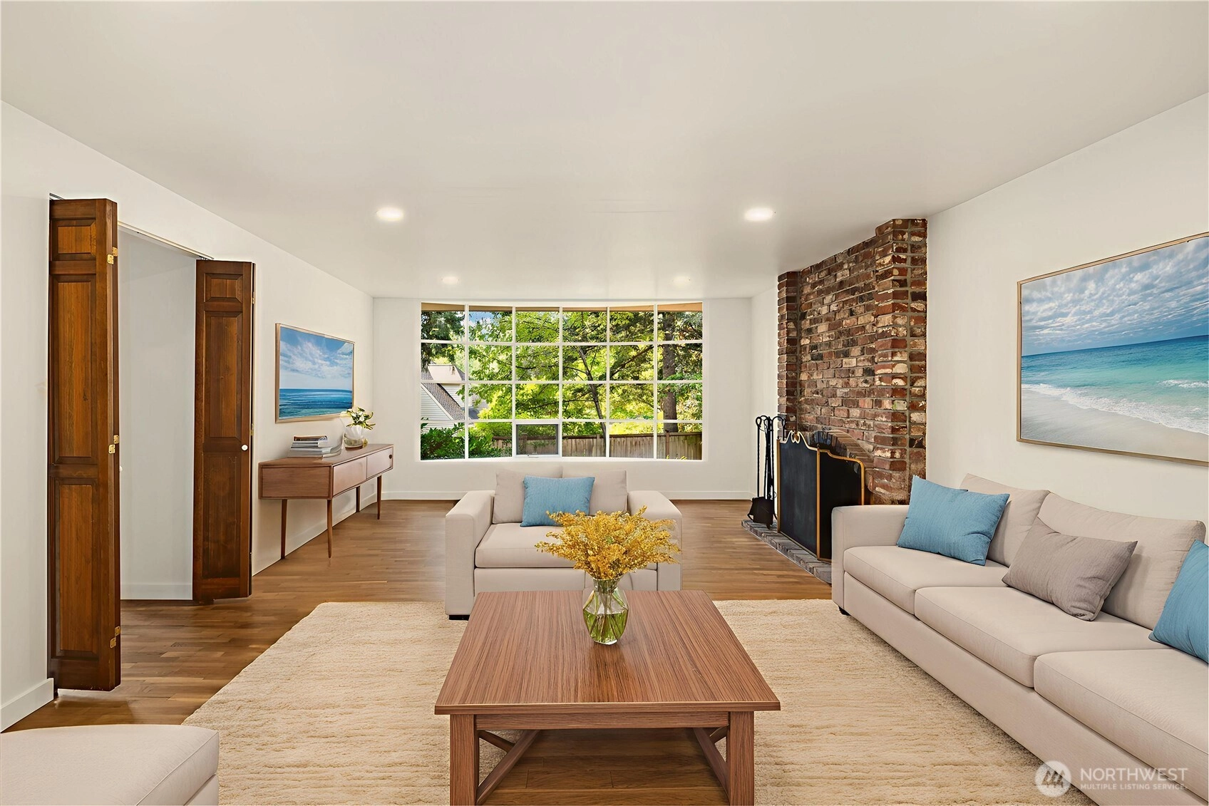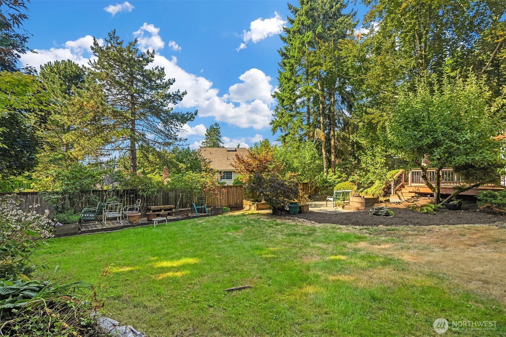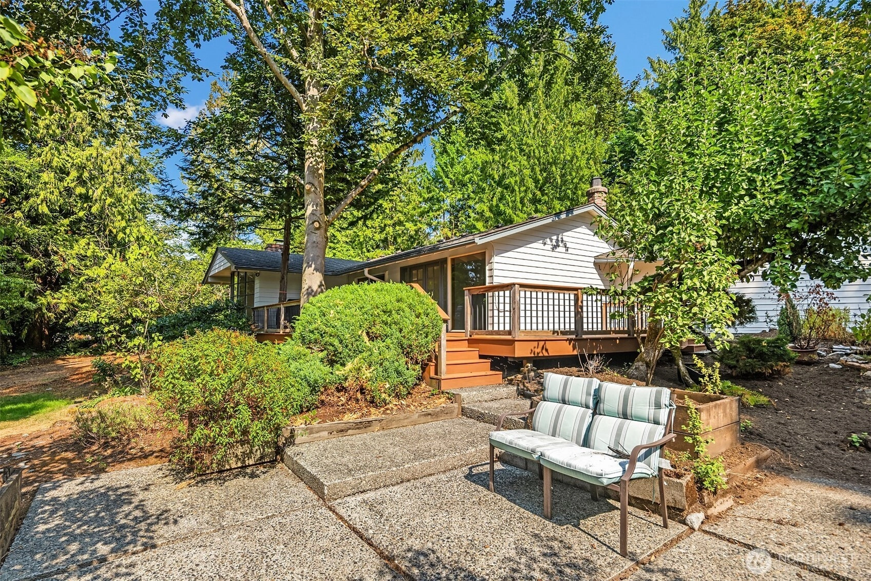 Clyde Hill Cul-de-Sac Rambler on large 19,552 sq ft, private lot. Lots of potential w/this classic-style, sprawling 4 bed/3 bath 1-story home that includes 2 living areas w/custom brick fireplaces. It's awaiting your finishing touches after recent renovations—full int/ext paint, refinished original oak hardwood floors, LED lighting, insulation in attic/crawlspace & vapor barrier. Lots of possibilities—Remodel & open up the floor plan, build your dream home or add an ADU! Extensive wrap-around TREX deck overlooking sunny, west-facing vast yard w/raised garden beds. Oversized 2-car garage. Bellevue School District. Convenient, yet quiet location w/easy access to 520, Lake Washington & Seattle. Inspected for your confidence. Welcome home.