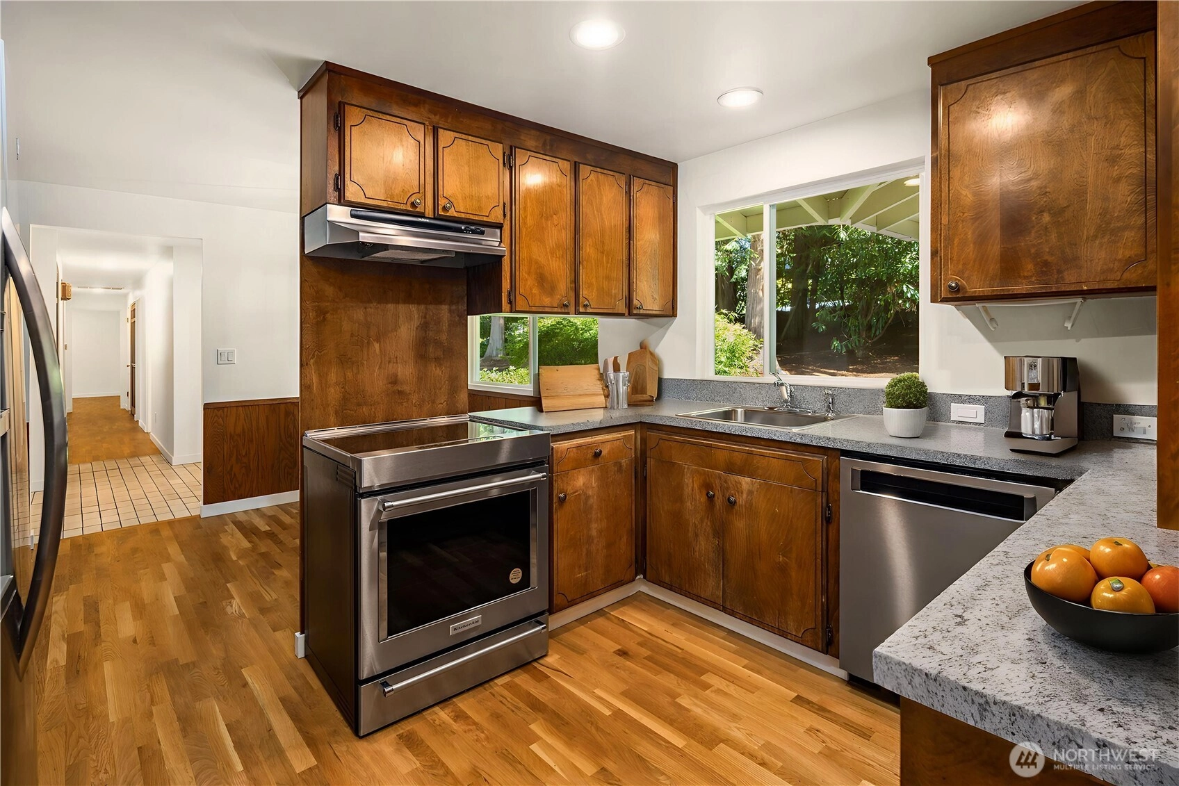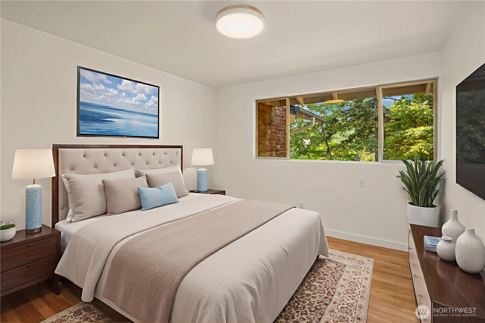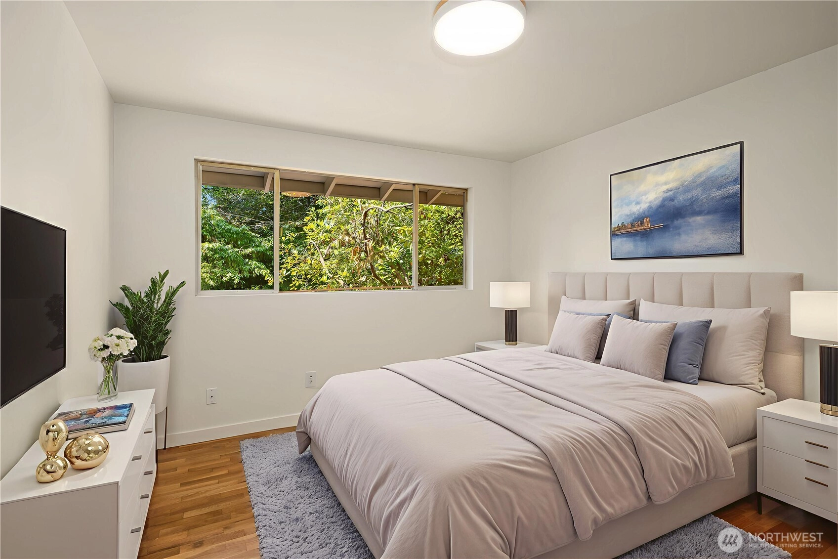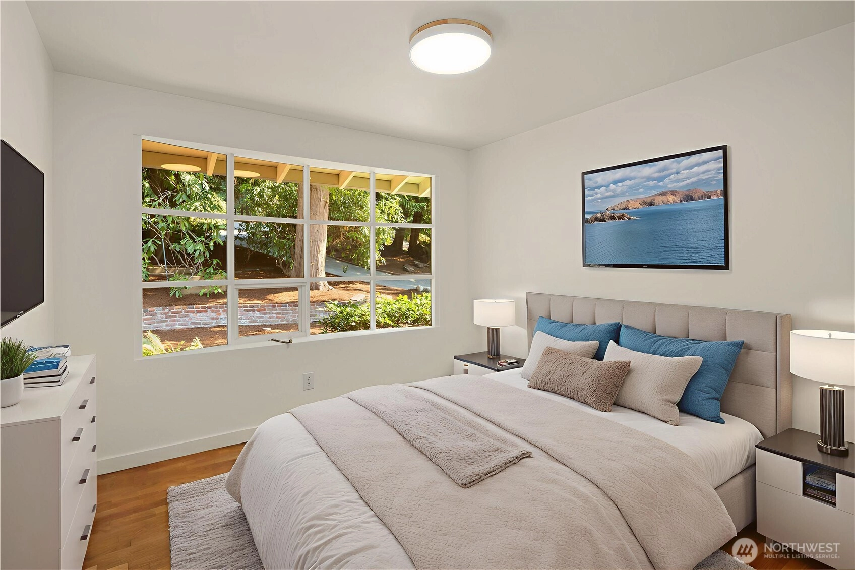 Clyde Hill Cul-de-Sac Rambler on large 19,552 sq ft, private lot. Lots of potential w/this classic-style, sprawling 4 bed/3 bath 1-story home that includes 2 living areas w/custom brick fireplaces. It's awaiting your finishing touches after recent renovations—full int/ext paint, refinished original oak hardwood floors, LED lighting, insulation in attic/crawlspace & vapor barrier. Lots of possibilities—Remodel & open up the floor plan, build your dream home or add an ADU! Extensive wrap-around TREX deck overlooking sunny, west-facing vast yard w/raised garden beds. Oversized 2-car garage. Bellevue School District. Convenient, yet quiet location w/easy access to 520, Lake Washington & Seattle. Inspected for your confidence. Welcome home.