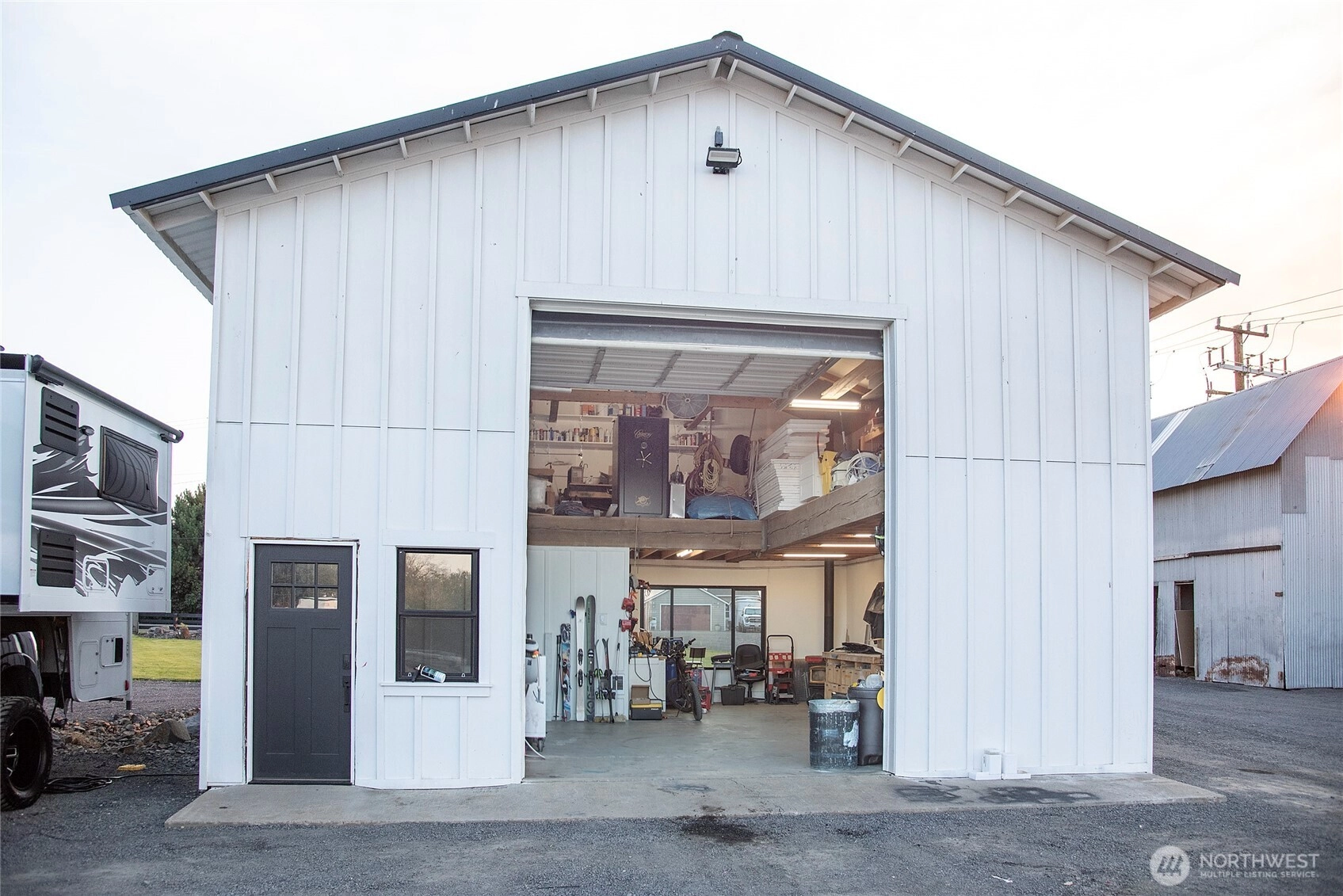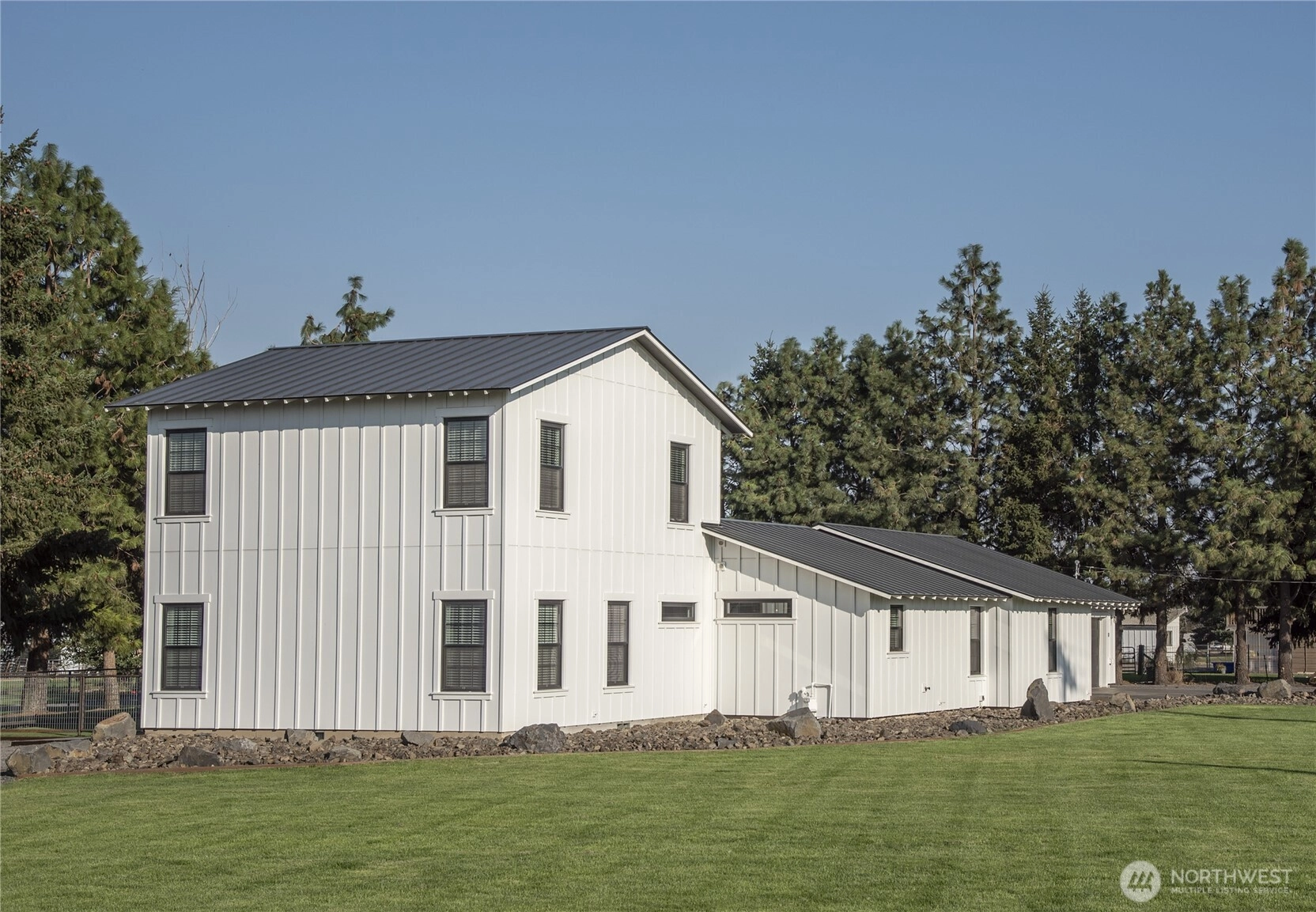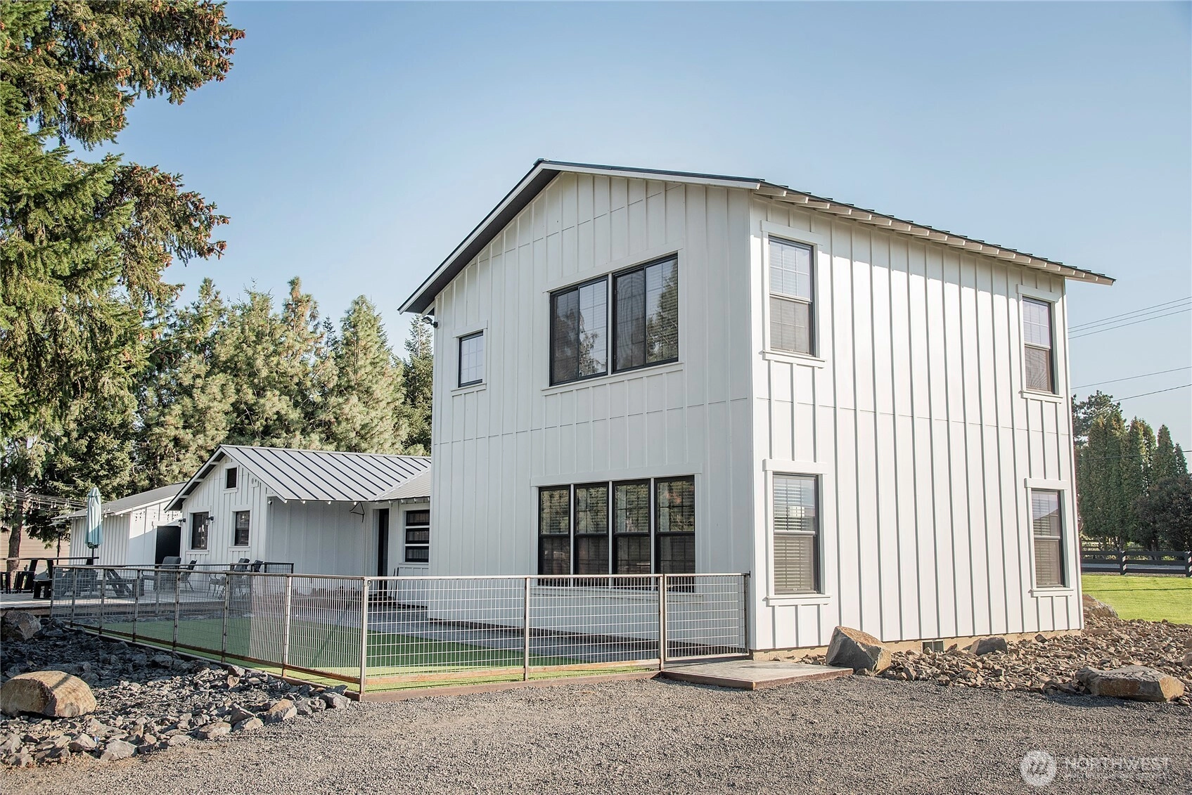 One of a kind, 2,934 sqft custom built home, completely remodeled with addition. The pristine black & white interior with custom metal work & rough sawn shelves, handles, nooks & stairway enhance the home. Kitchen has built in dining, beautiful tile bathrooms, many windows for natural lighting, vinyl plank floors, multiple walk-in closets, office nook, large primary bedroom & bonus room upstairs for extra entertainment space. enjoy the 2.5 acre property w/ large stamped concrete patio space, silo grain bar/ outdoor kitchen. Several outbuildings, including a 30x30 shop w/ office space. Dog run & bike shed. This home was designed to be low maintenance. You need to see all the custom features to appreciate all the house has to offer.