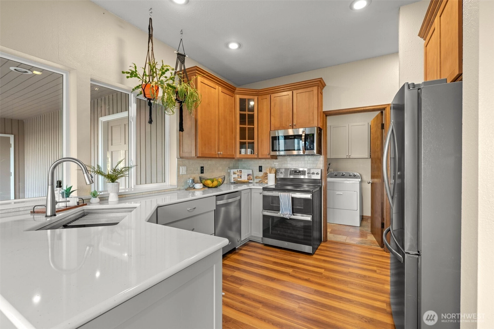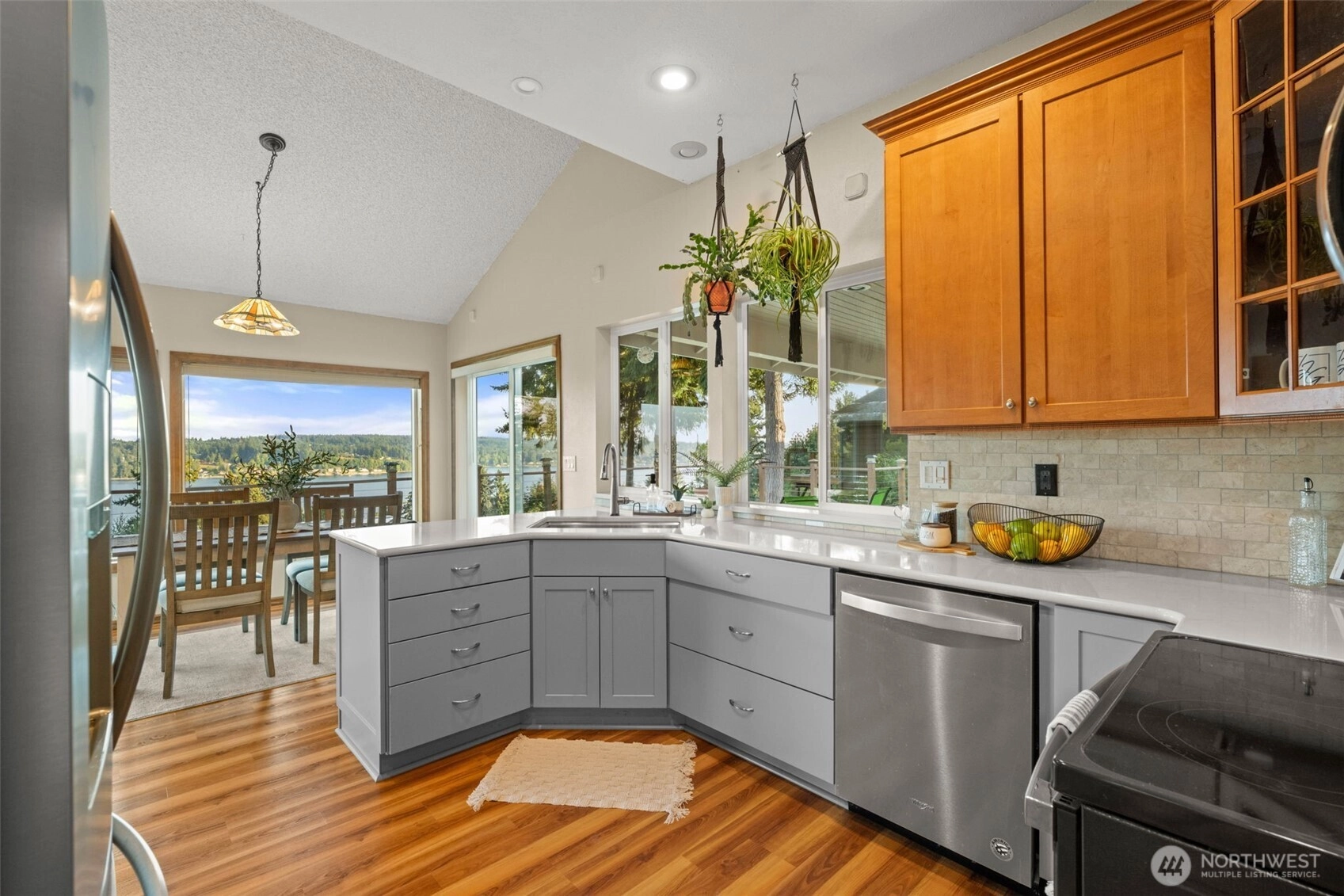 Enjoy the best of Gig Harbor living with sweeping views & thoughtful updates throughout this 3-bedroom home. The remodeled kitchen is designed for both everyday living & entertaining, while the fresh exterior paint and a newer roof provide peace of mind. The main-level primary suite offers comfort & convenience, & outside you’ll find a detached studio, ideal for art projects, a home office, or creative space, plus another flexible work area for your lifestyle needs. On the lower level, the views continue offering a 2nd living space option, complete with a wet bar, making the possibilities endless! An inviting design, modern updates, and captivating views make this home a Northwest gem. Located just over the Purdy Bridge - you'll love it!