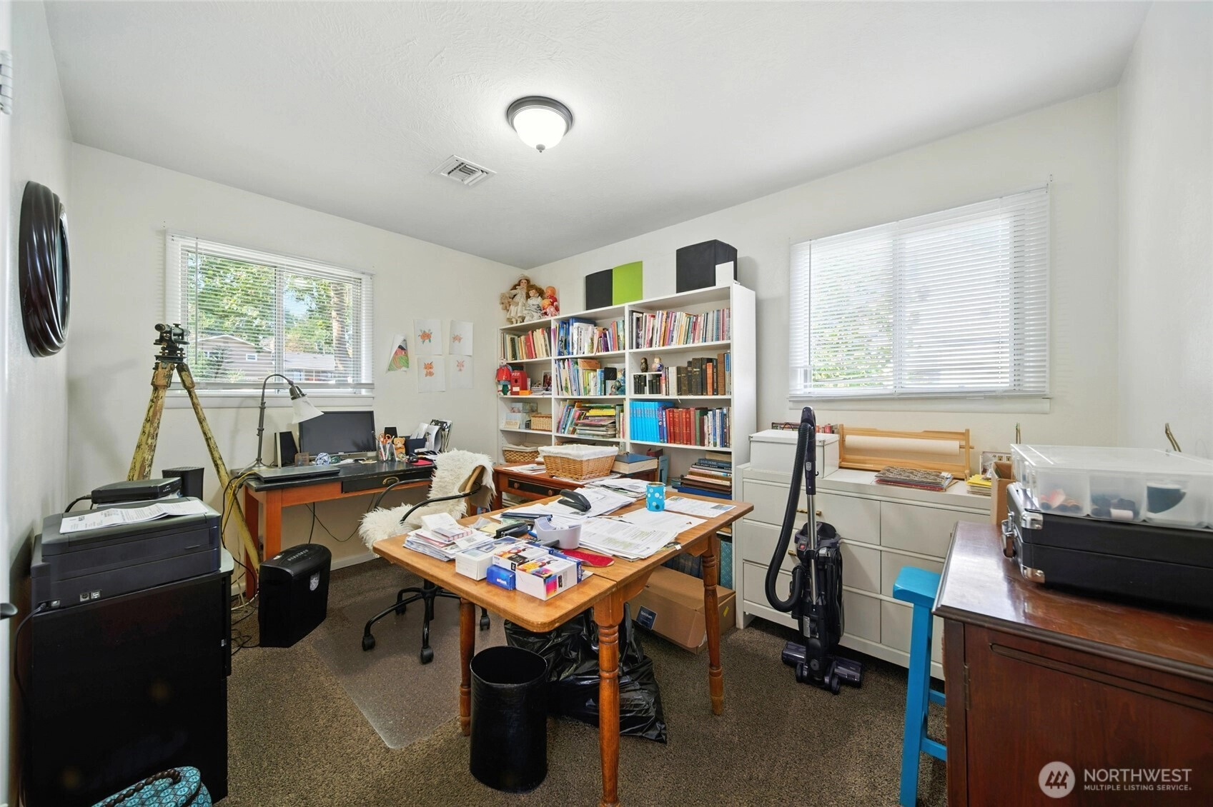 This great home on the south hill is perfect for multi-generational living or anyone needing extra space. The main level contains two bedrooms, a full bath and laundry as well as living room with wood- burning fireplace , kitchen and access to to large deck which overlooks the lot and the city to the mountains. In the basement you'll find two additional bedrooms, another full bath a large family room with a fireplace and access to the covered patio and backyard. With over 1/3 acre, the lot is large enough for gardening, entertaining and play.