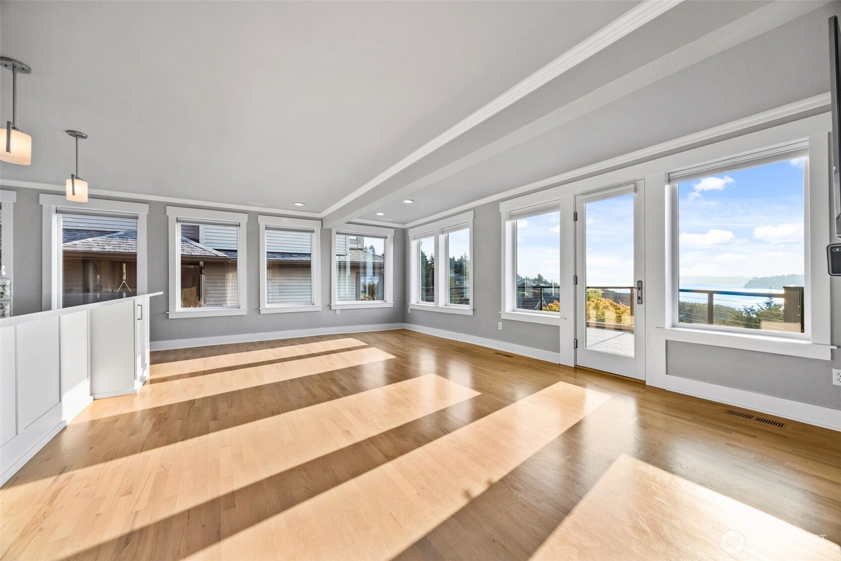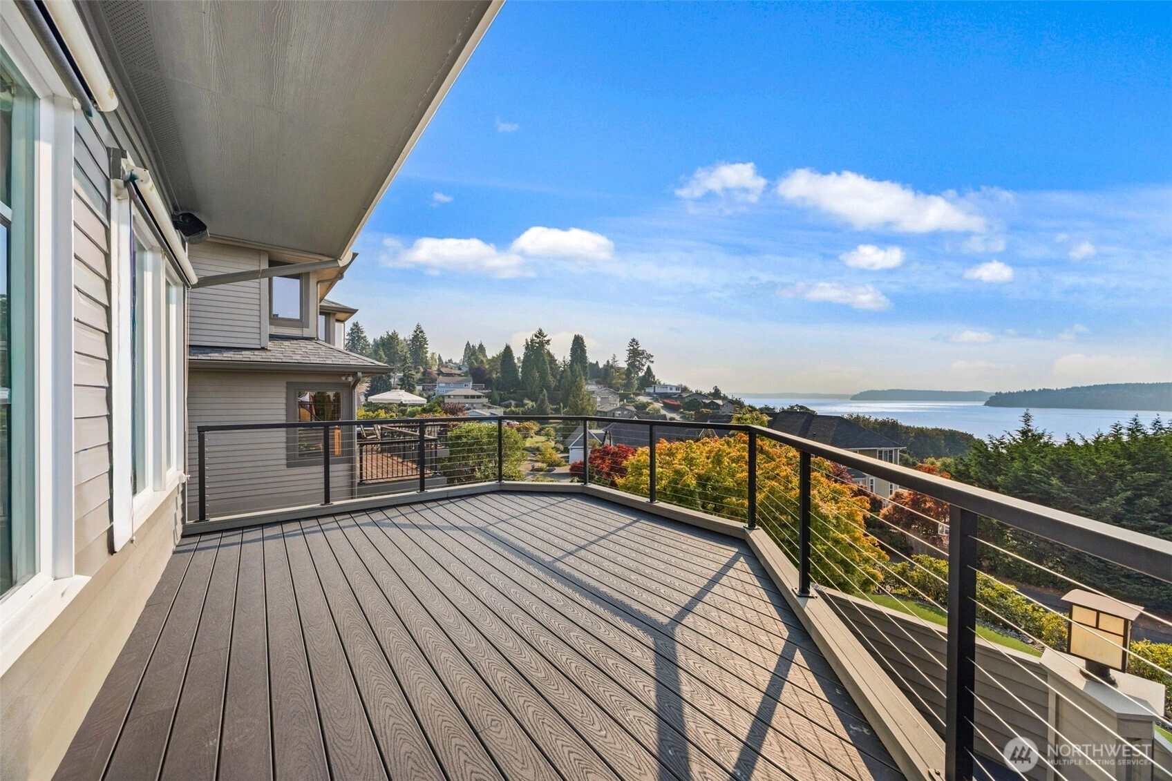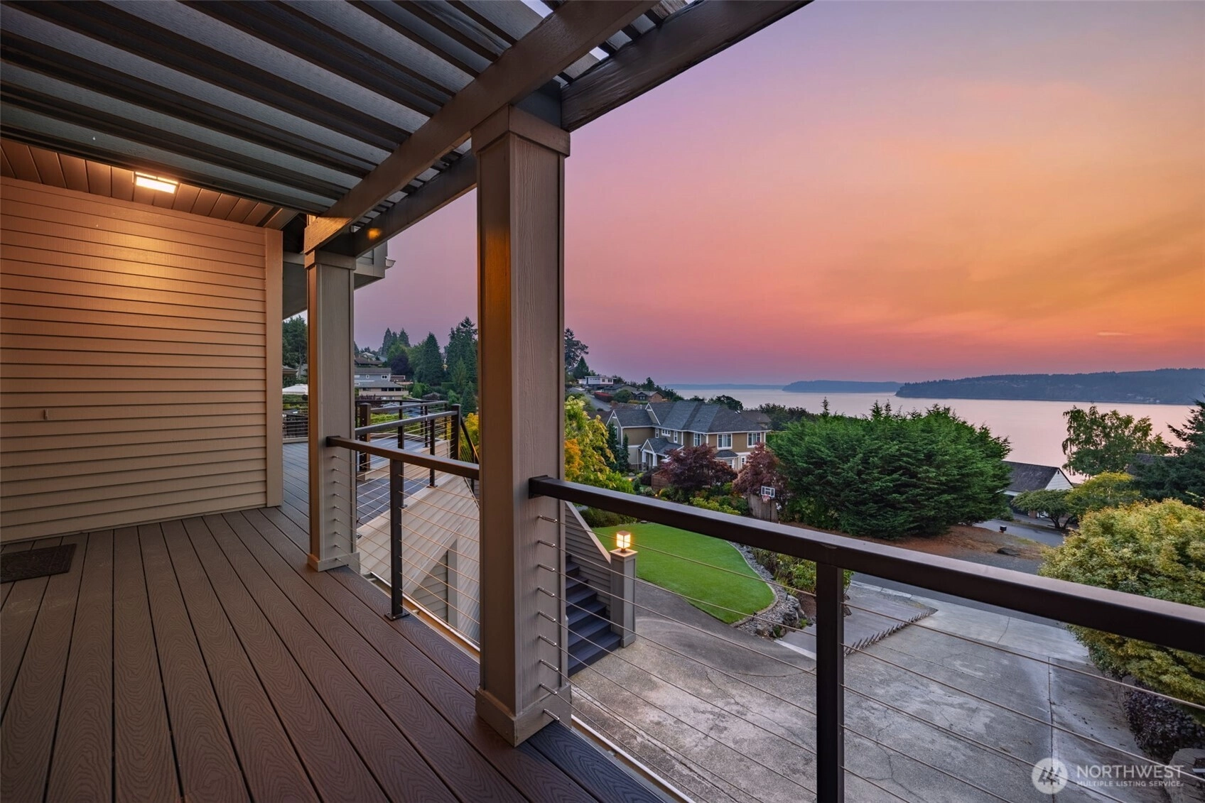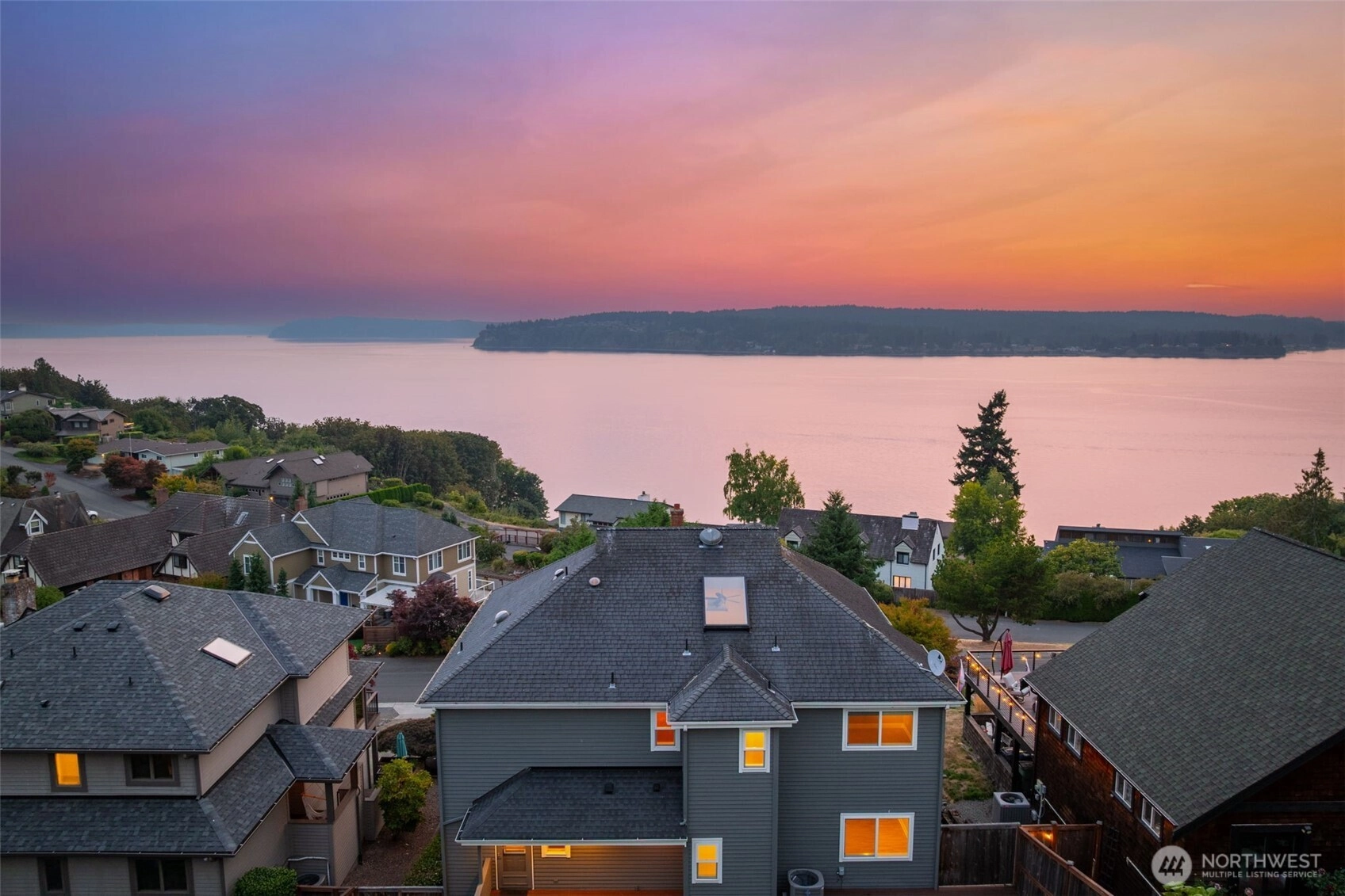 Perched above the Puget Sound, this remarkable University Place home offers sweeping, unobstructed views allowing for perfect sunsets over the water. Inside, natural light floods through walls of windows, highlighting real wood floors & an open layout. The updated kitchen shines w/ new cabinets, quartz, stainless appliances & a spacious island that anchors the great room. Glass doors lead to multiple decks & a large balcony where indoor/outdoor living connect seamlessly. The backyard is equally inviting w/ tiered landscaping, turf & a generous deck perfect for gathering. Downstairs presents an opportunity for an ADU or additional bonus room, creating flexibility for extended living or rental income. UP schools & restaurants close by!