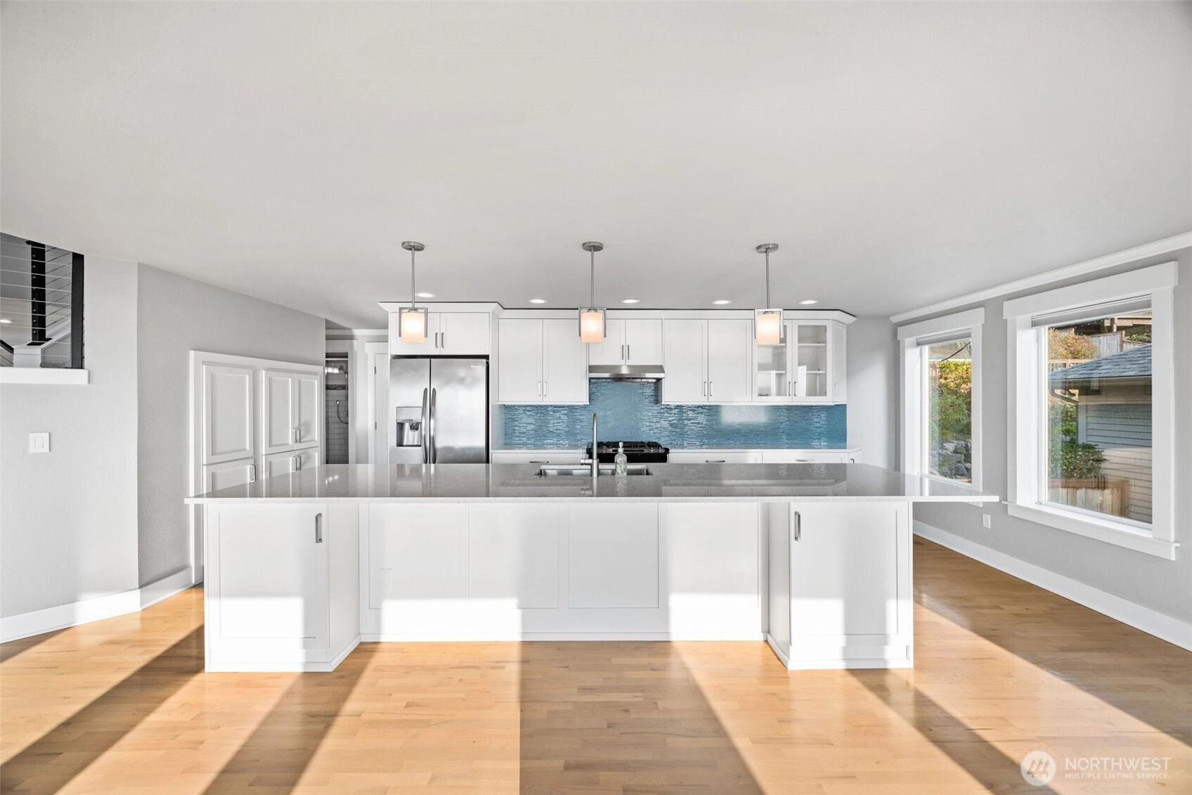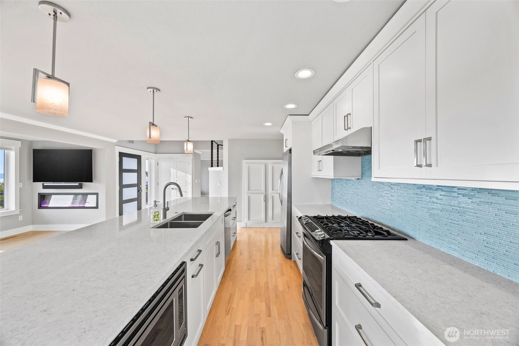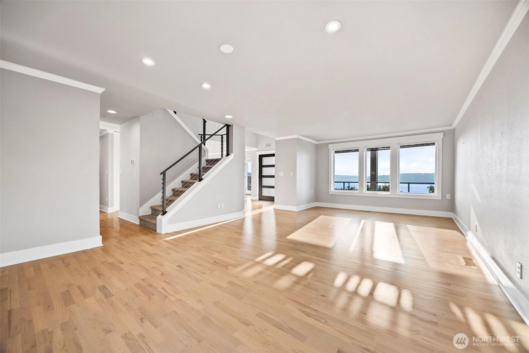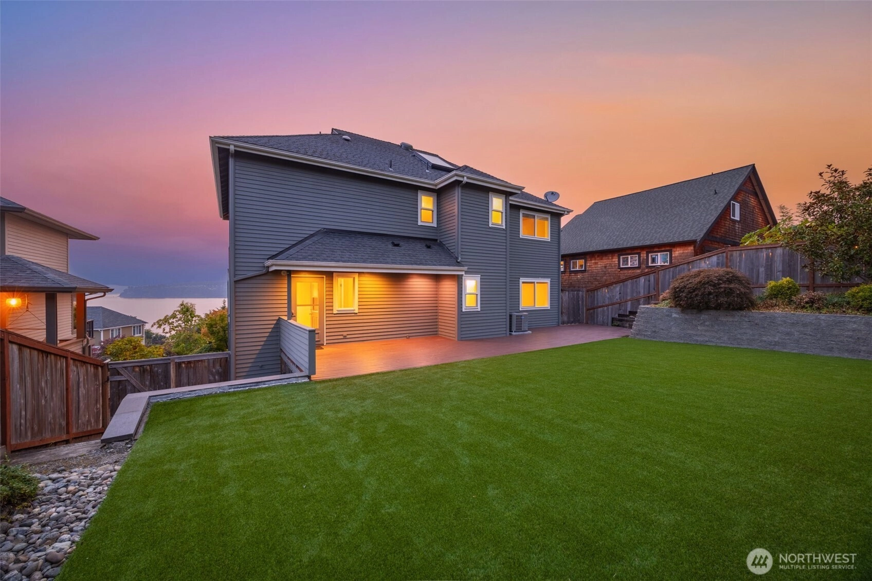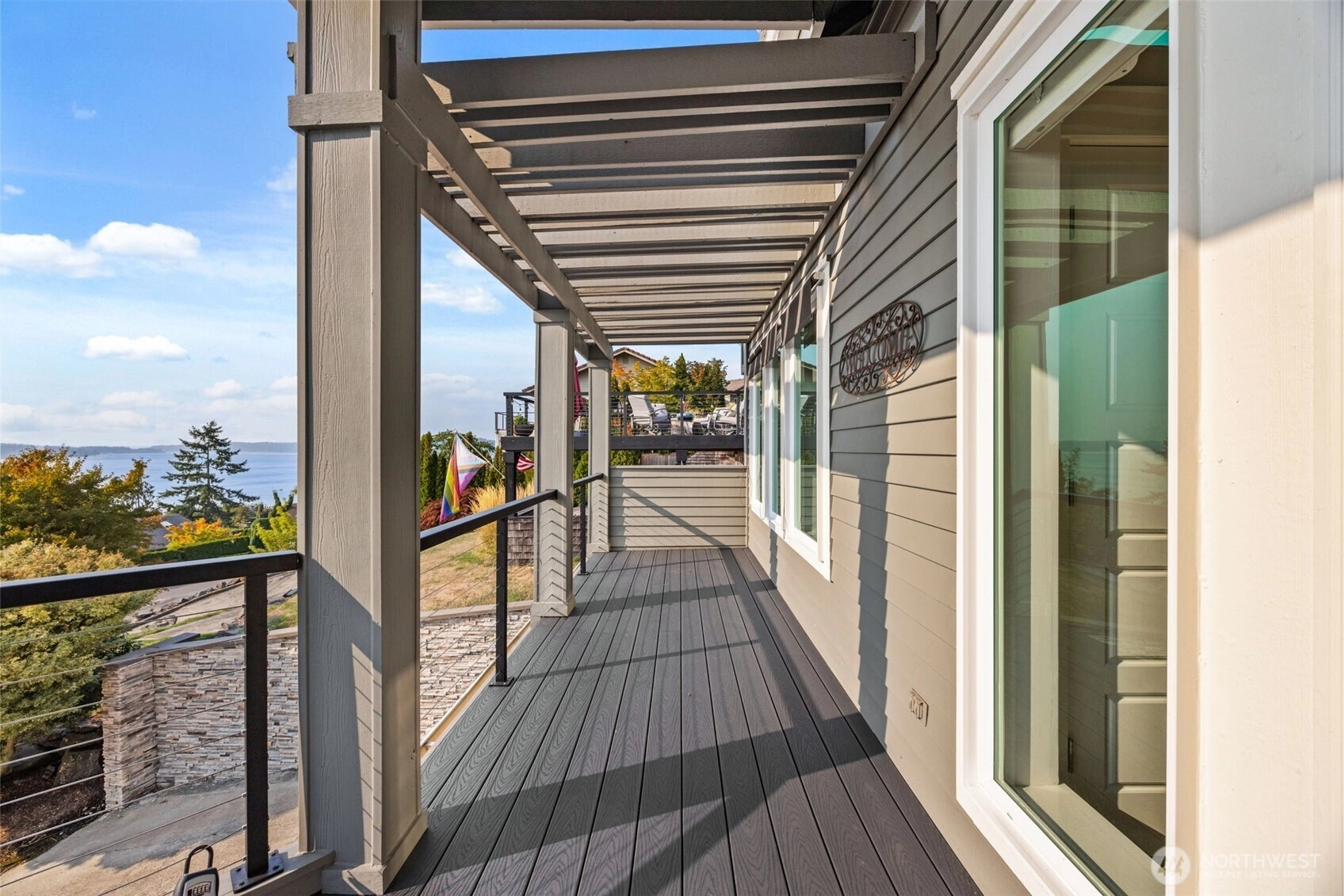 Perched above the Puget Sound, this remarkable University Place home offers sweeping, unobstructed views allowing for perfect sunsets over the water. Inside, natural light floods through walls of windows, highlighting real wood floors & an open layout. The updated kitchen shines w/ new cabinets, quartz, stainless appliances & a spacious island that anchors the great room. Glass doors lead to multiple decks & a large balcony where indoor/outdoor living connect seamlessly. The backyard is equally inviting w/ tiered landscaping, turf & a generous deck perfect for gathering. Downstairs presents an opportunity for an ADU or additional bonus room, creating flexibility for extended living or rental income. UP schools & restaurants close by!