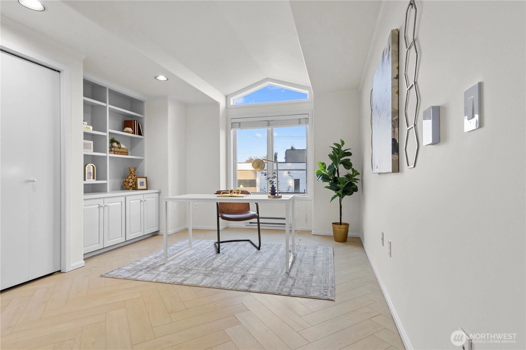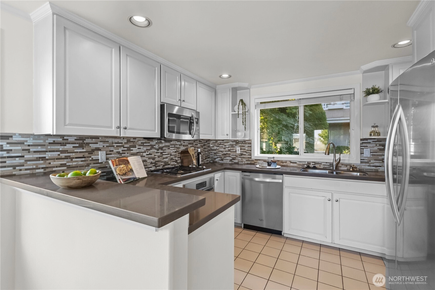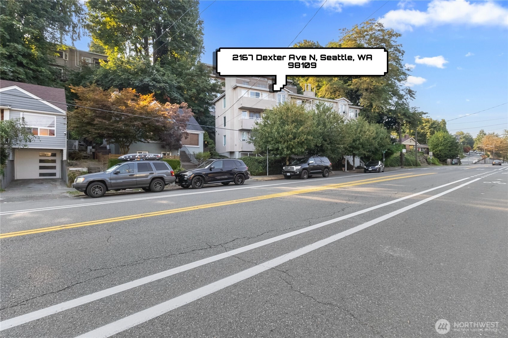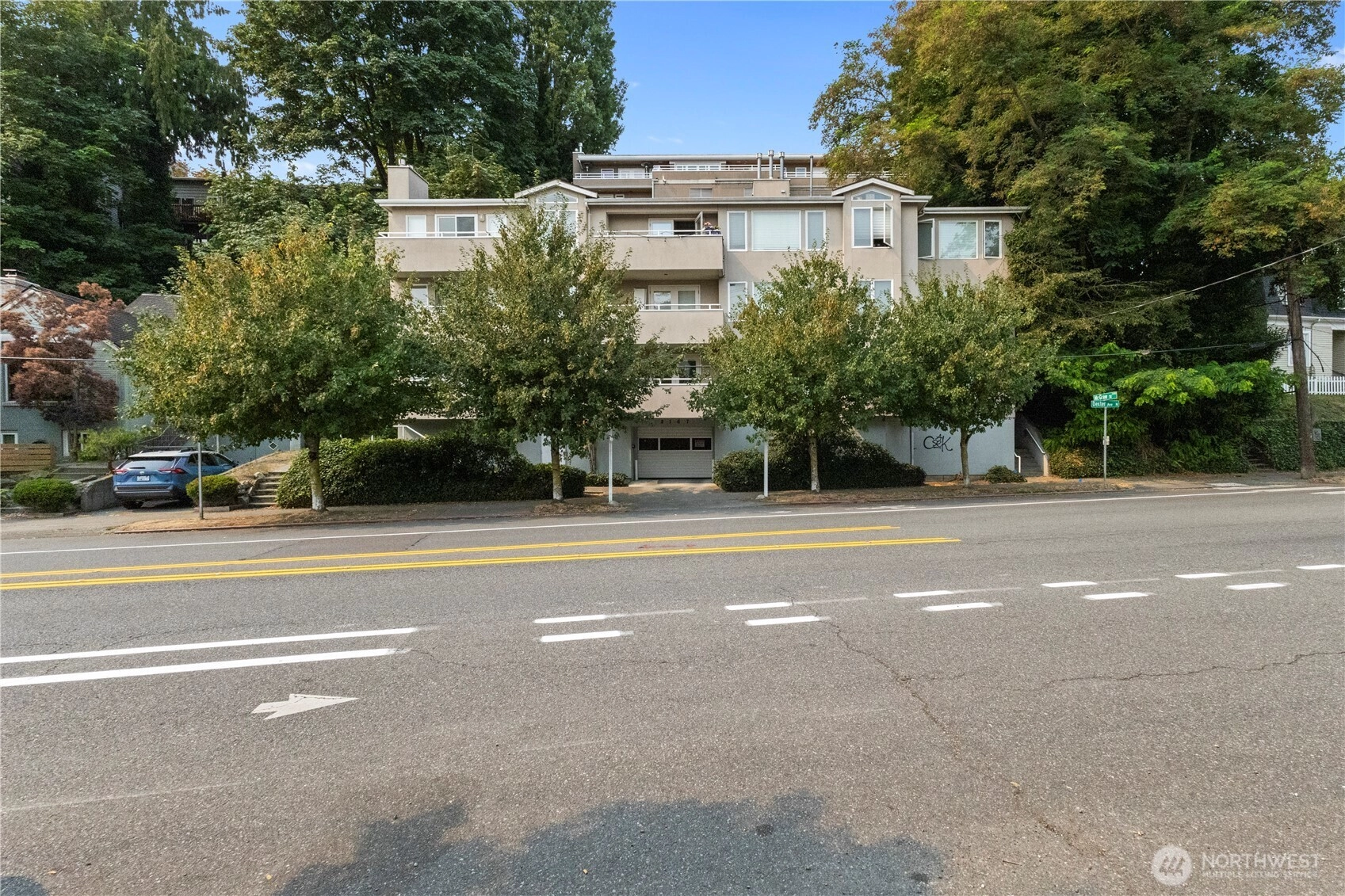 Exceptional top-floor, corner unit featuring abundant natural light and panoramic views that enhance the living experience. The spacious primary suite includes a thoughtfully designed five-piece bathroom with a jetted tub and a generous walk-in closet. The efficient floor plan maximizes space and comfort throughout. Conveniently located just minutes from South Lake Union, Fremont, this pet-friendly building offers a dedicated garage parking space, ample storage, and well-maintained common areas. Enjoy easy access to dining, entertainment, and major transportation routes to downtown Seattle—ideal for sophisticated urban living.