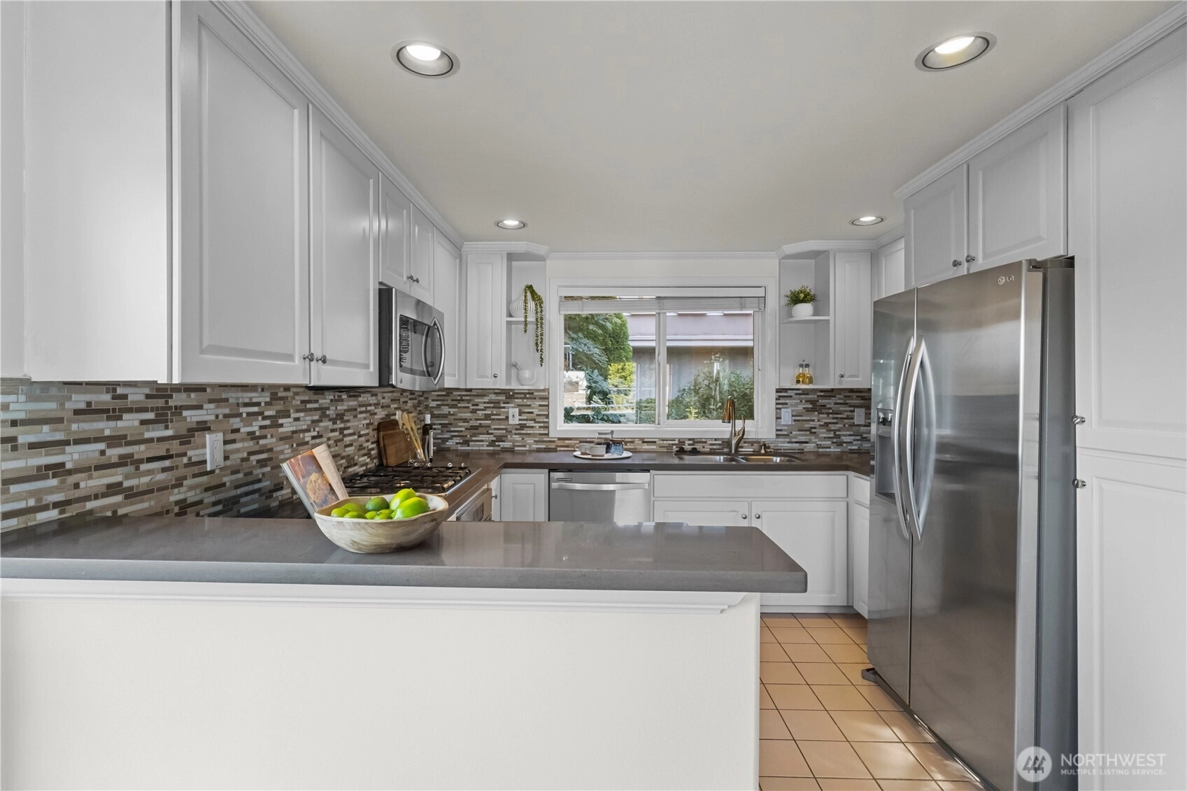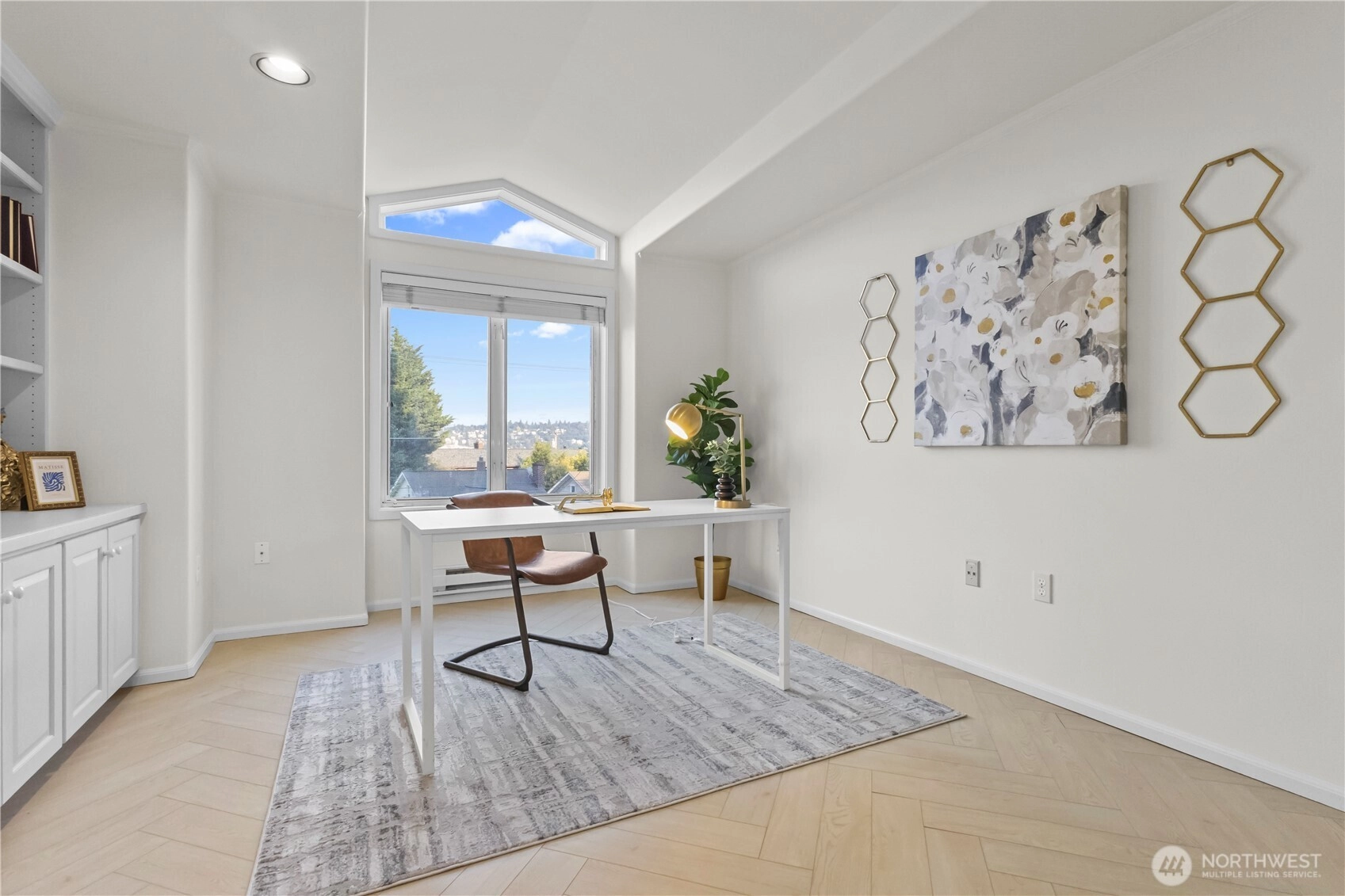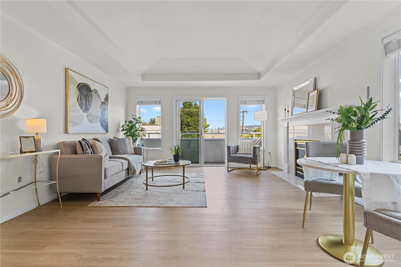 Exceptional top-floor, corner unit featuring abundant natural light and panoramic views that enhance the living experience. The spacious primary suite includes a thoughtfully designed five-piece bathroom with a jetted tub and a generous walk-in closet. The efficient floor plan maximizes space and comfort throughout. Conveniently located just minutes from South Lake Union, Fremont, this pet-friendly building offers a dedicated garage parking space, ample storage, and well-maintained common areas. Enjoy easy access to dining, entertainment, and major transportation routes to downtown Seattle—ideal for sophisticated urban living.