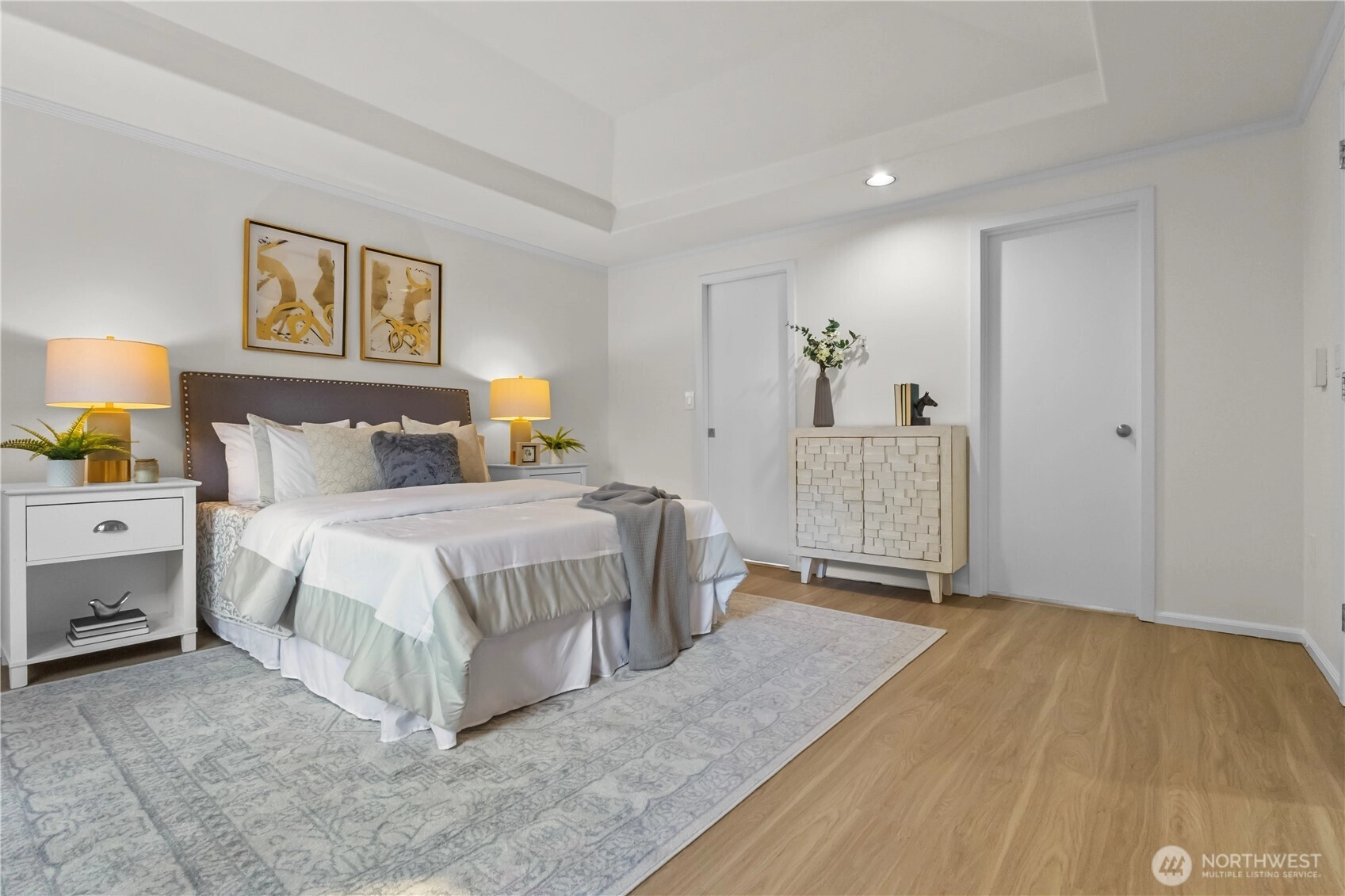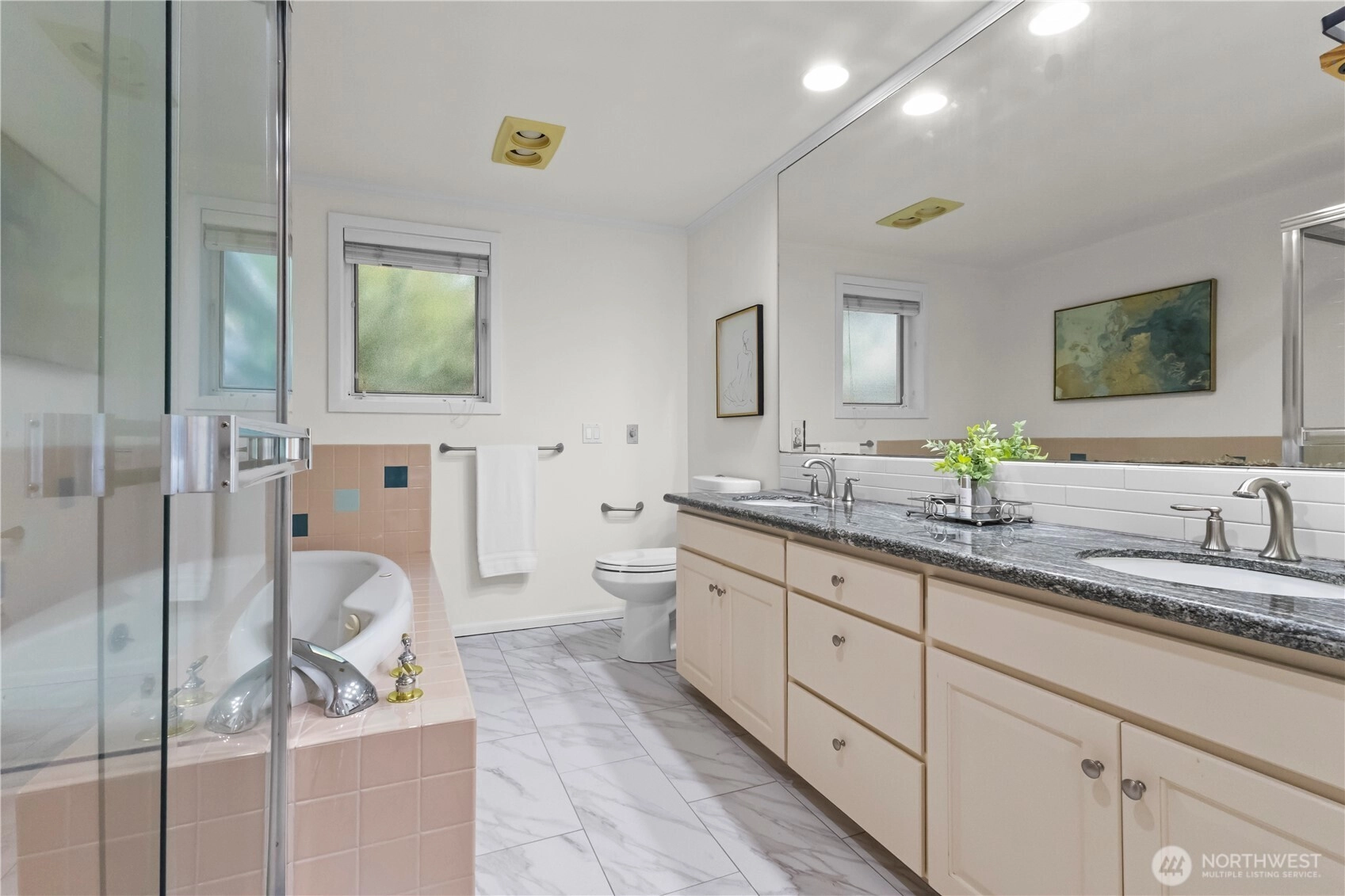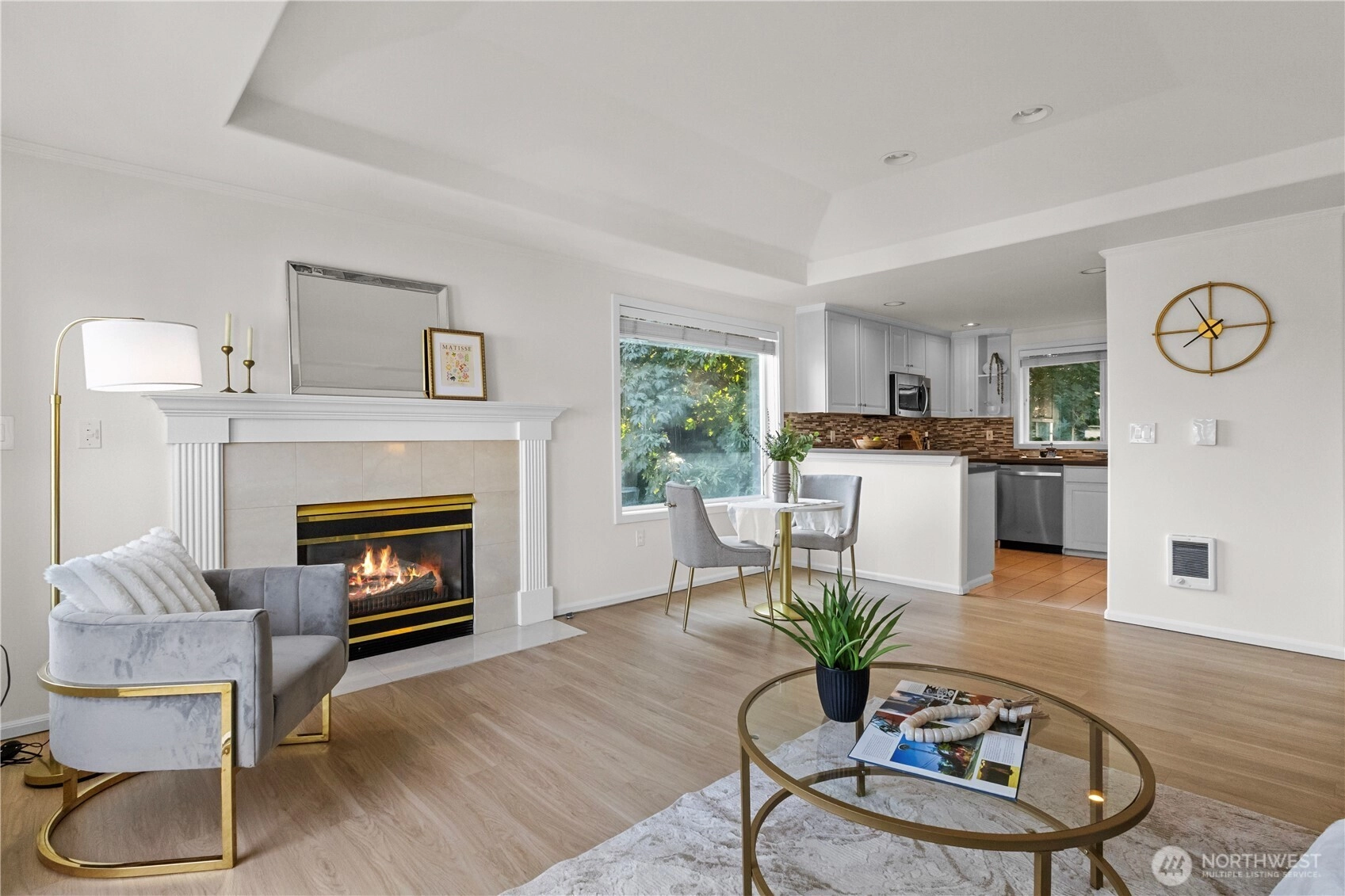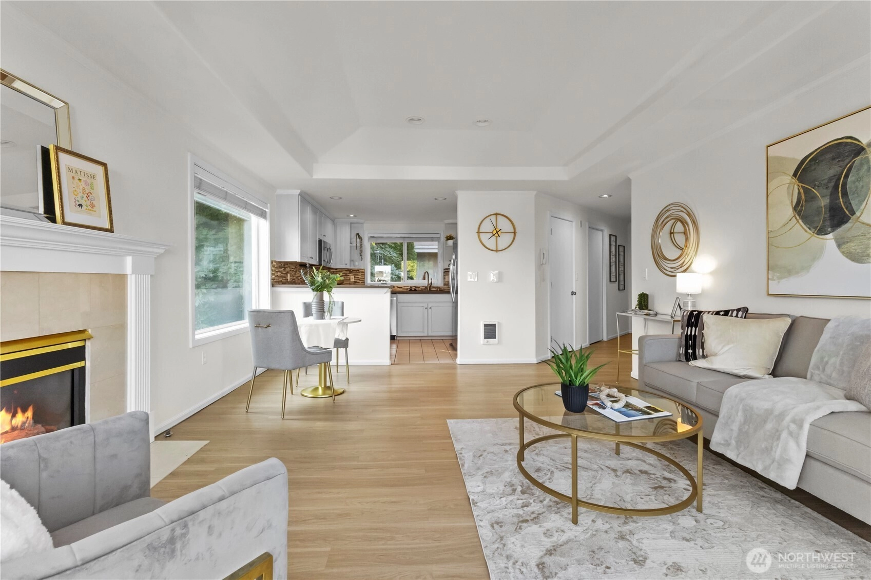 Exceptional top-floor, corner unit featuring abundant natural light and panoramic views that enhance the living experience. The spacious primary suite includes a thoughtfully designed five-piece bathroom with a jetted tub and a generous walk-in closet. The efficient floor plan maximizes space and comfort throughout. Conveniently located just minutes from South Lake Union, Fremont, this pet-friendly building offers a dedicated garage parking space, ample storage, and well-maintained common areas. Enjoy easy access to dining, entertainment, and major transportation routes to downtown Seattle—ideal for sophisticated urban living.