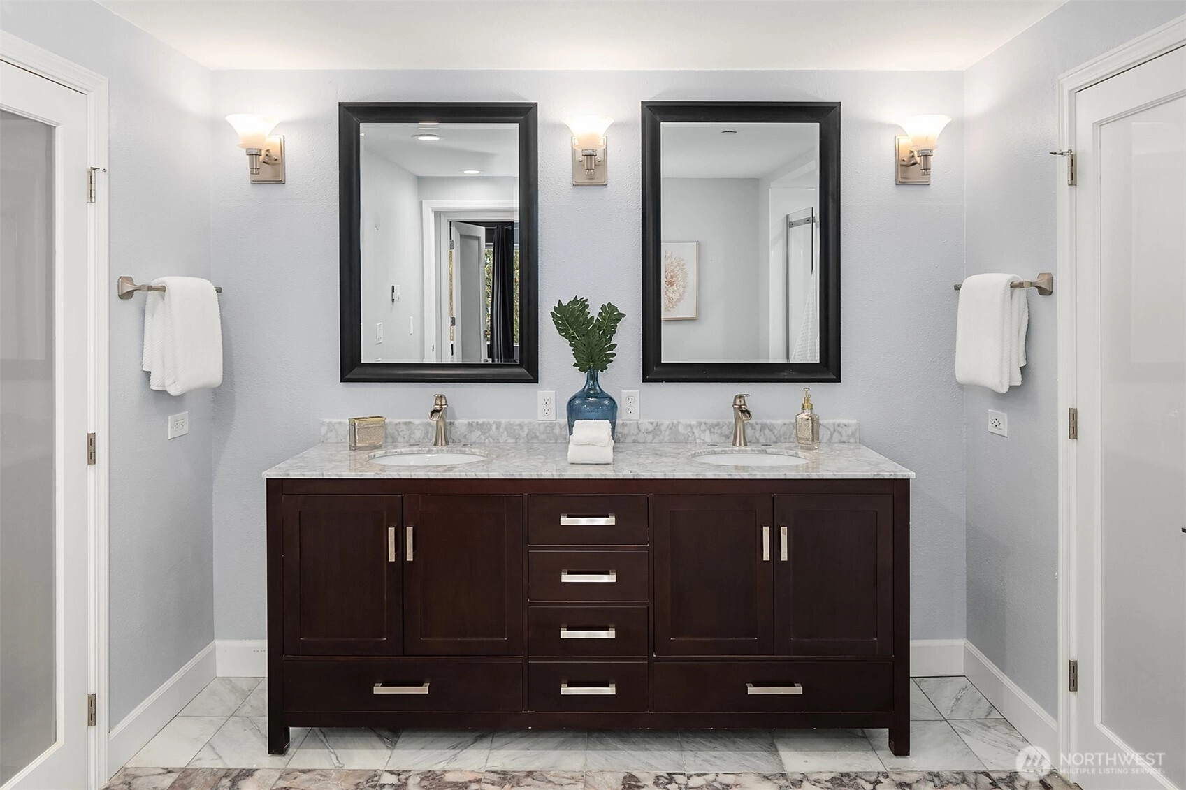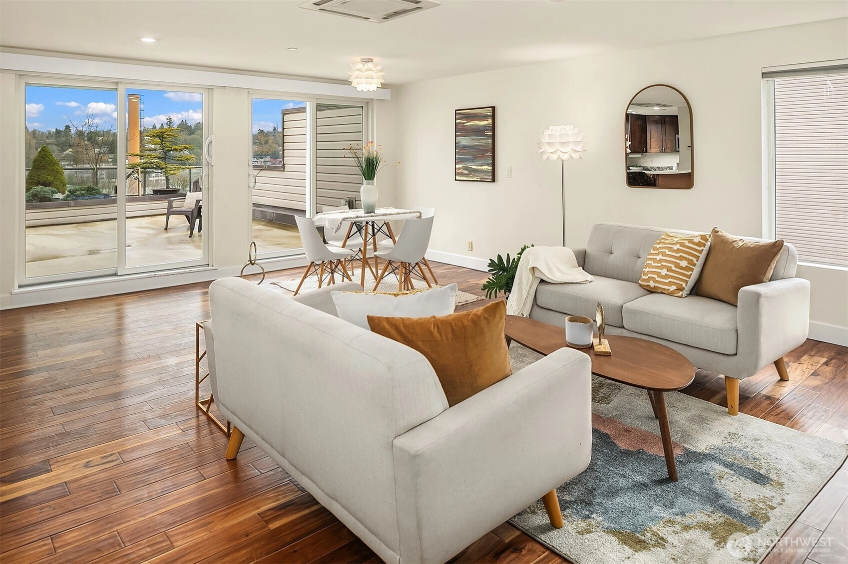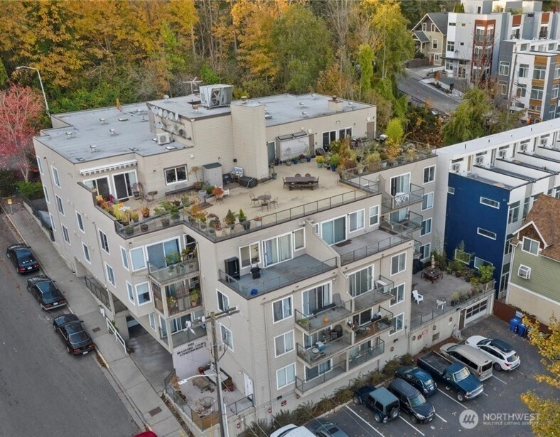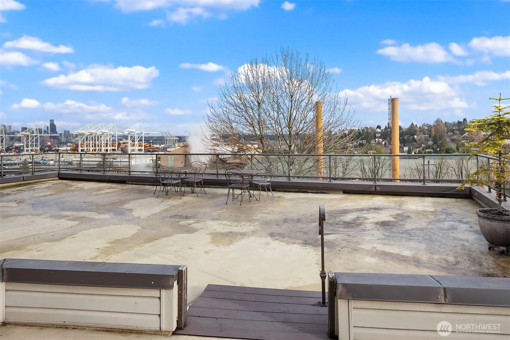 This top-floor, corner two-bedroom condo in Bradford Court Condominiums offers stunning Seattle skyline views and a sprawling rooftop deck, perfect for relaxing or entertaining. The large, beautifully updated kitchen is a highlight, with modern finishes and panoramic views of the city. Ideally located in West Seattle, it’s just minutes from Alki Beach, coffee shops, restaurants, shopping, and parks. With easy freeway access, this condo combines the best of city living with a peaceful retreat. Enjoy the vibrant neighborhood and breathtaking views from your own private sanctuary. Two secured parking spaces in the garage and two storage areas are included. One with an additional 3/4 bath could be an office, artist studio, exercise room, etc.