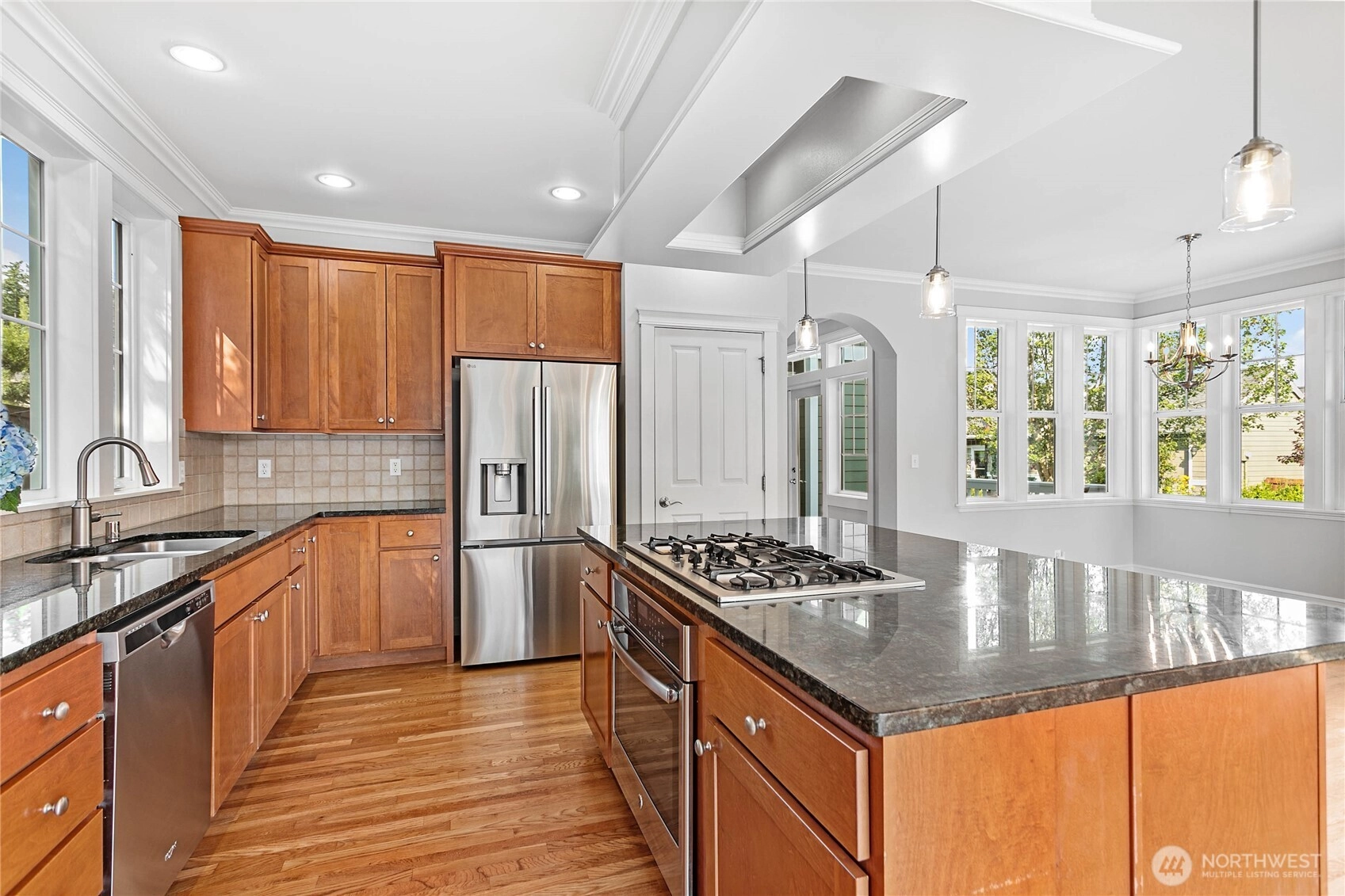 Built in 2006, this 3,344 sq ft traditional home blends timeless charm with modern updates. Elegant millwork, built-ins, and abundant bookshelves add warmth, while refinished hardwoods, fresh paint, new carpet, and stainless appliances make it move-in ready. The spacious kitchen offers a pantry, breakfast nook, and family room with fireplace, plus formal dining and separate living room with gas fireplace. Retreat to the oversized primary suite with walk-in closet and 5-piece bath. Two bedrooms, full bath, laundry room, and huge bonus room upstairs; plus a main-floor office provide flexibility. Enjoy a fully fenced backyard, two-car garage, and a prime Anacortes location near schools, parks, beaches, trails, and downtown amenities.