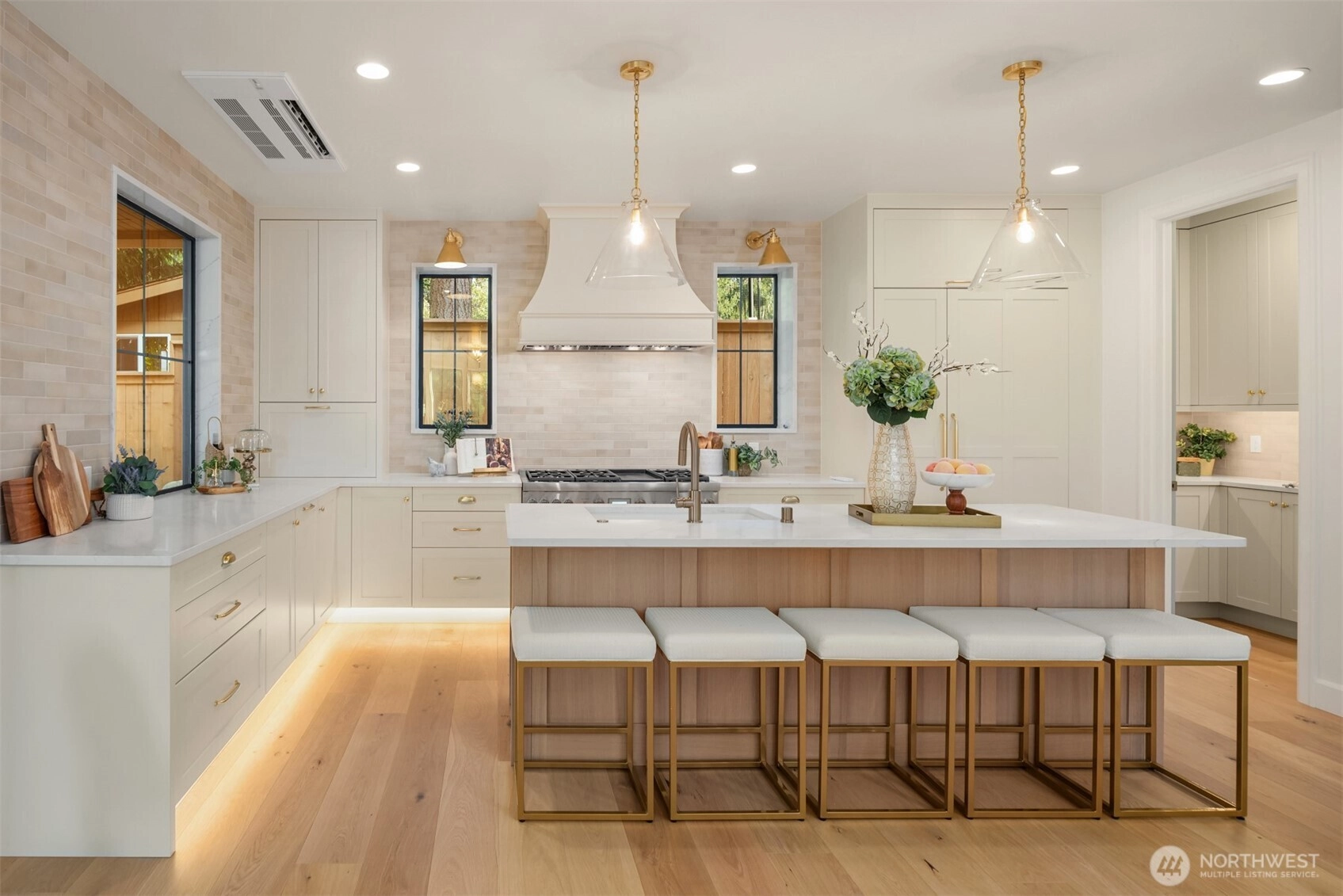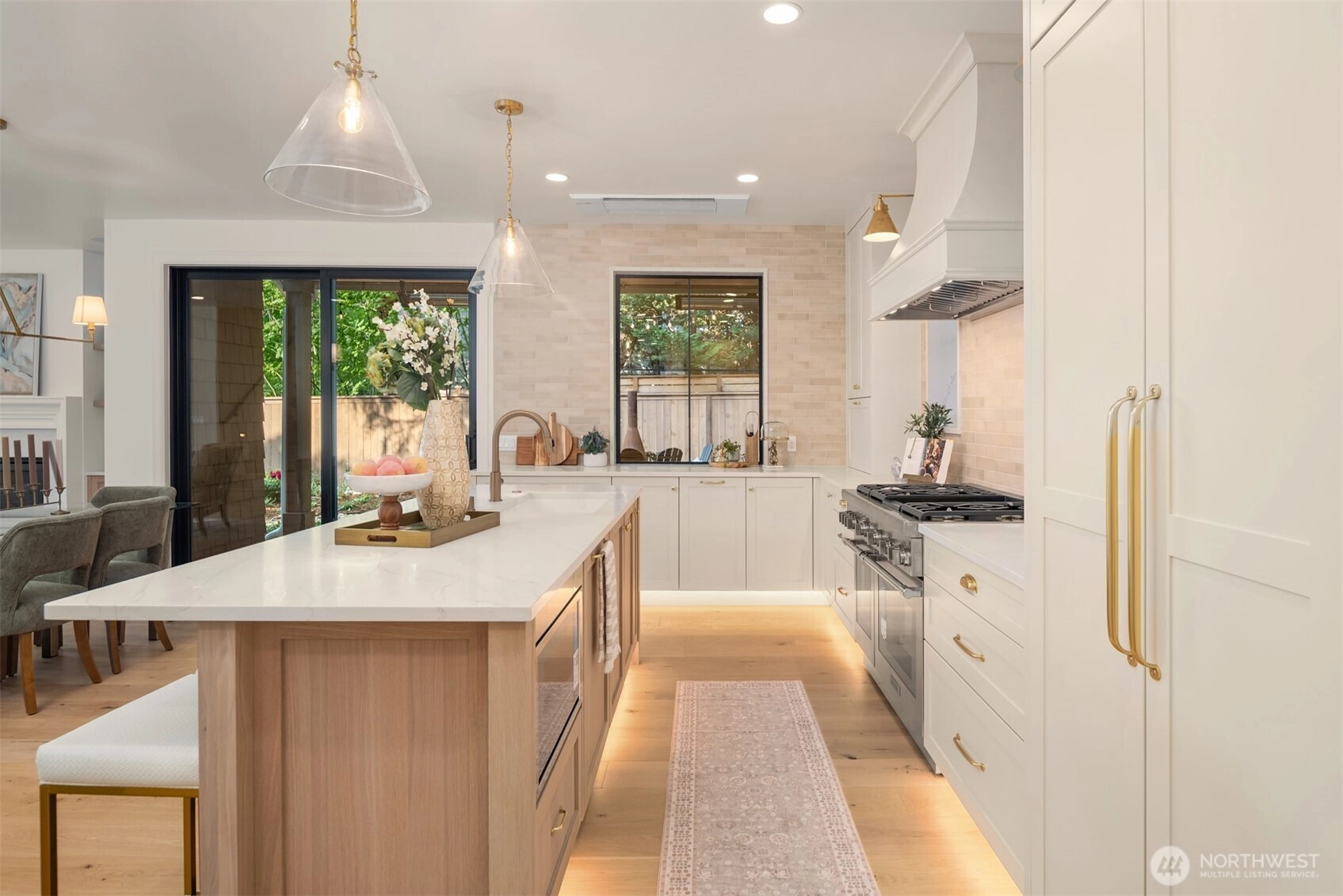 NEW MUST-SEE W of Market Charmer just steps from Juanita Bay Park & Boardwalk. Granger & Company delivers luxuriously curated style & comfort in this one-of-a-kind 5bd/3.5ba masterpiece. Captivating foyer with heated floor welcomes you into the great room w stunning & cozy gas fireplace. Exquisite gourmet kitchen loaded w quartz counters, Belmont cabinets, top-of-the-line appliances, & butler's pantry. Sliding doors open to heated covered patio, enchanting garden & fully fenced yard. Upper floor offers 4 spacious bedrooms & laundry rm. Breathtaking Primary Suite boasts private balcony, fabulous walk-in, and lavish en suite bath with heated floors, soaking tub & architecturally enclosed shower. 2 car garage w EC charging & custom wood door.