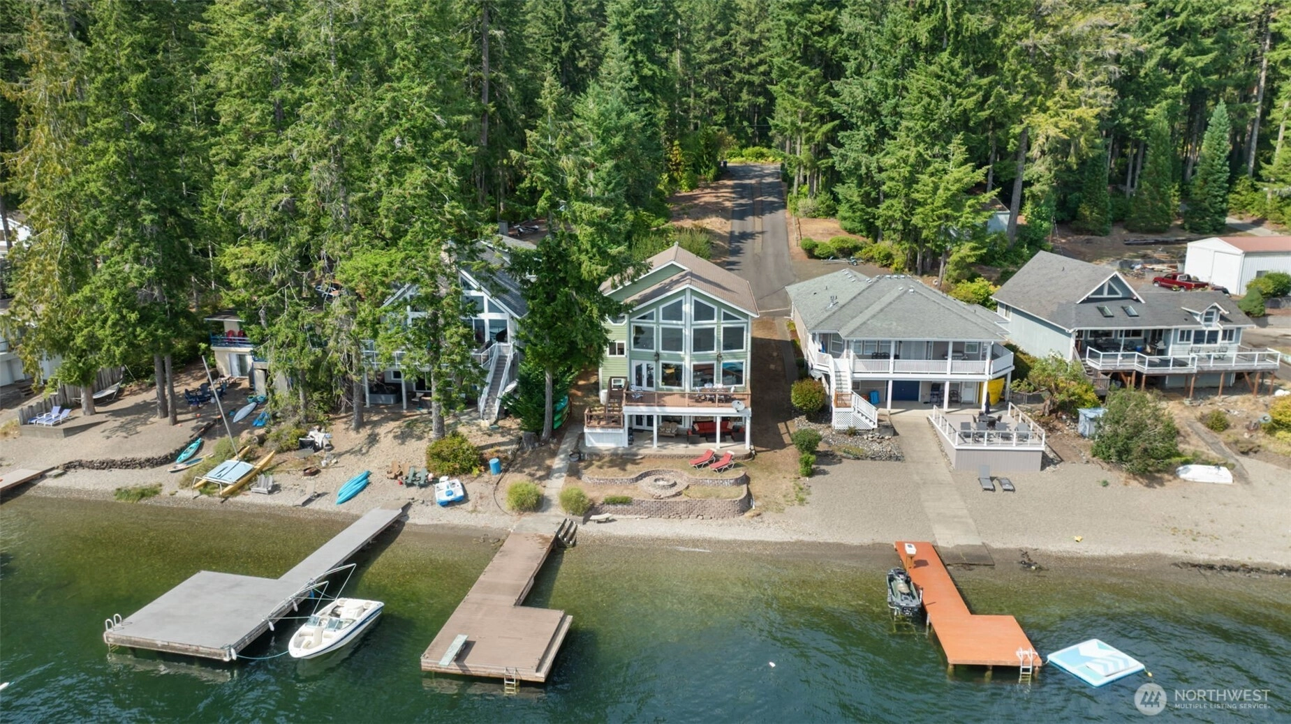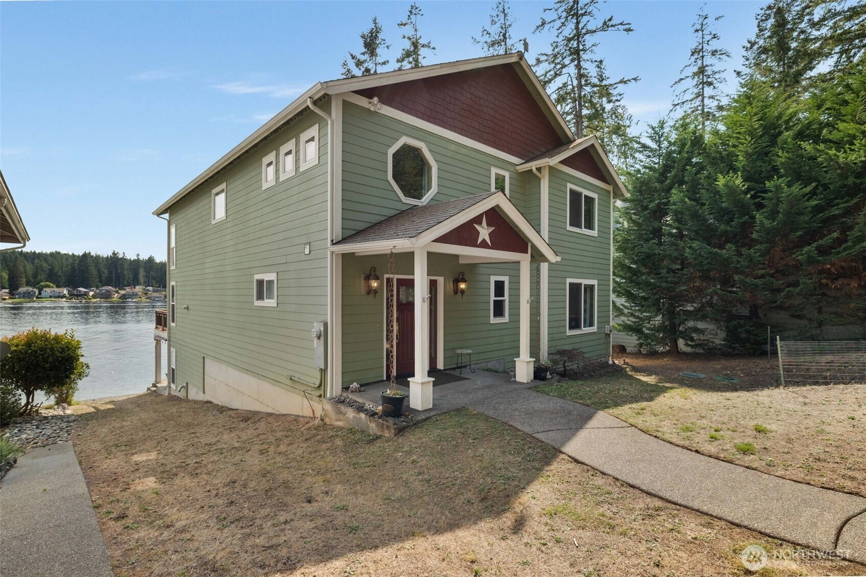 Mason Lake waterfront living at its finest! With 60’ of no-bank pebble beach & a private dock, this home was built for both relaxation & entertaining. Ingeniously designed for main floor living plus two additional levels, including a loft and a walk-out basement ideal for gaming or a private retreat. Soaring two-story windows showcase sweeping lake views, bringing nature inside. The chef’s kitchen is beautifully appointed, making meal prep a pleasure. Though the septic is designed for 2 bedrooms, the home offers 3 generously sized rooms. Sold furnished with quality pieces, kitchenware, linens, sporting equipment, & more. This turnkey gem is ready for immediate enjoyment. A true luxury retreat where unforgettable memories await!