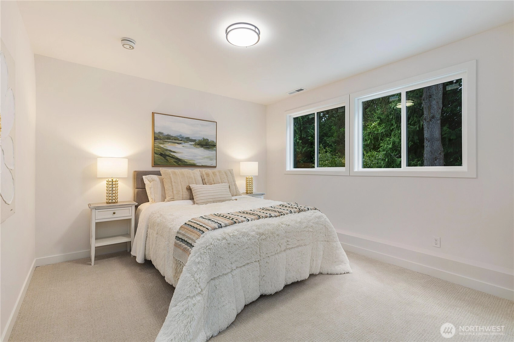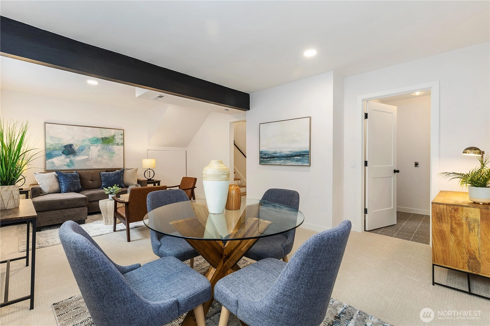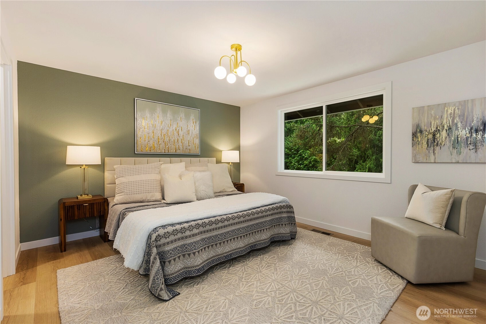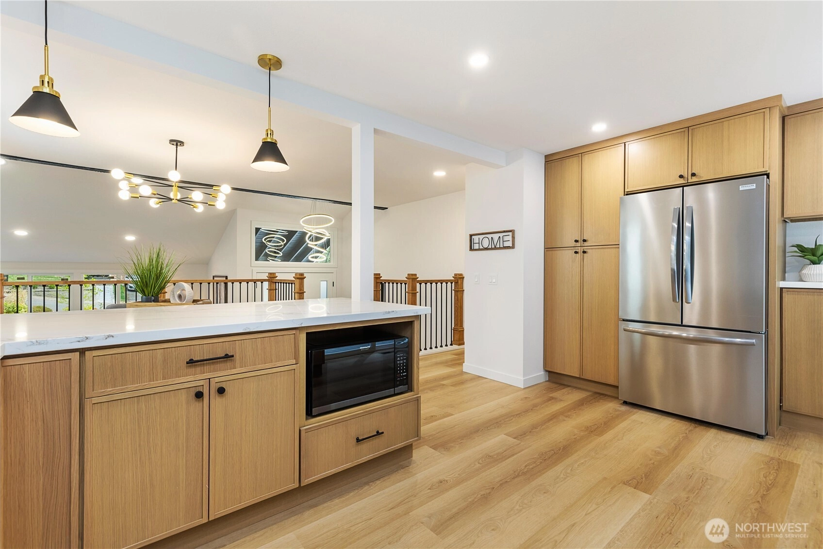 Remodeled tri-level in Lake Forest Park, tucked in a friendly neighborhood near Horizon View & within the Shoreline School District. Deeded beach access via the Lake Forest Park Civic Club. Vaulted ceilings on the main level with open living room, custom kitchen with newest slim shaker cabinets & stone countertop & backsplash, pot filler, stainless appliances, & formal dining area. Main floor primary suite with double vanity and ¾ bath, plus 2 more bedrooms & full hall bath. Lower level offers family room with patio access, 4th bedroom, ¾ bath, and laundry. Private backyard with multiple decks & oversized patio, perfect for entertaining all year around & for everyone to enjoy. 2-car garage, central A/C, quiet established neighborhood