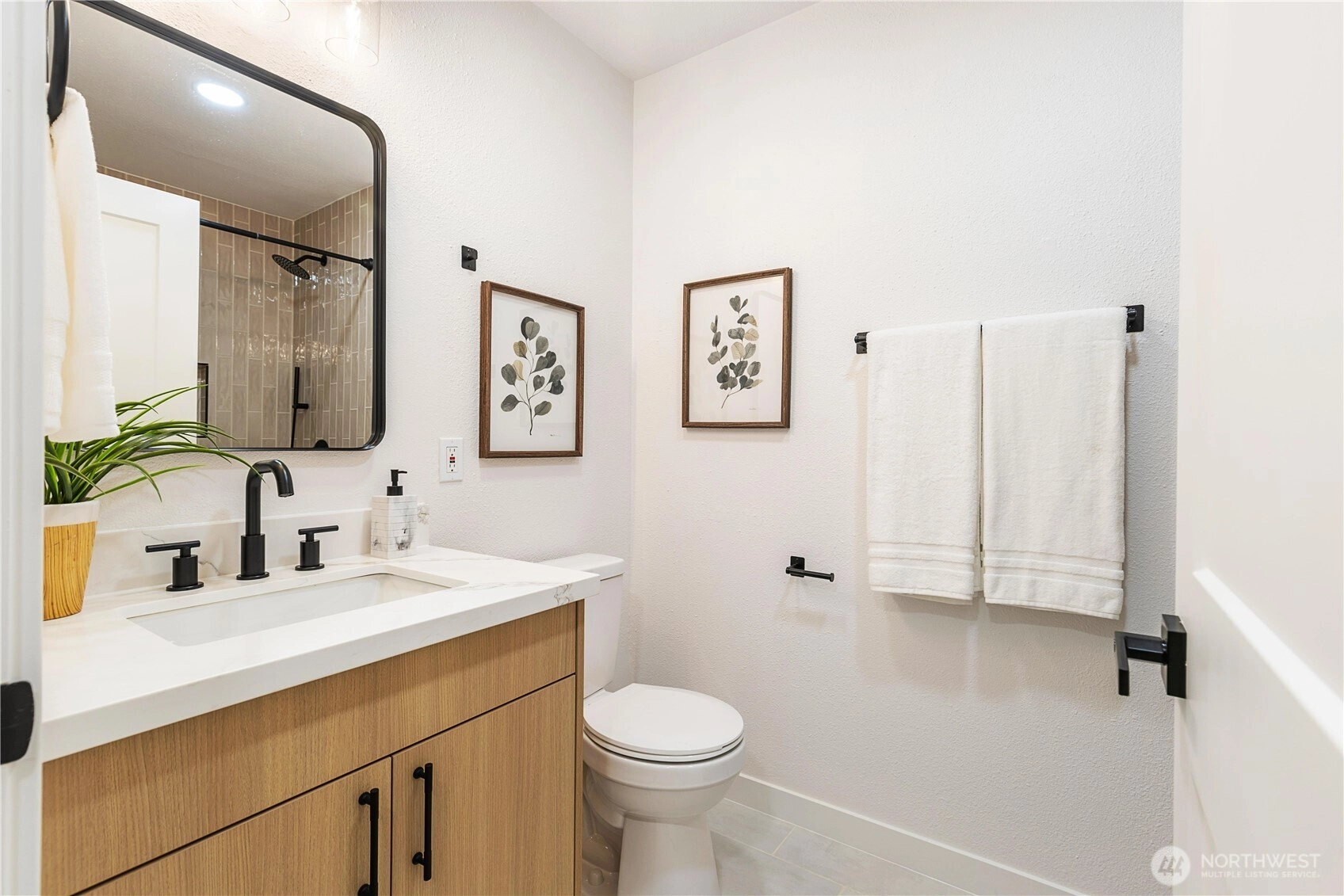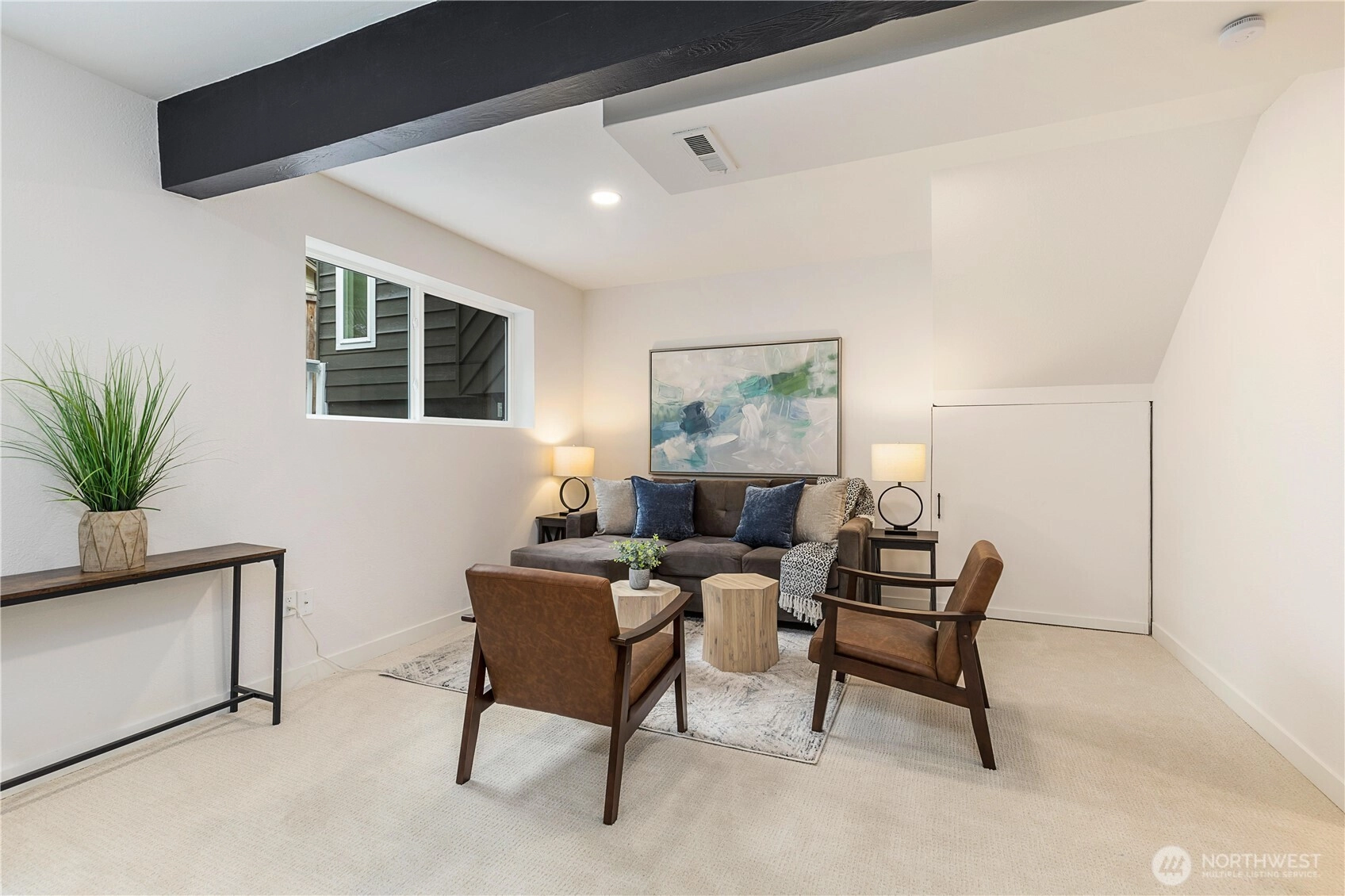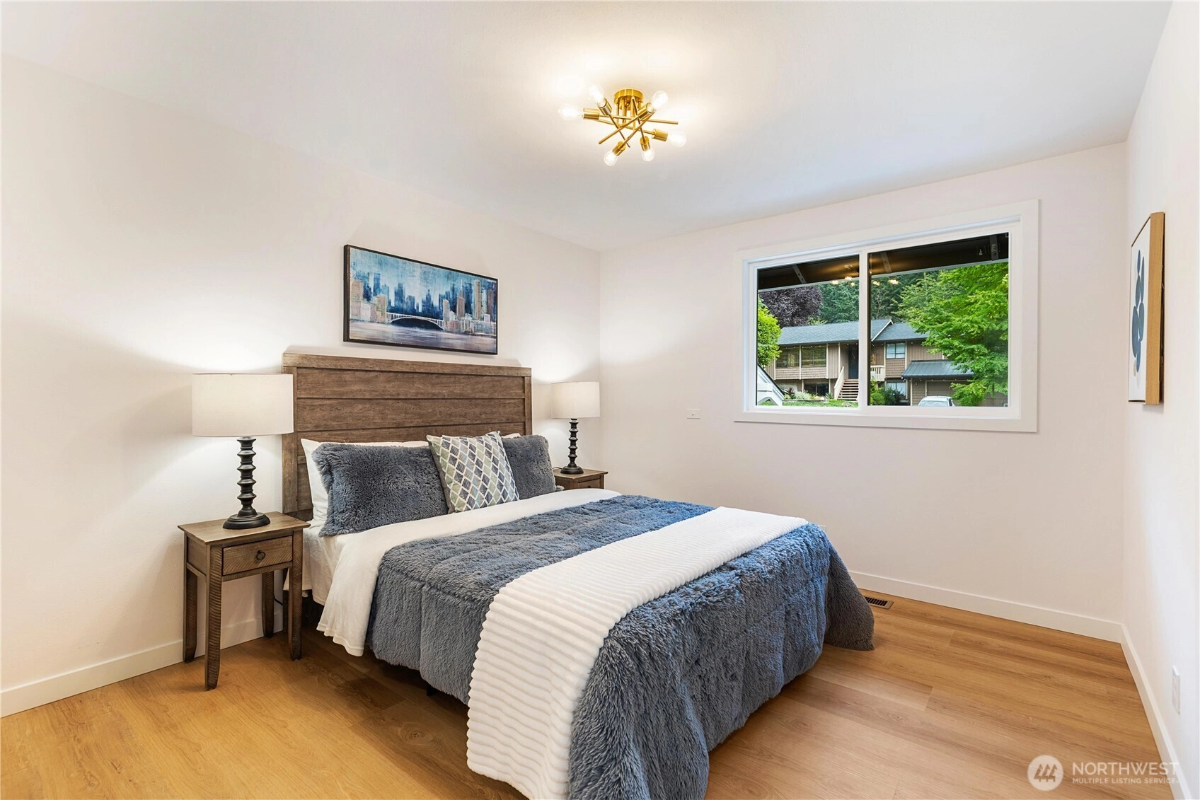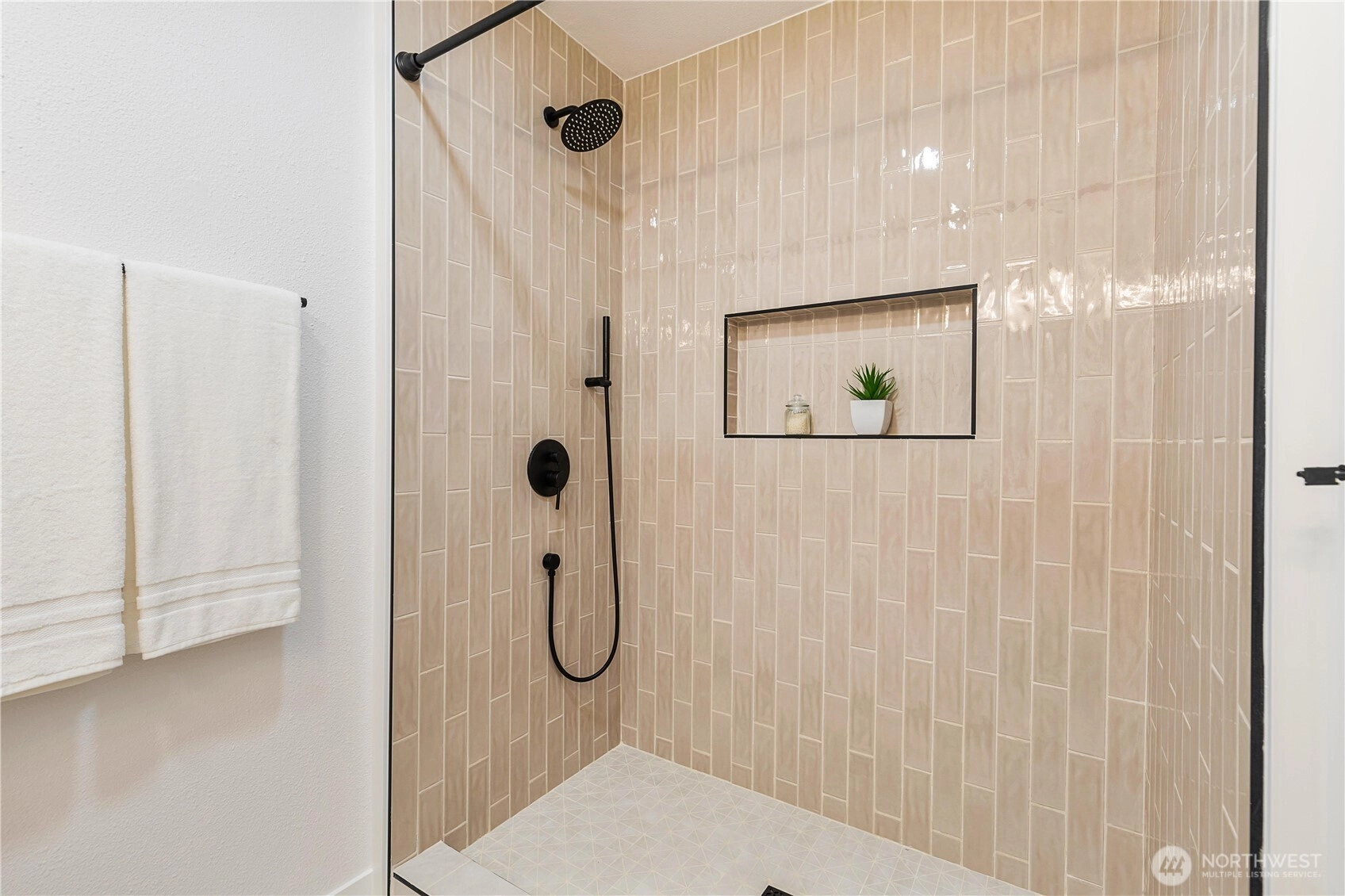 Remodeled tri-level in Lake Forest Park, tucked in a friendly neighborhood near Horizon View & within the Shoreline School District. Deeded beach access via the Lake Forest Park Civic Club. Vaulted ceilings on the main level with open living room, custom kitchen with newest slim shaker cabinets & stone countertop & backsplash, pot filler, stainless appliances, & formal dining area. Main floor primary suite with double vanity and ¾ bath, plus 2 more bedrooms & full hall bath. Lower level offers family room with patio access, 4th bedroom, ¾ bath, and laundry. Private backyard with multiple decks & oversized patio, perfect for entertaining all year around & for everyone to enjoy. 2-car garage, central A/C, quiet established neighborhood