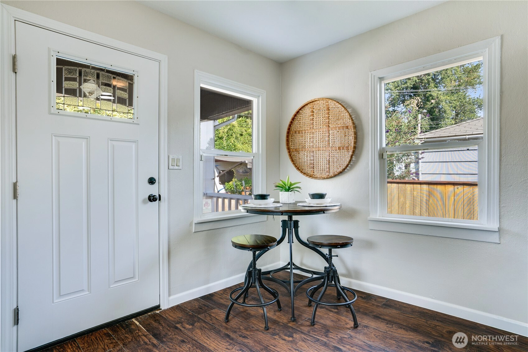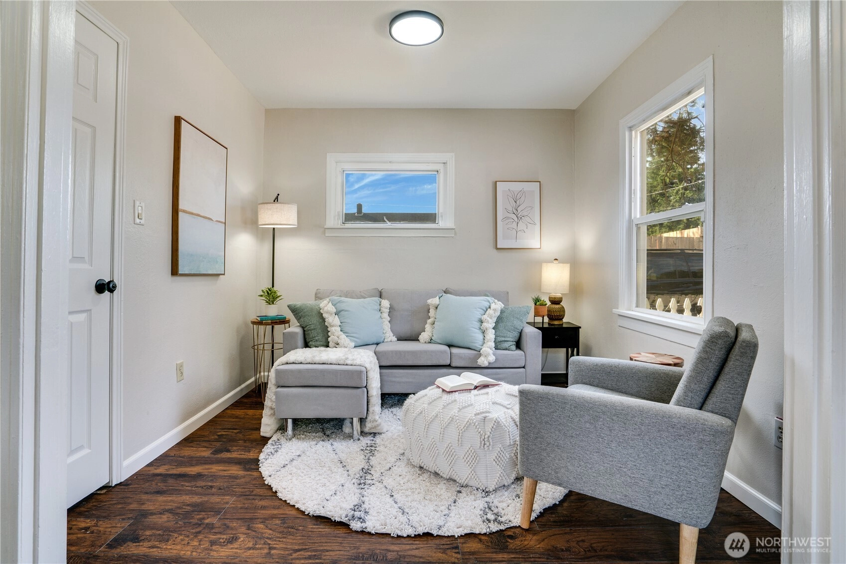 Nestled behind a classic picket fence in the heart of downtown Sumner, this storybook cottage offers timeless curb appeal and thoughtful updates throughout. Fresh interior paint (2025) brightens every corner, while the cozy bedroom features an attached bath refreshed with a large walk-in shower and a stylish vanity. A versatile flex room is perfect for guests, hobbies, or a home office. The laundry room features a convenient half bath, and built-in storage keeps life organized. Appliances stay, making move-in seamless. Enjoy a one-car garage, outbuildings for extra storage, and both a patio and deck designed for entertaining. Quintessential charm meets convenience—all a short stroll from Sumner’s vibrant shops, dining, and commuter rail.