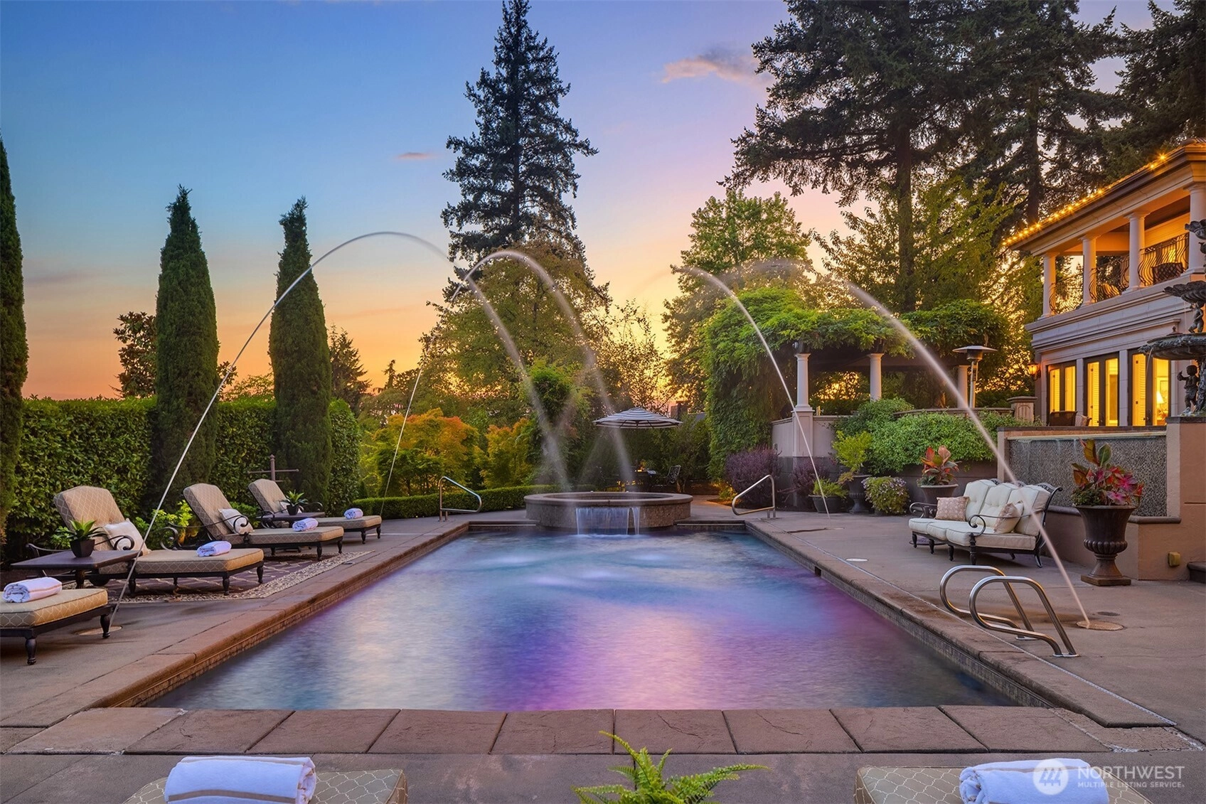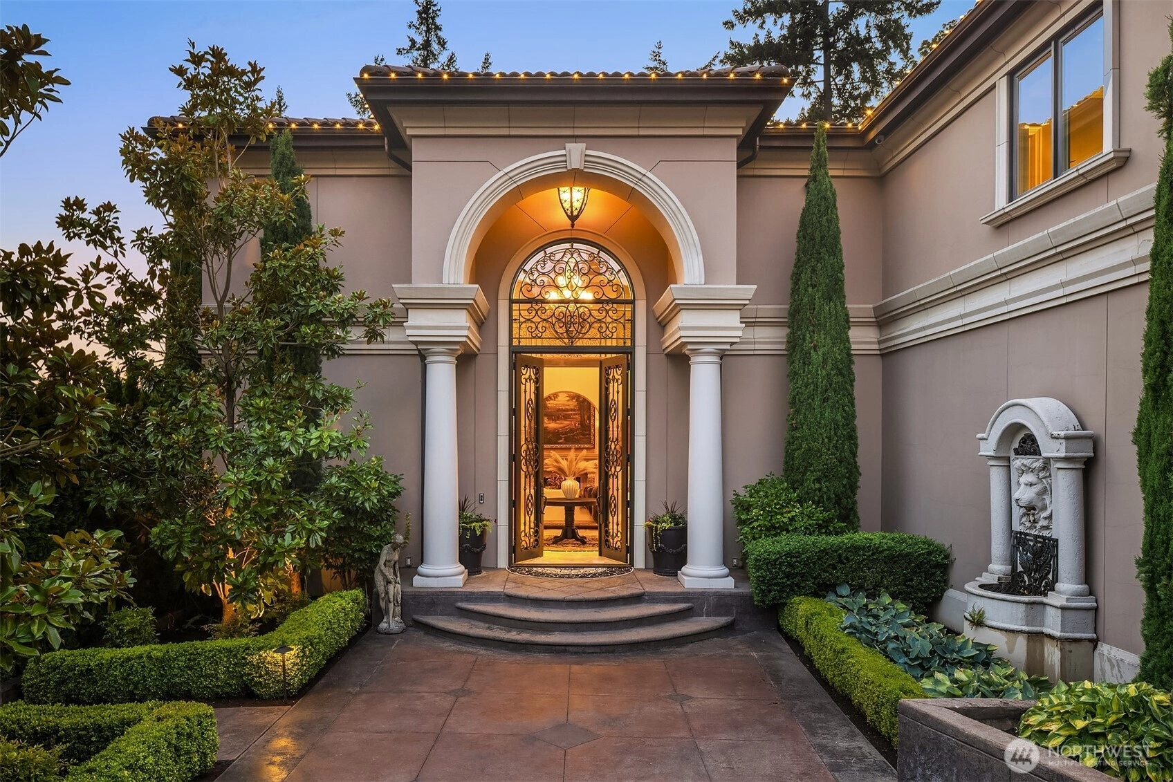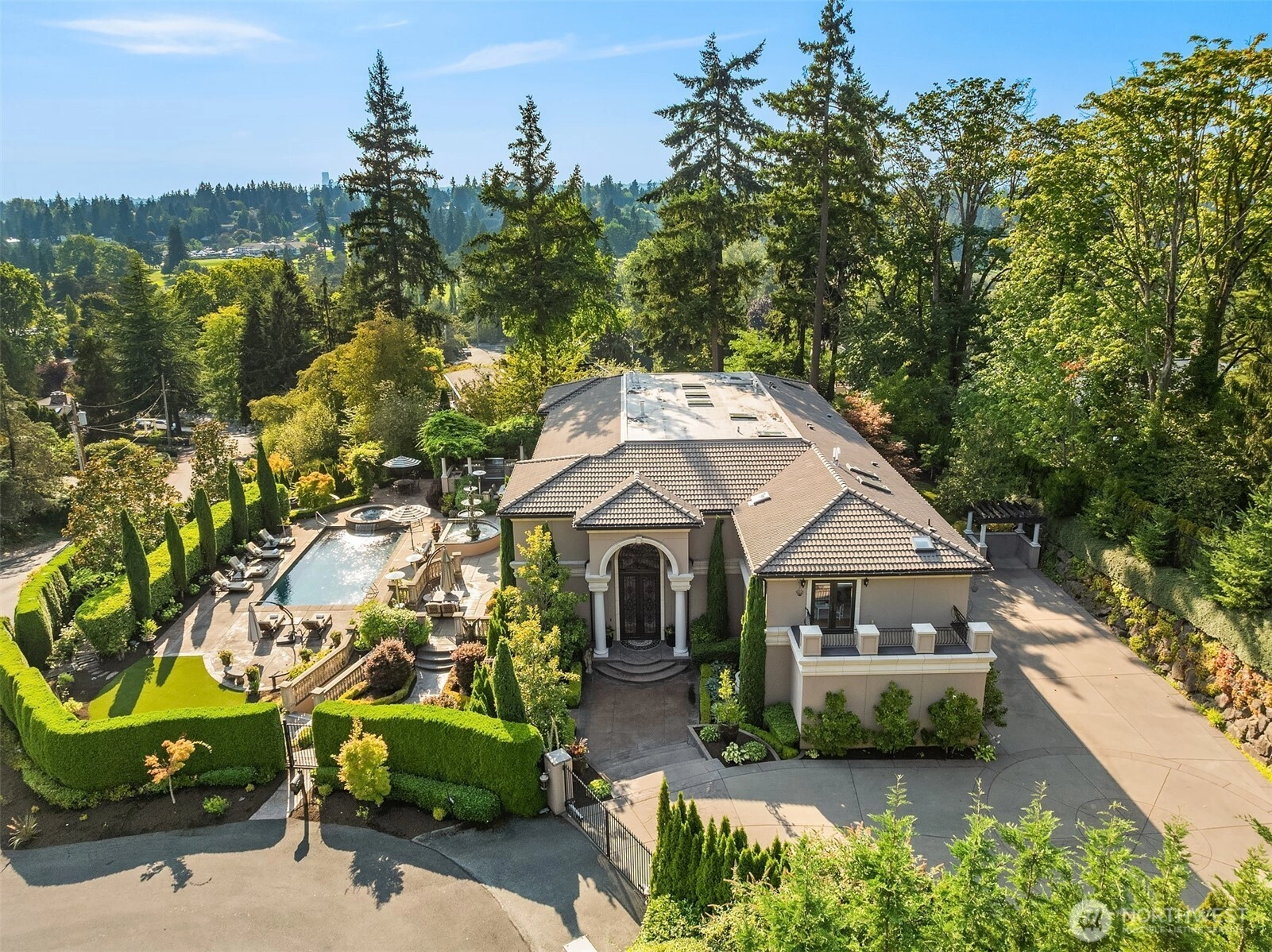 Modern Italian elegance in prestigious Clyde Hill. Inspired by Tuscan villas, this 7,481 sq. ft. estate blends timeless charm w/Pacific Northwest luxury on gated half-acre. Designed w/entertaining in mind, this luxurious home features 5 spacious bedrooms, each w/private en-suite. Grand gourmet kitchen anchored by massive granite island, custom cabinetry surrounds luxury-grade appliances, butler pantry for ease of entertaining. Luxurious primary suite w/wet-bar, private balcony, spa bath & steam shower, & designer closets. Formal & casual living spaces, 2 offices, game room, wine bar, & gym. $800K+ in outdoor renovations to enhance resort-style pool, spa, firepit, outdoor kitchen, 3/4 bath. A rare legacy estate: luxury, privacy, and style.