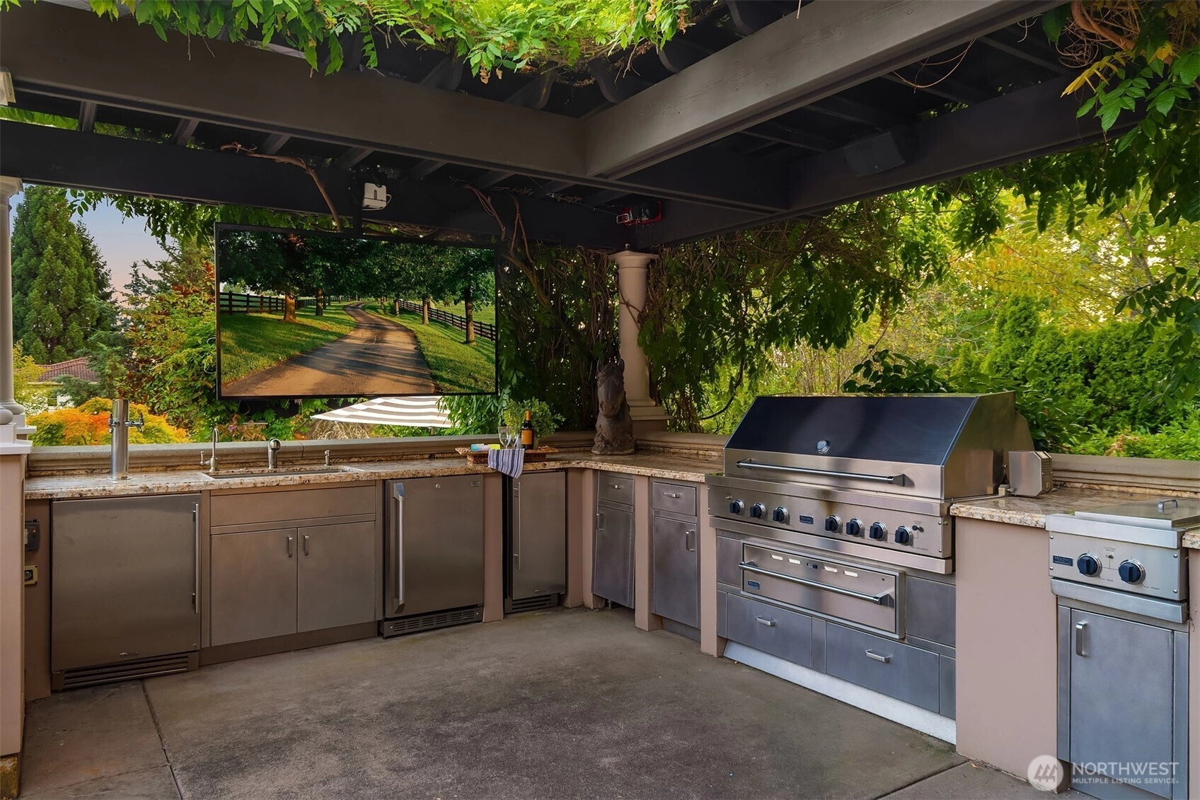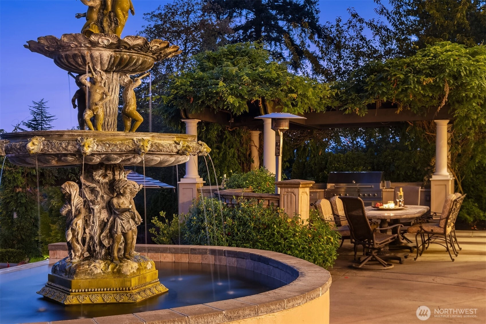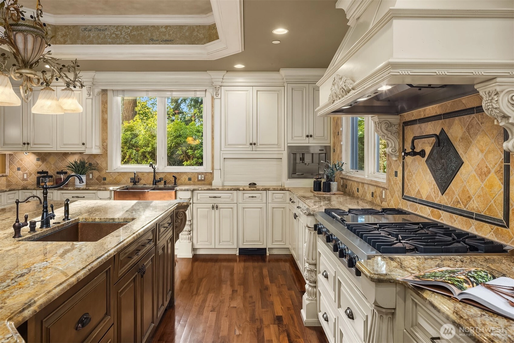 Modern Italian elegance in prestigious Clyde Hill. Inspired by Tuscan villas, this 7,481 sq. ft. estate blends timeless charm w/Pacific Northwest luxury on gated half-acre. Designed w/entertaining in mind, this luxurious home features 5 spacious bedrooms, each w/private en-suite. Grand gourmet kitchen anchored by massive granite island, custom cabinetry surrounds luxury-grade appliances, butler pantry for ease of entertaining. Luxurious primary suite w/wet-bar, private balcony, spa bath & steam shower, & designer closets. Formal & casual living spaces, 2 offices, game room, wine bar, & gym. $800K+ in outdoor renovations to enhance resort-style pool, spa, firepit, outdoor kitchen, 3/4 bath. A rare legacy estate: luxury, privacy, and style.