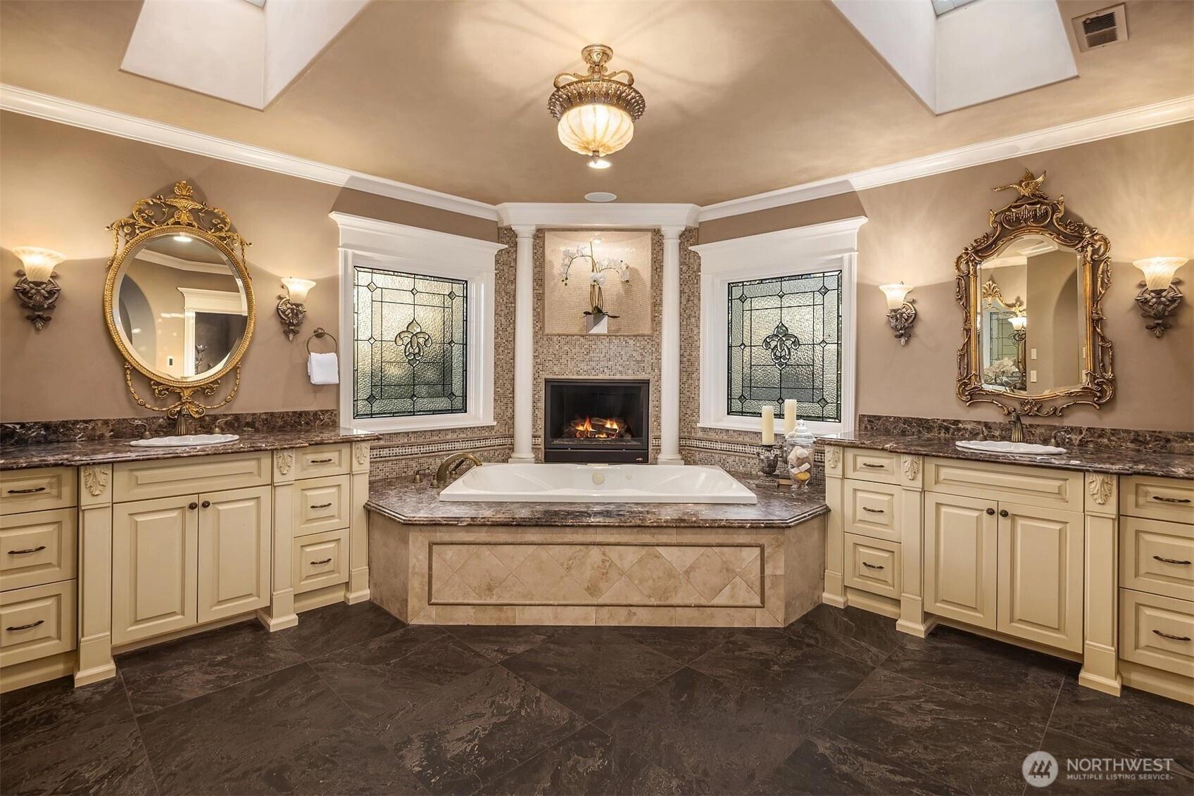 Bath Off Primary Built-In Vacuum Double Pane/Storm Window Dining Room Fireplace Fireplace (Primary Bedroom) French Doors Hot Tub/Spa Jetted Tub Security System Skylight(s) Sprinkler System Vaulted Ceiling(s) Walk-In Closet(s) Walk-In Pantry Water Heater Wet Bar Wine/Beverage Refrigerator Wired for Generator