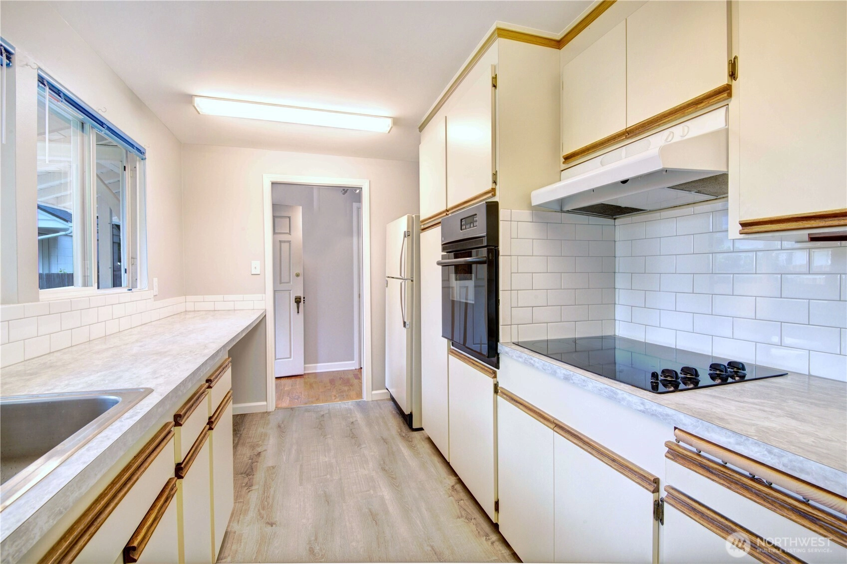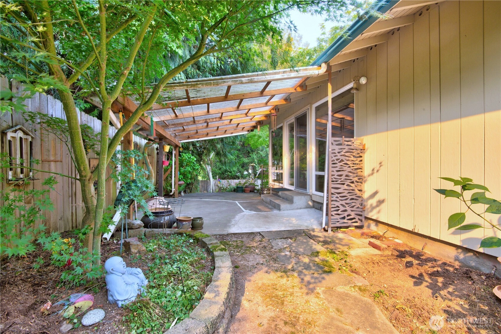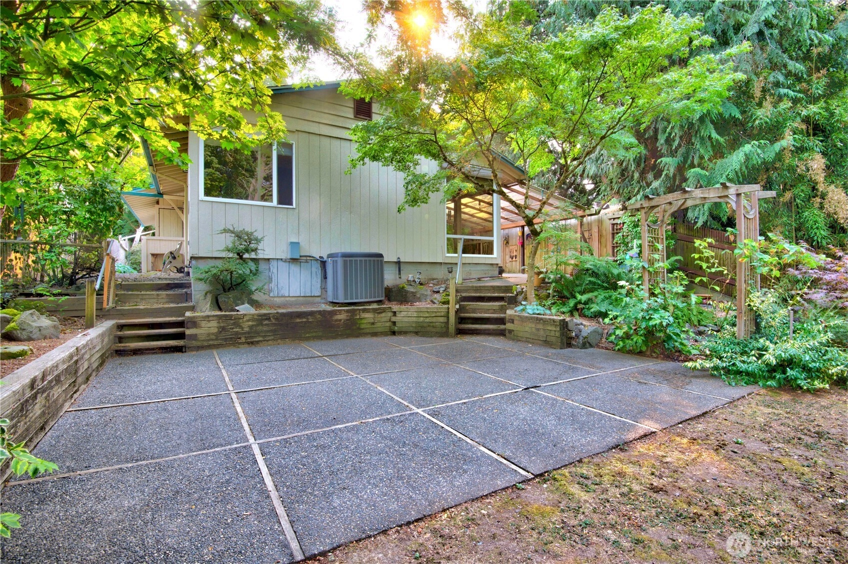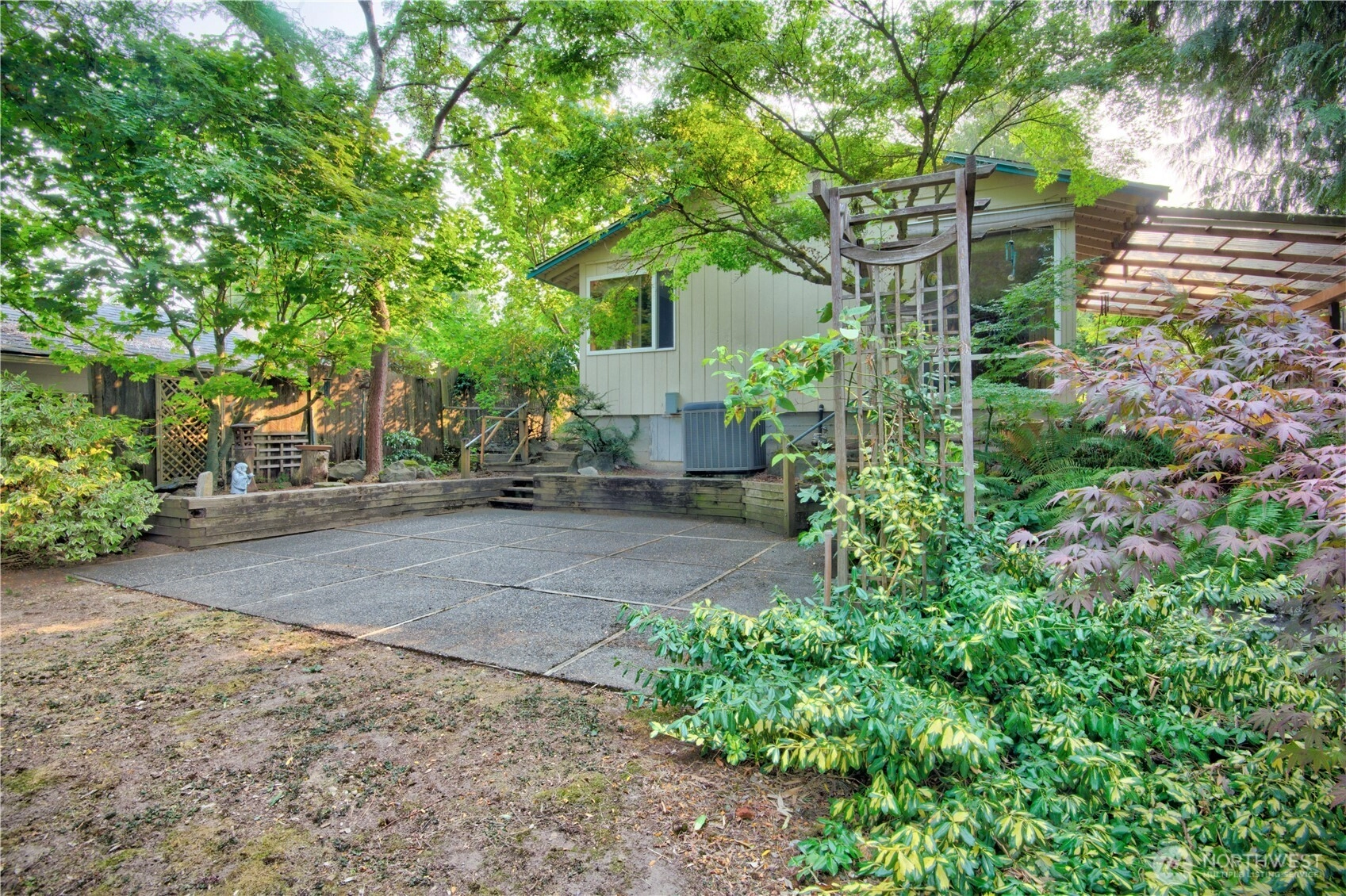 Easy living rambler with covered patio overlooking the serene backyard gardens! Heat pump, double pane windows, 400SF 2 car garage to keep your ride clean & secure! Delightful neighborhood! 3/4" T&G Oak Hardwood Floors are exposed!
