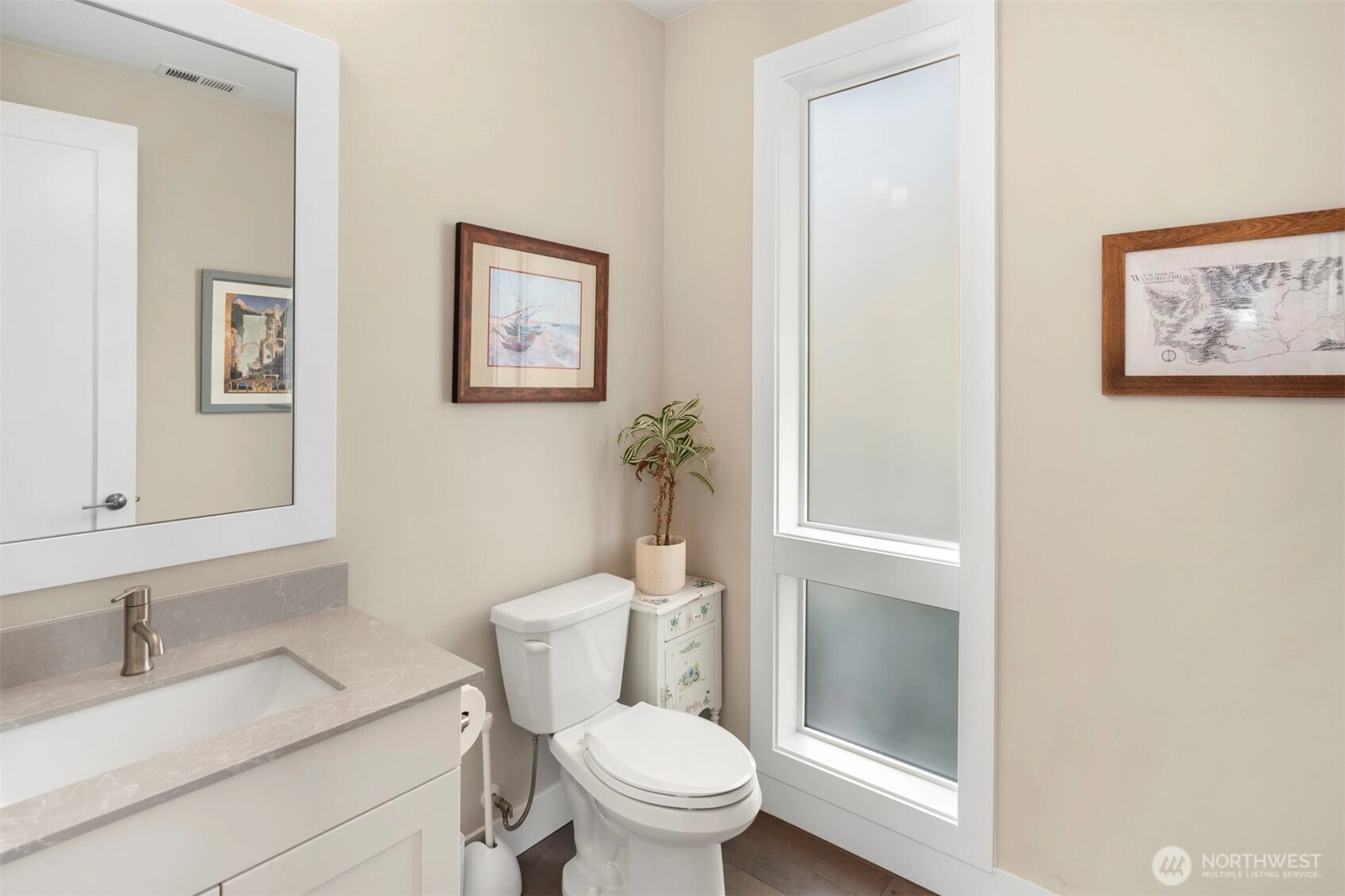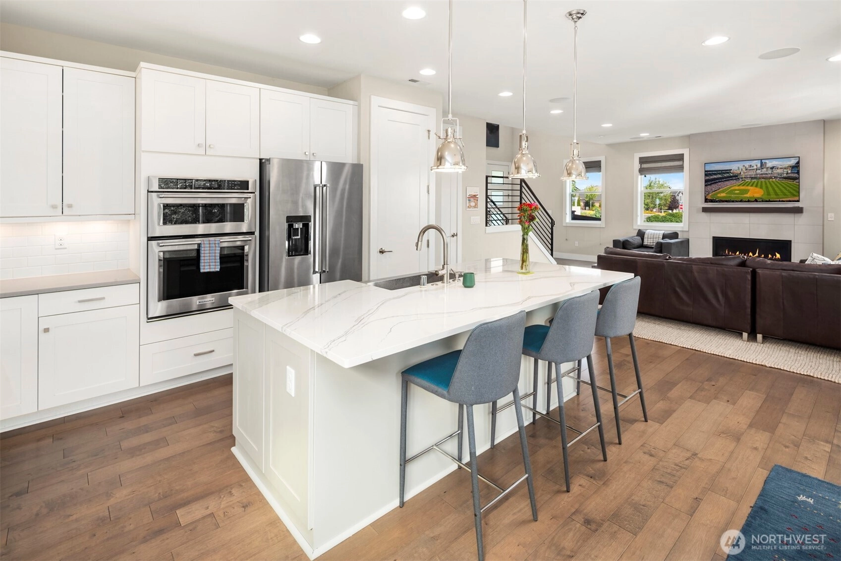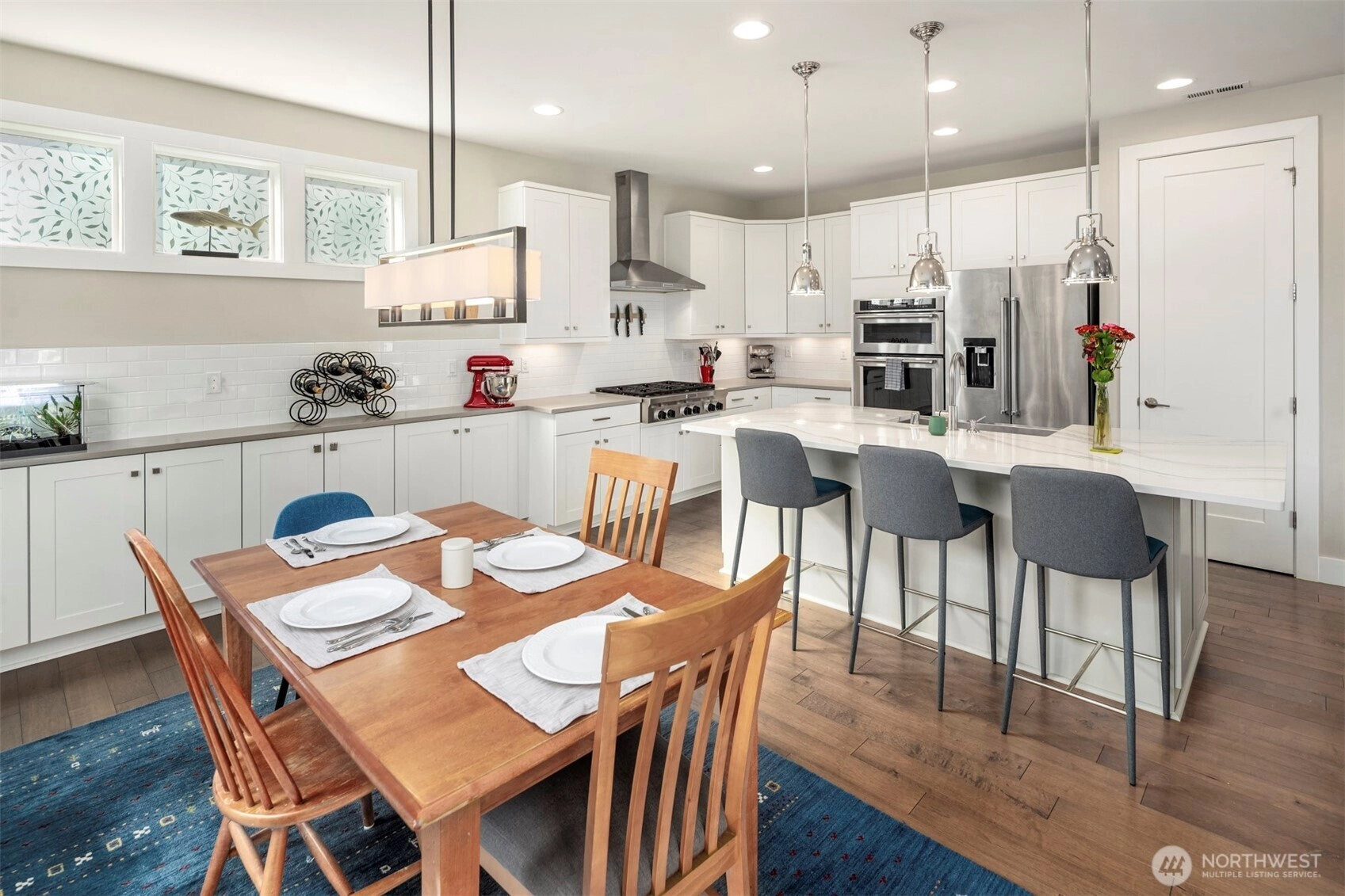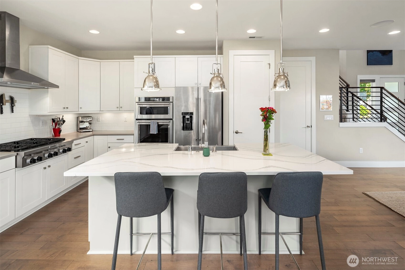 Modern 3 bed, 3 bath home in Kirkland’s sought-after Vintner’s Place neighborhood! This open floor plan features a chef’s kitchen w/ quartz counters, premium appliances, & spacious dining & living areas filled w/ natural light & stunning Mtn. views. The primary suite offers a spa-inspired bath & walk-in closet, w/ two additional bedrooms. Bonus loft area w/ built-ins for office or flex use. High ceilings, sleek finishes, and expansive windows create a bright, contemporary feel. Enjoy a private backyard oasis for year-round living. Top-rated Lake Washington schools, minutes to shopping, & dining—this home blends luxury, comfort, & convenience in a prime Eastside location. High take solar system allows owner sell power back to PSE.!
